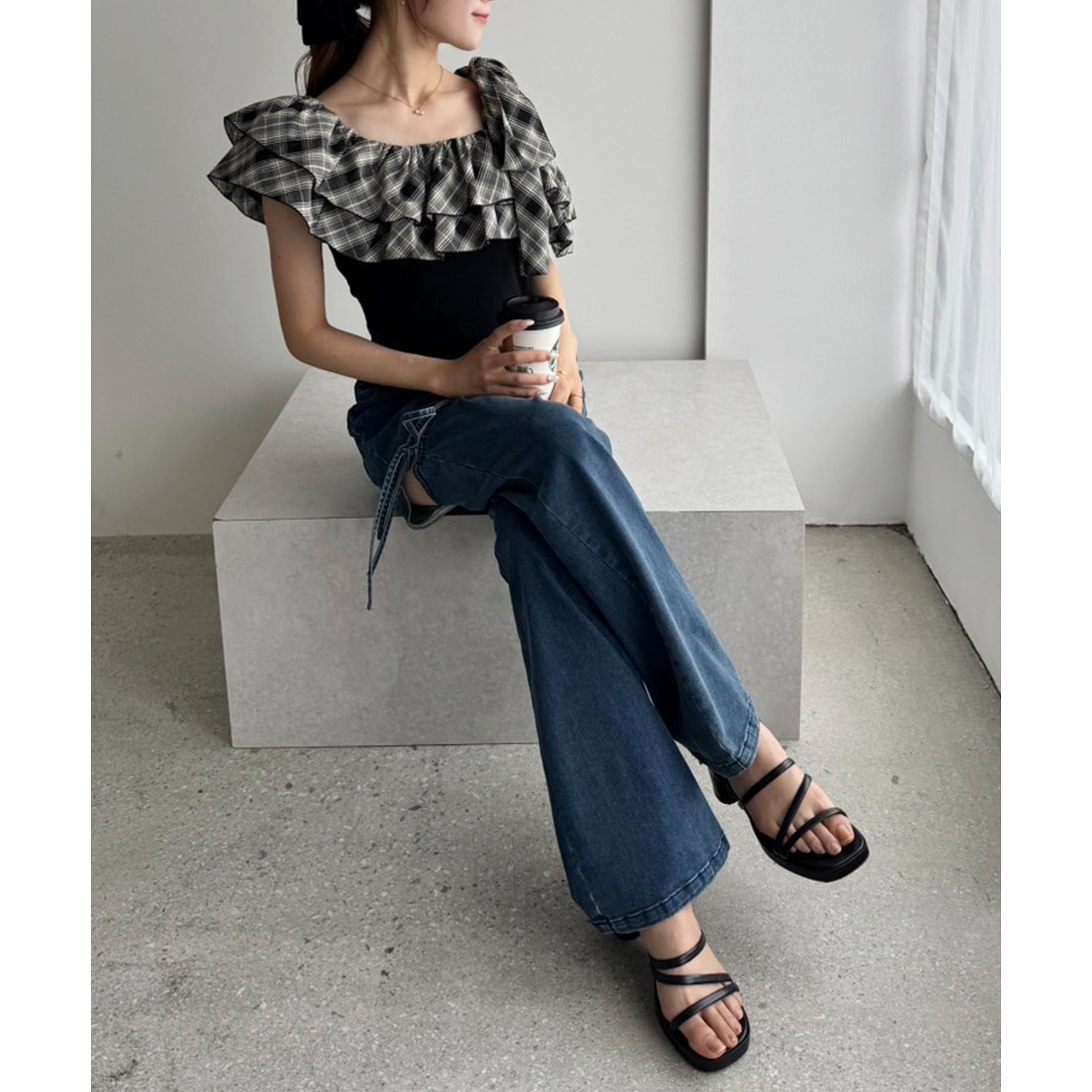 左右アシンメトリーなシルエットが、こなれ感を演出してくれます。