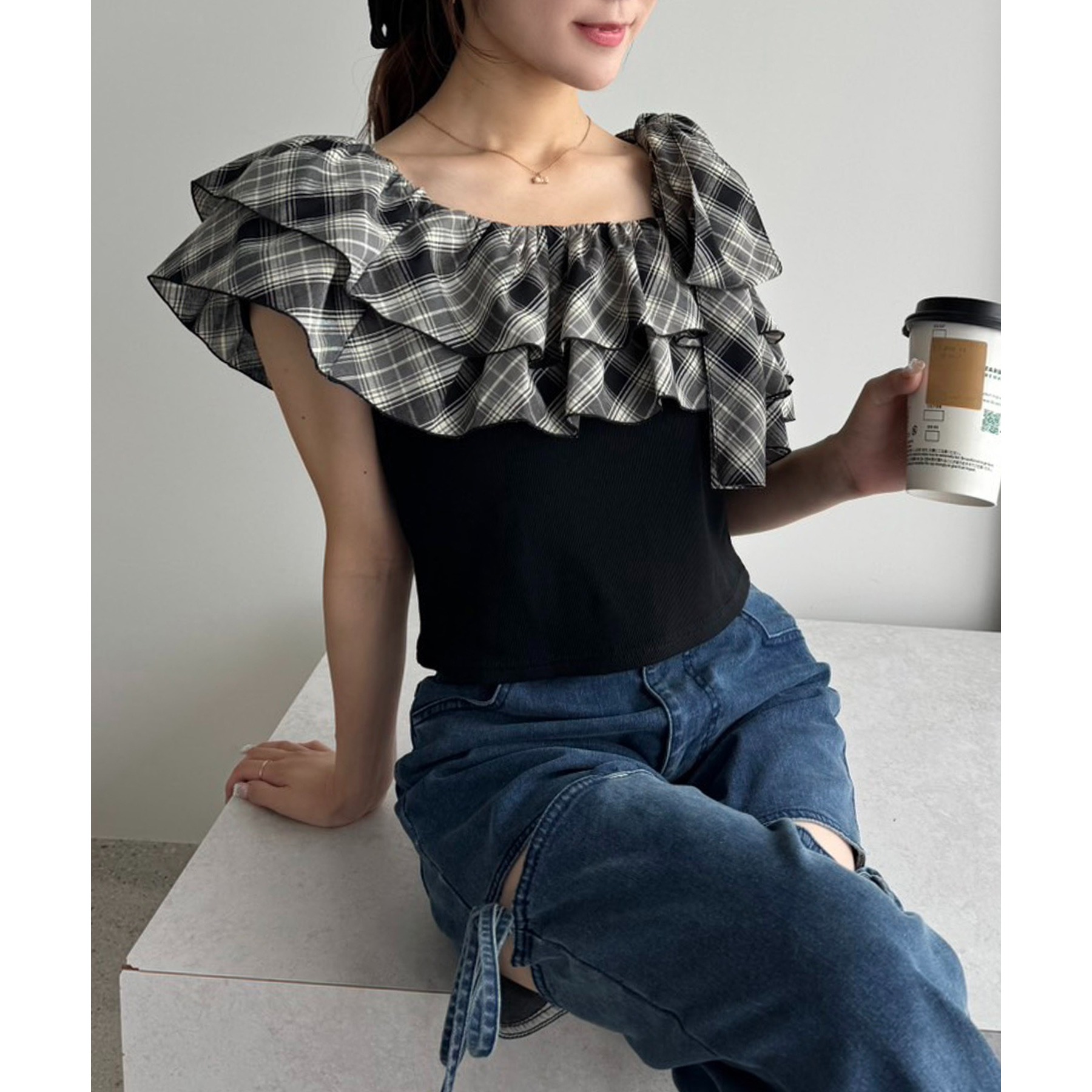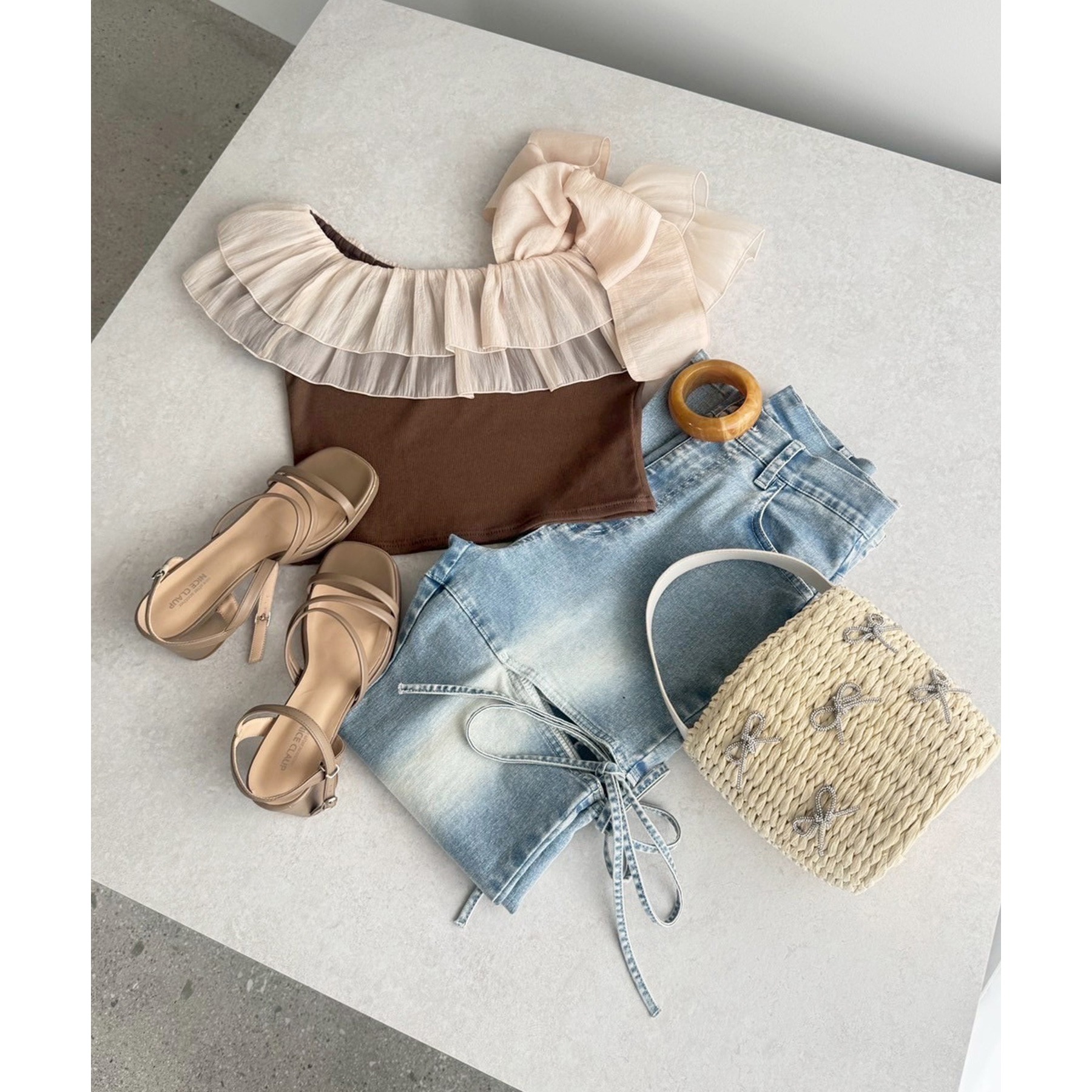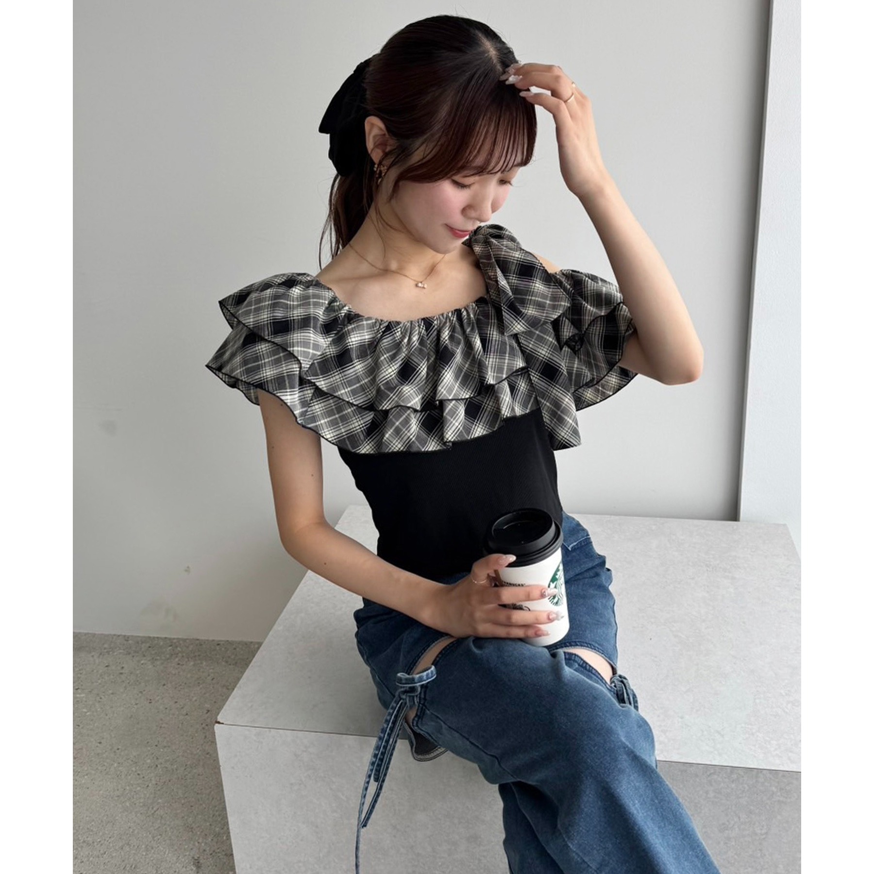 セットで着れる/ワンショルリボントップス