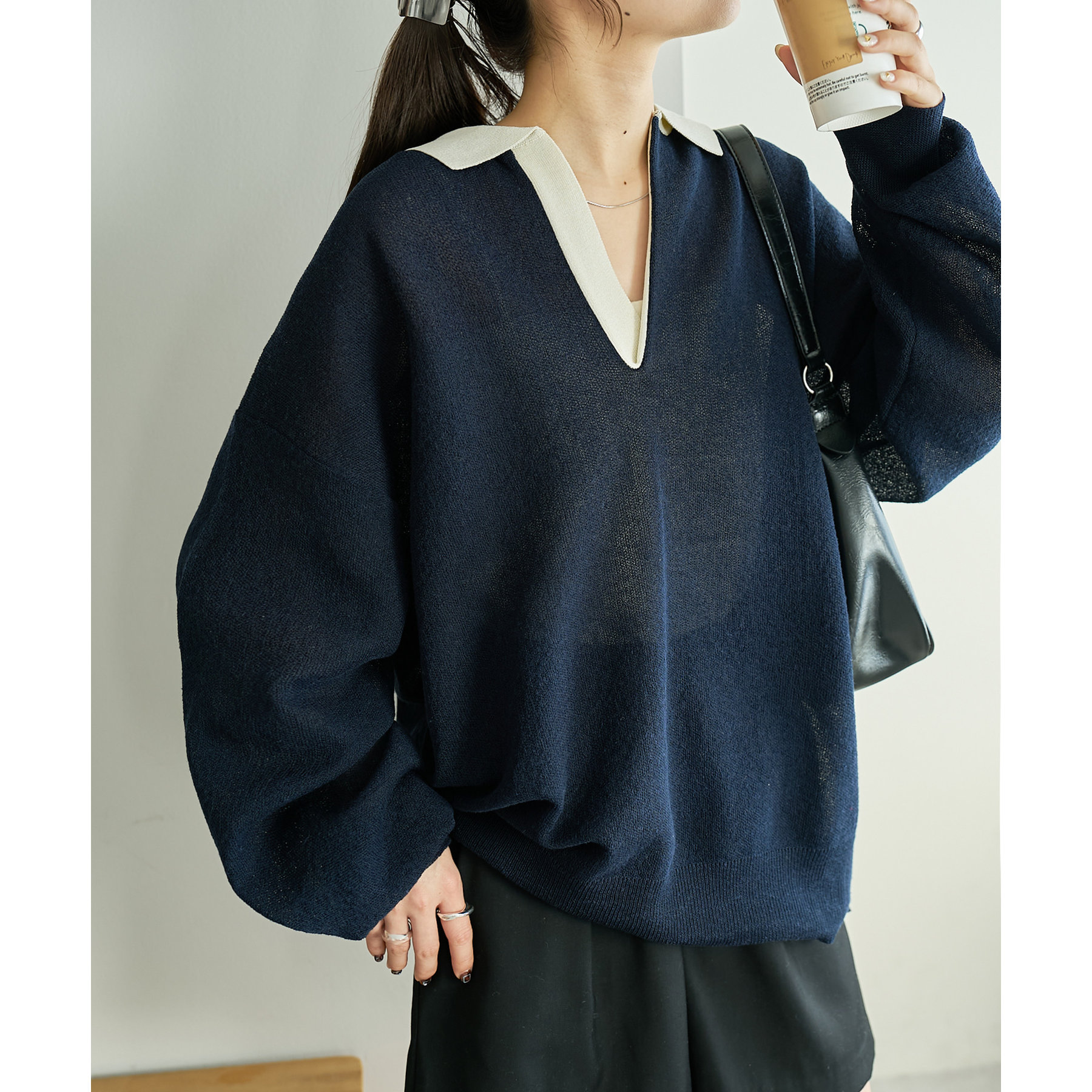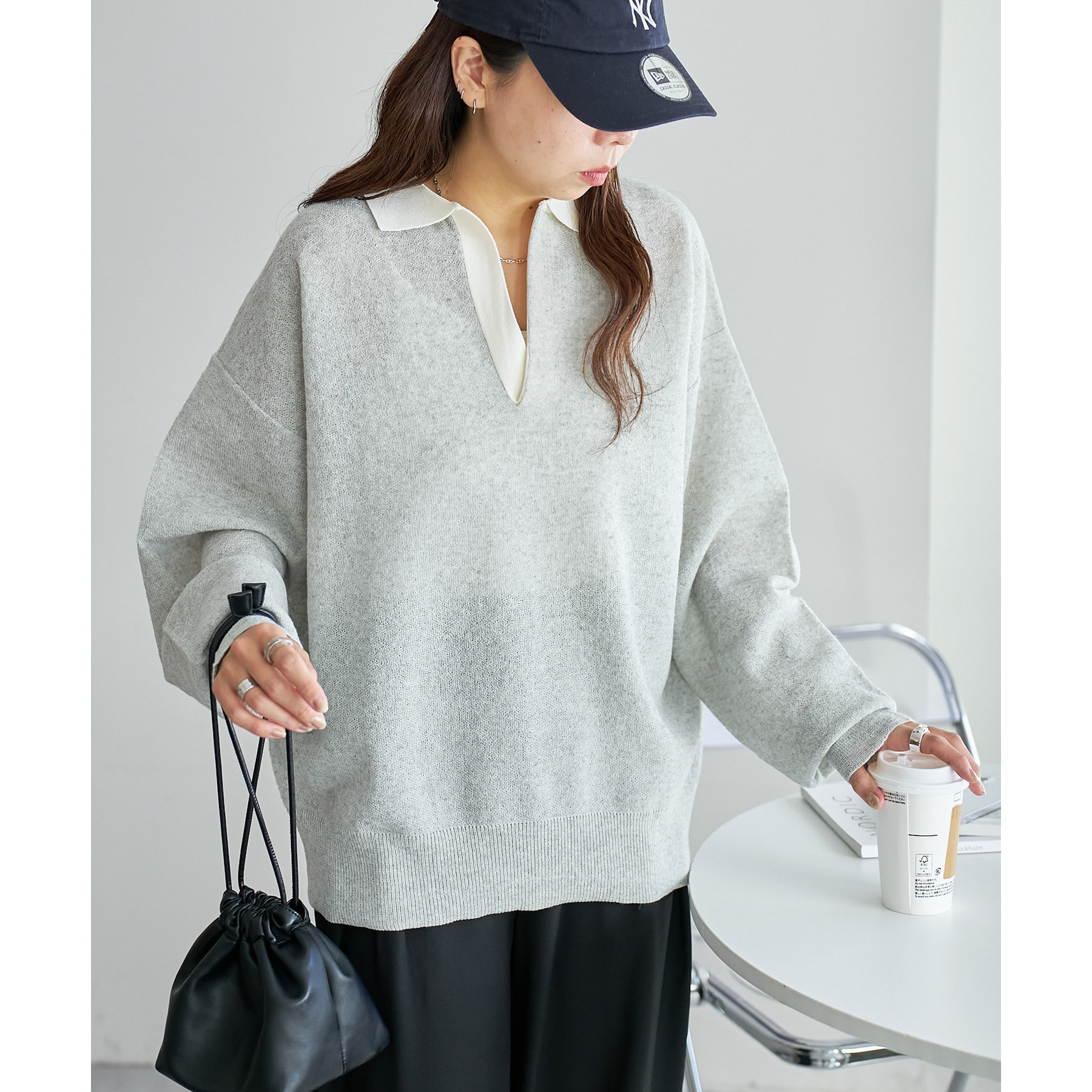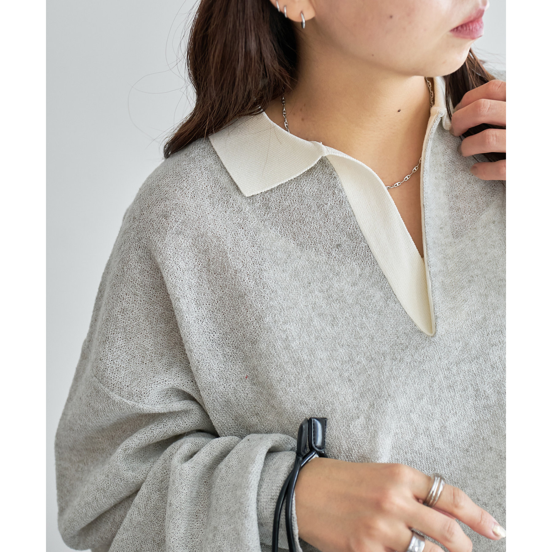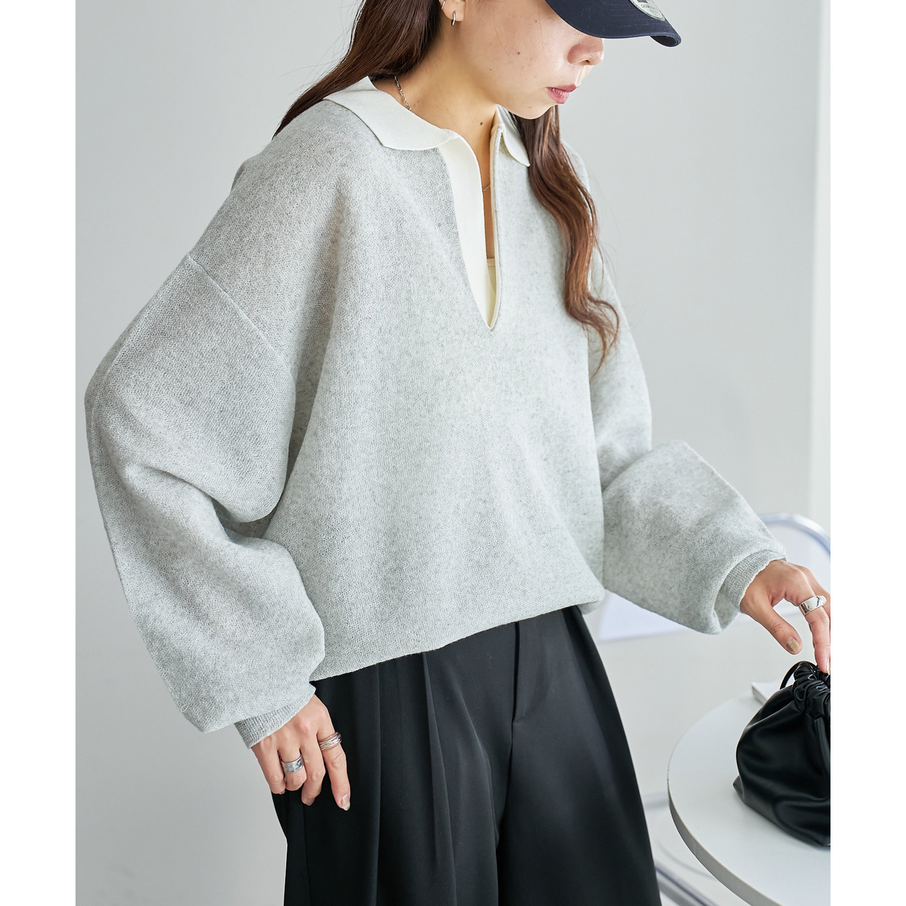ポロシャツの襟のようなスキッパーデザインが魅力のニット!