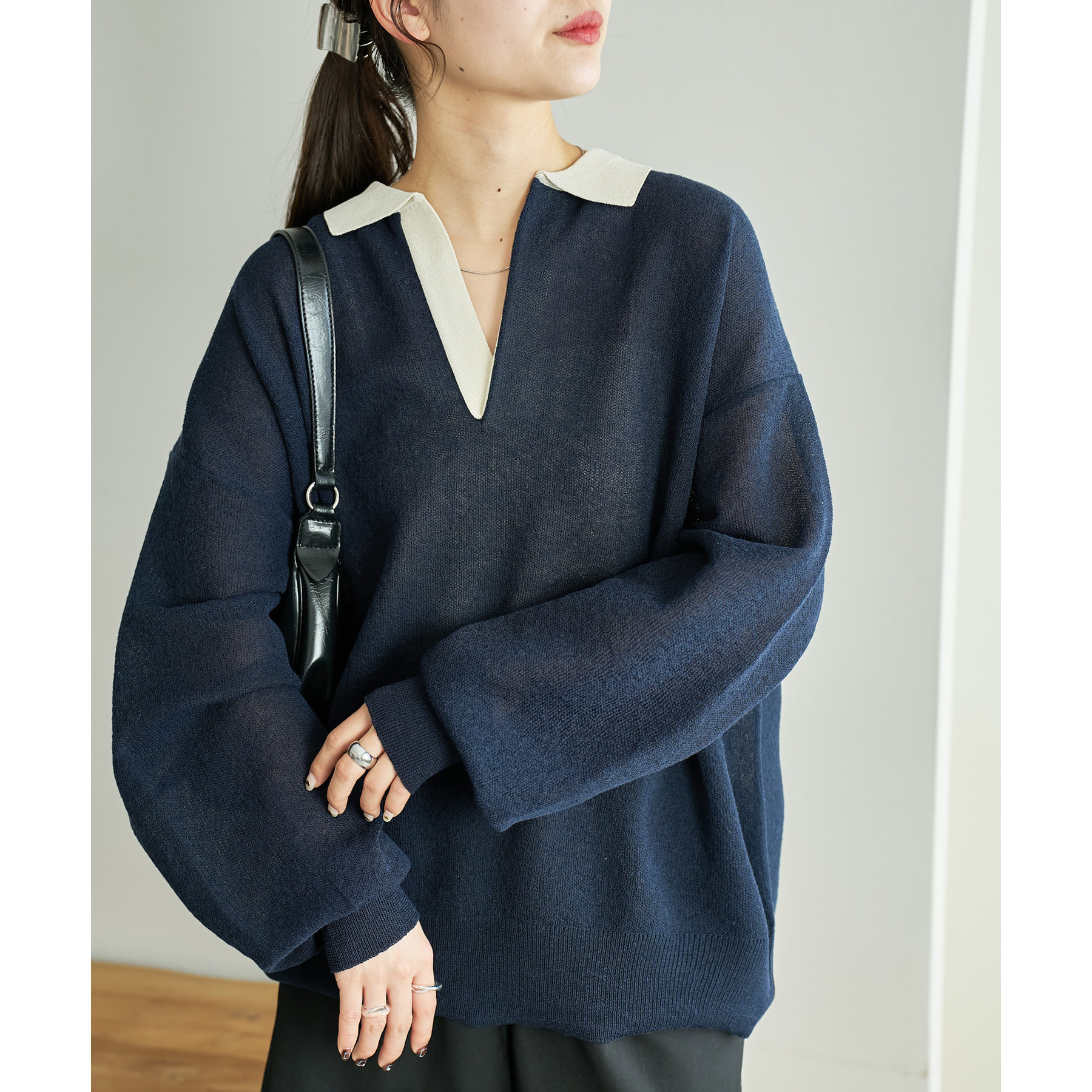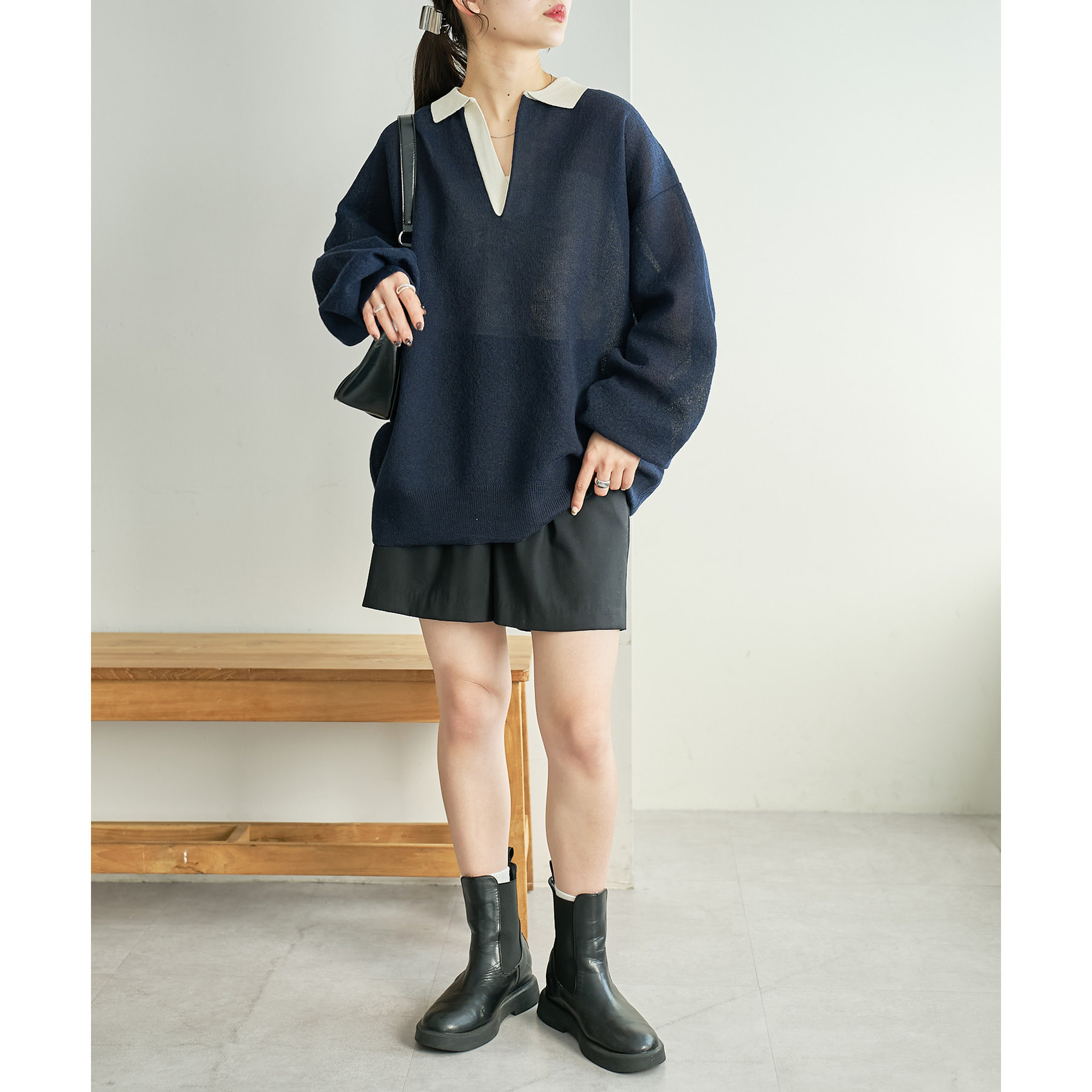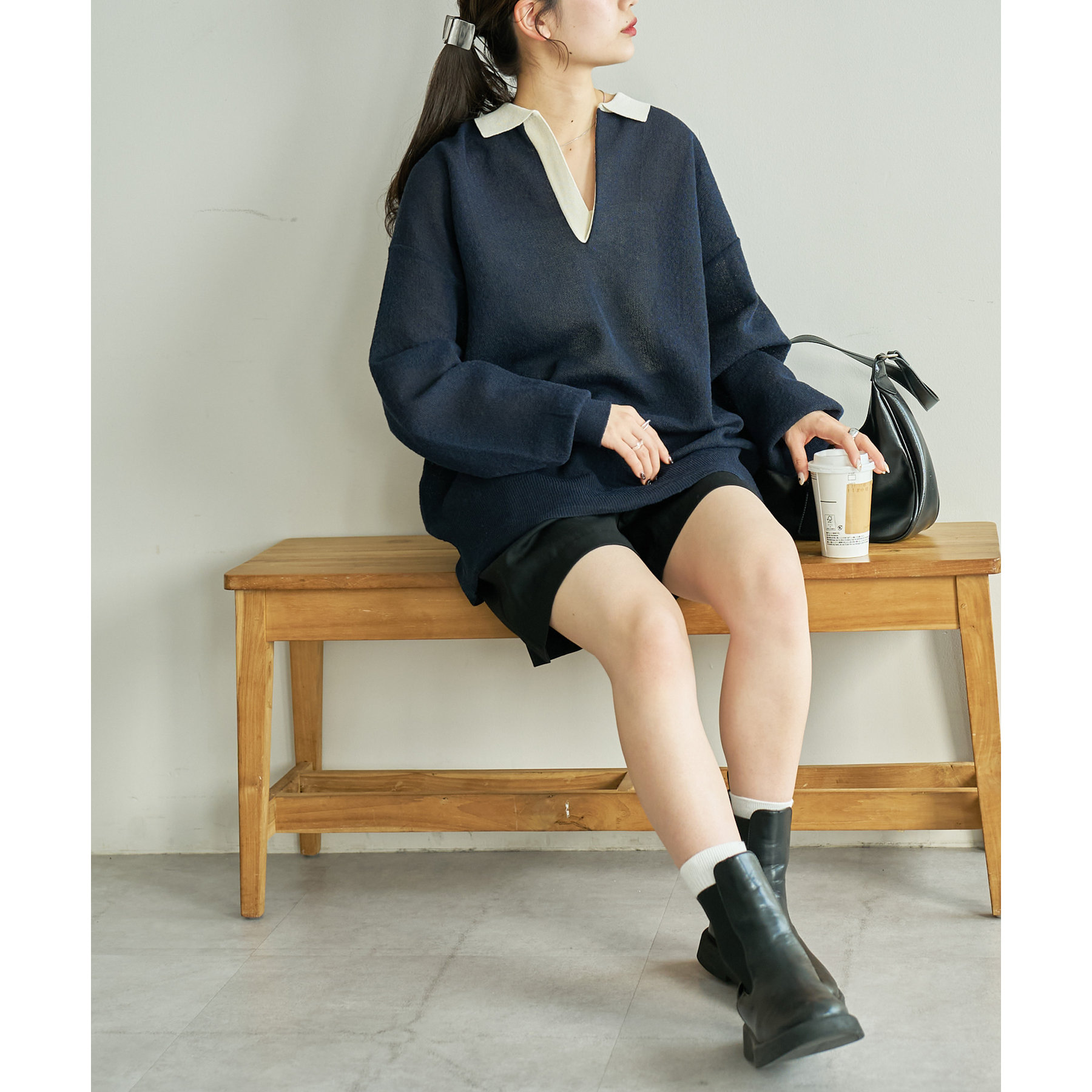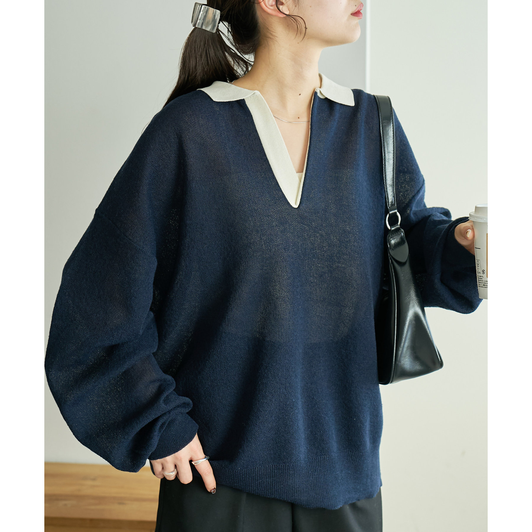 ポロシャツの襟のようなスキッパーデザインが魅力のニット!