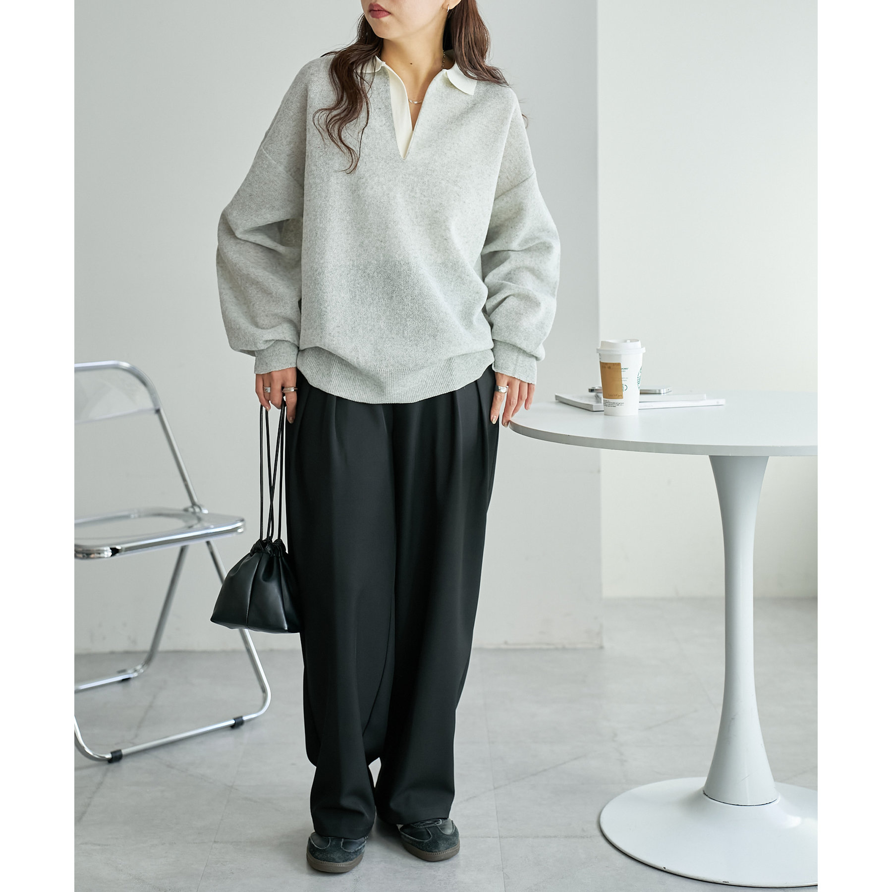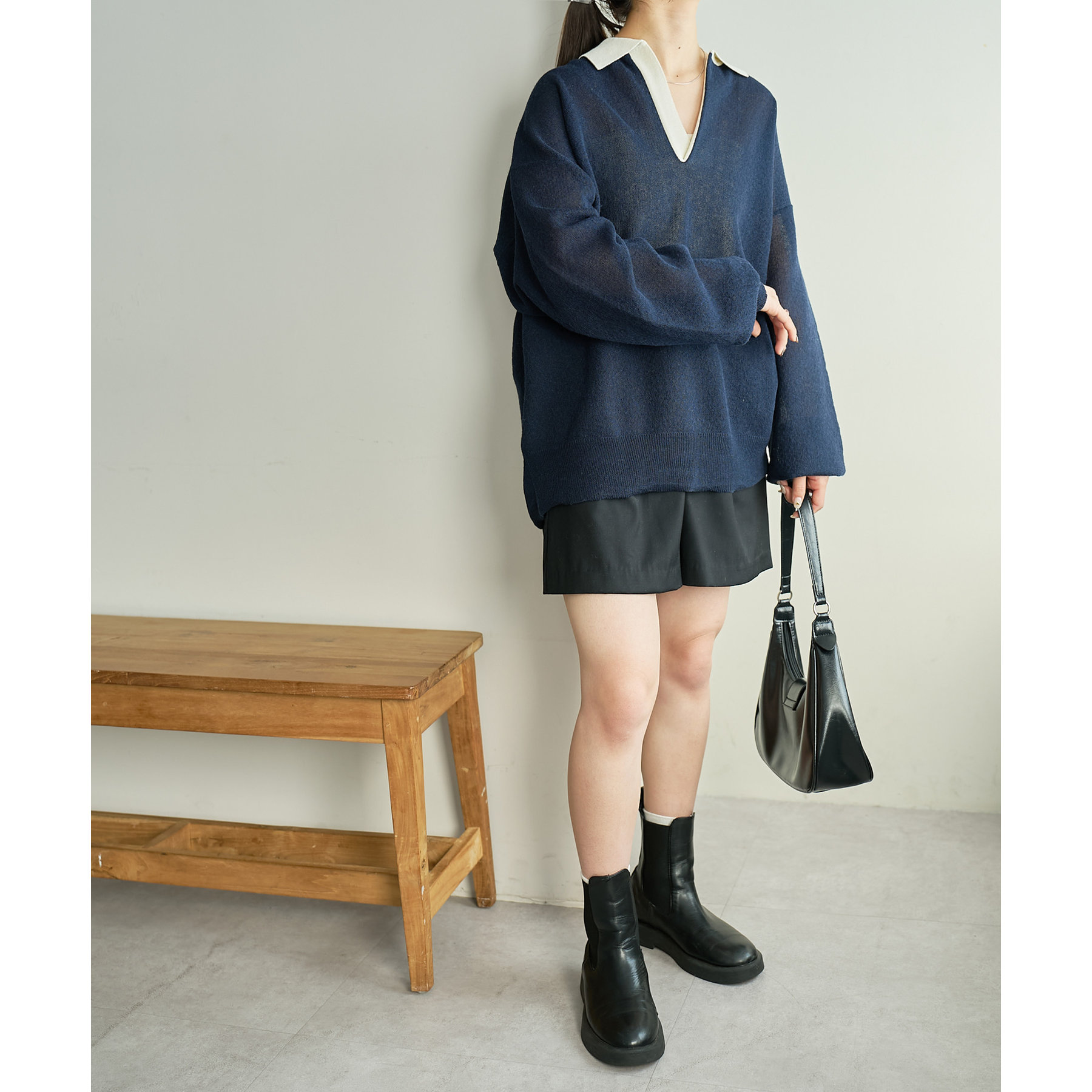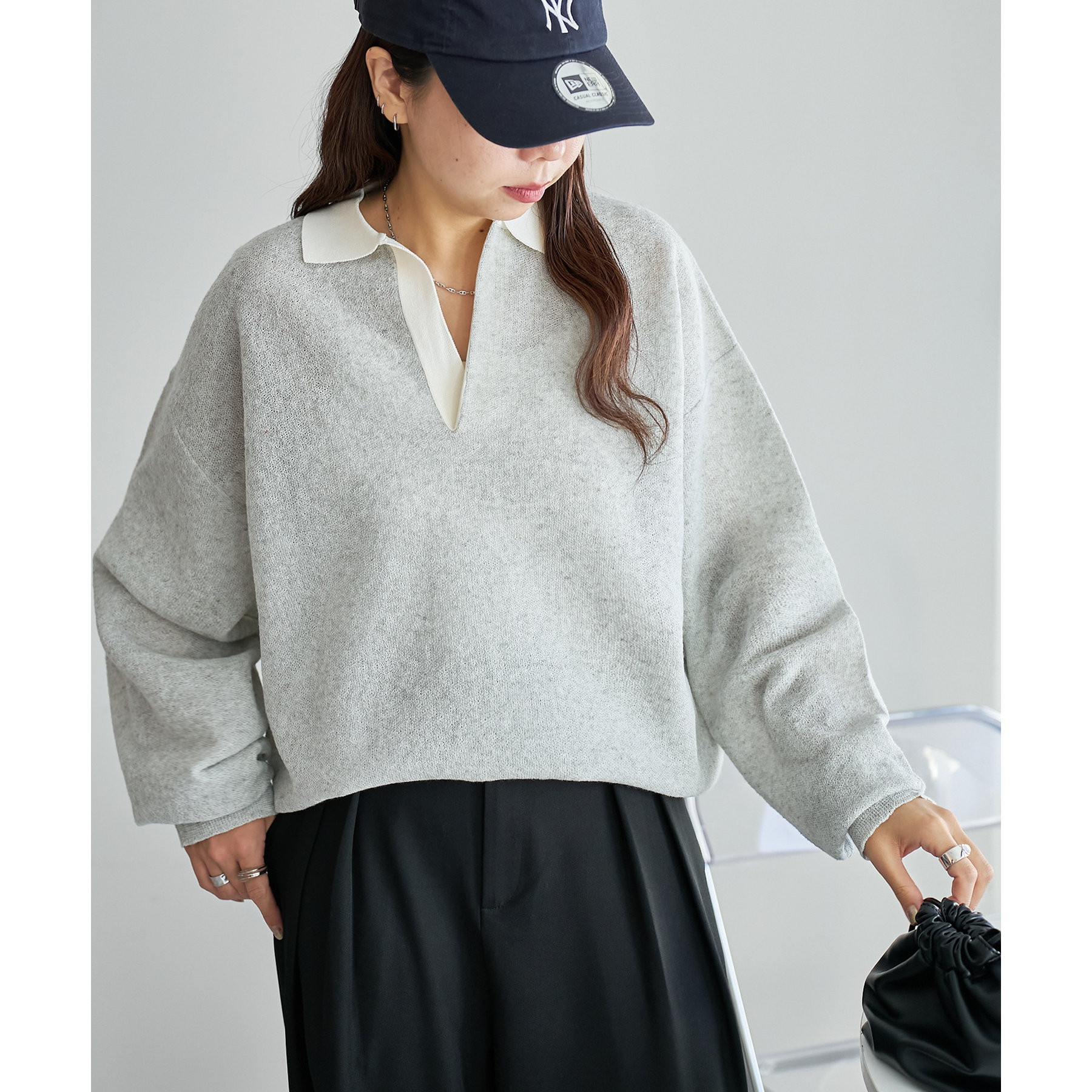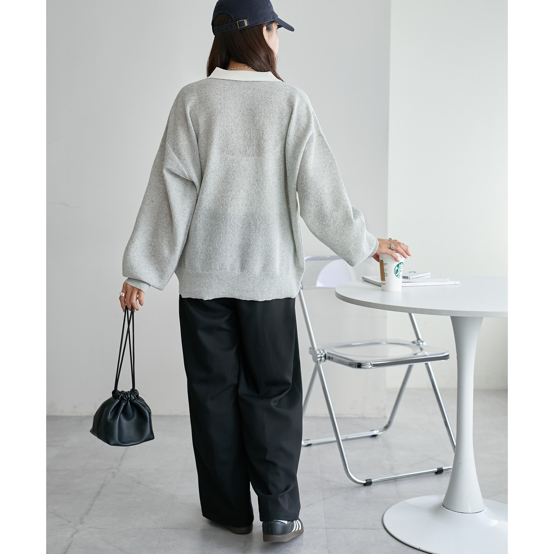ポロシャツの襟のようなスキッパーデザインが魅力のニット!