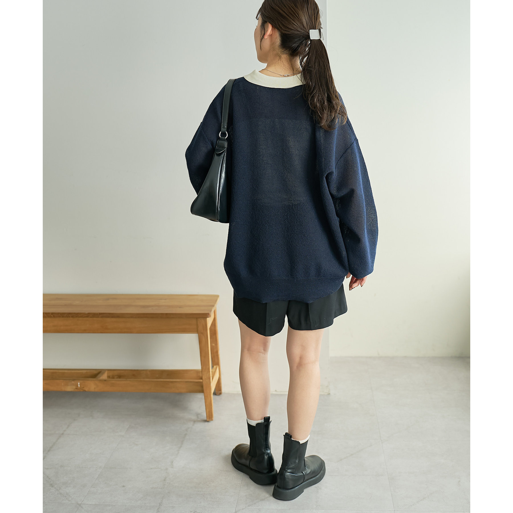 ラグランスリーブでカジュアルさもプラスされ、大人っぽいシルエットでいつものコーデも、ぐっと新鮮な印象になります。ニットのカラーに合わせた配色がアクセントで、ゆるっとしたオーバーサイズでこなれた印象に◎