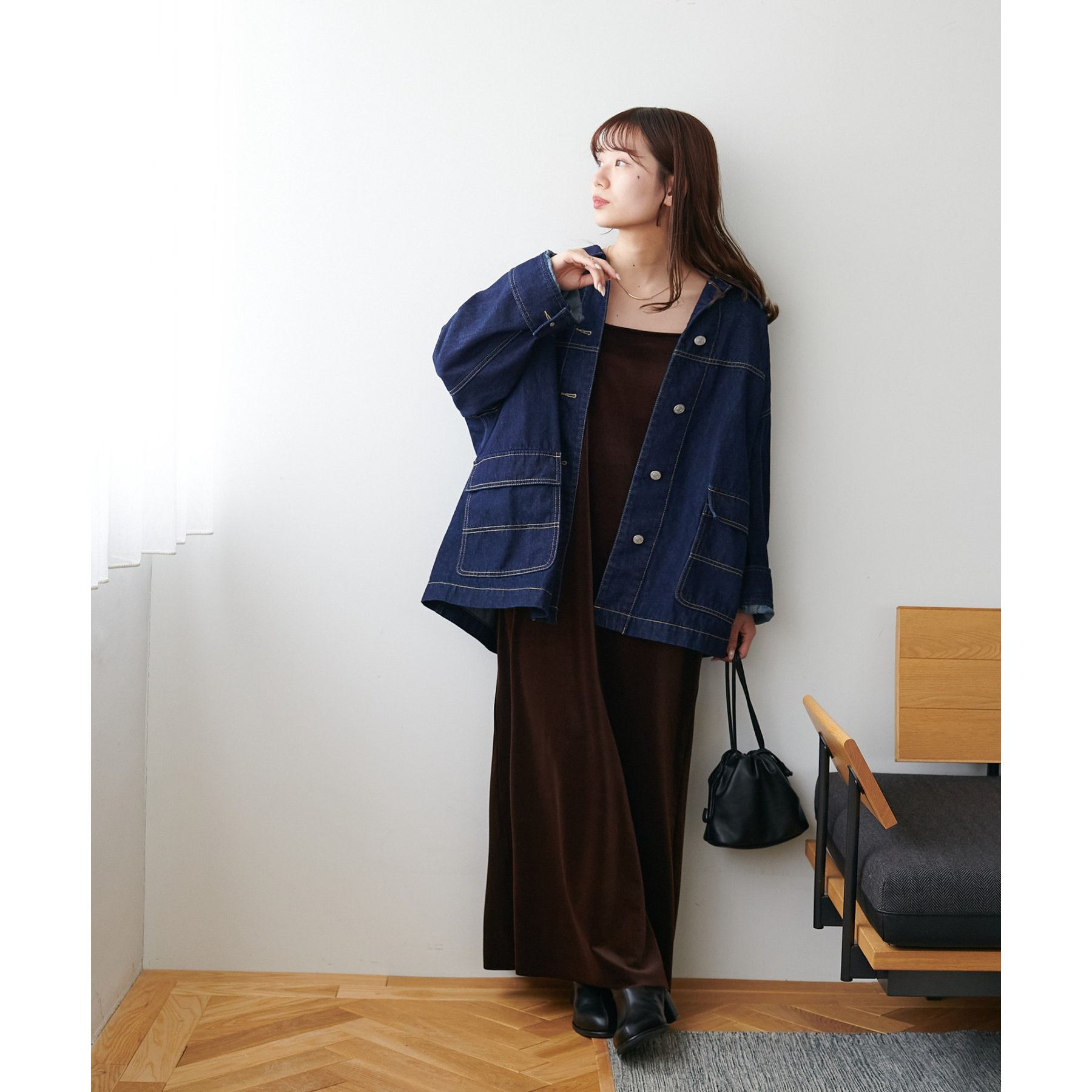 インナーにシアートップスやカットソーを合わせたレイヤードスタイルはもちろん、カーディガンやシャツを羽織ってカジュアルダウンするのもおすすめ。秋冬はタートルネックとの合わせでシーズンムードも高まります。