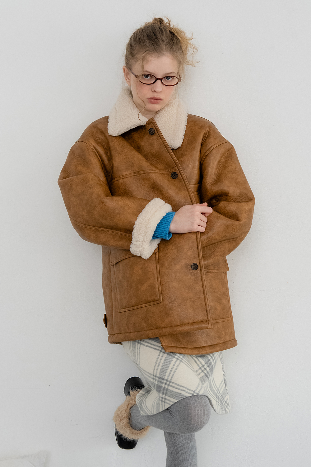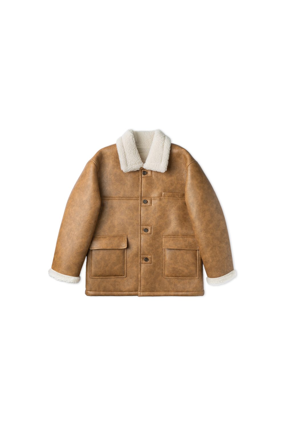 冷たい空気のようにクールでありながら温もりを感じさせるアイテムで、裏地のシアリング加工により保温性を確保しつつ、レザーの表面感でスタイリッシュなムードを演出します。