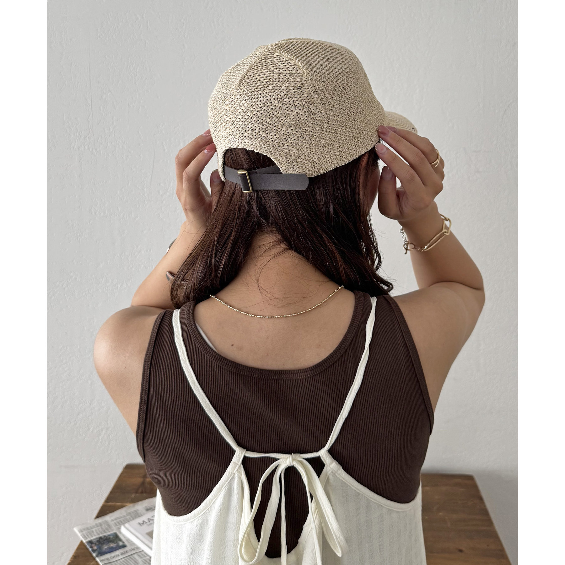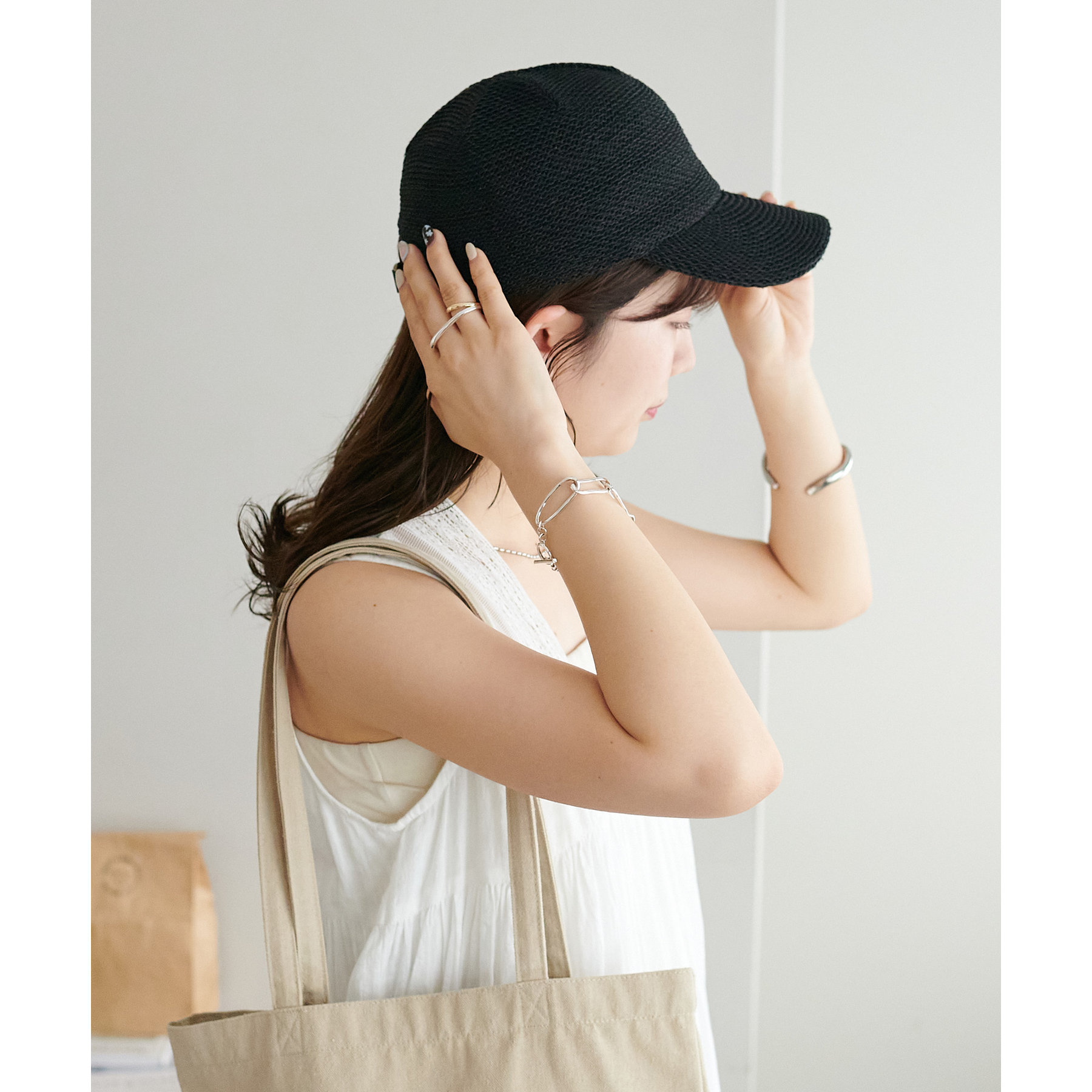 通気性に優れたペーパー素材を使用し、軽やかなかぶり心地を実現したキャップ。ナチュラルな風合いとシンプルなデザインが、カジュアルからフェミニンまで幅広いスタイリングにマッチします♪広めのつばが日差しをしっかりカバーしてくれるので夏の紫外線対策もばっちりです◎軽量で持ち運びやすいので、旅行やアウトドアシーンのお供にもぴったりです。