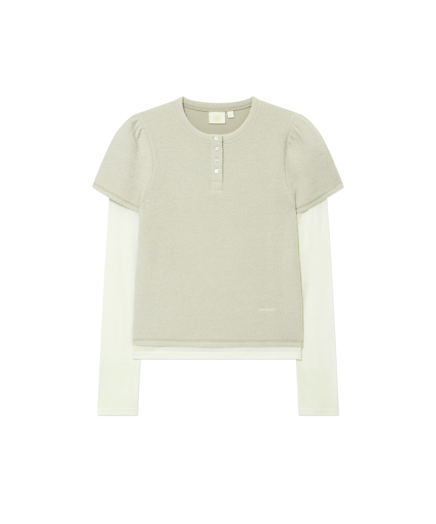 WOMAN HENLEY NECK LAYERED LONG SLEEVE - Beige