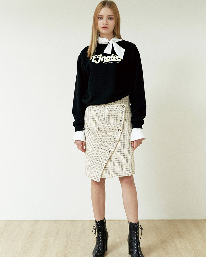 Ivory Tweed Check Midi Skirt