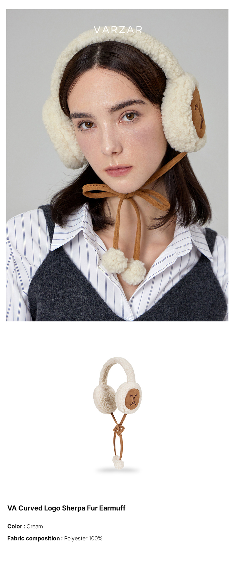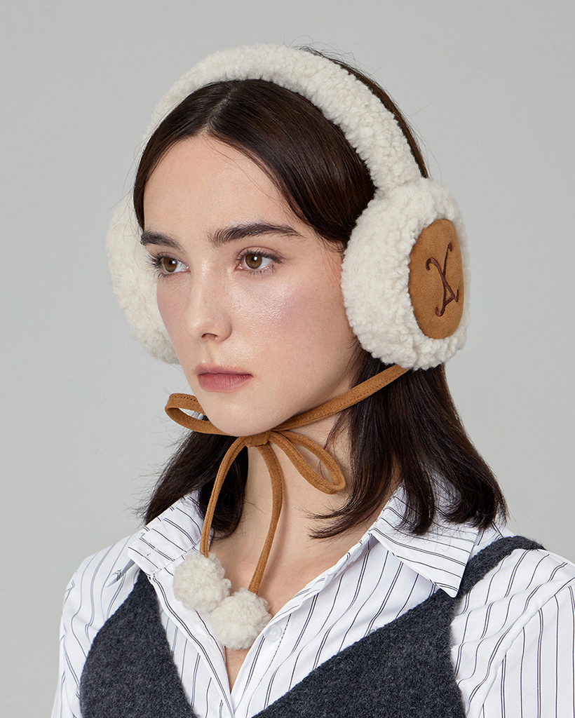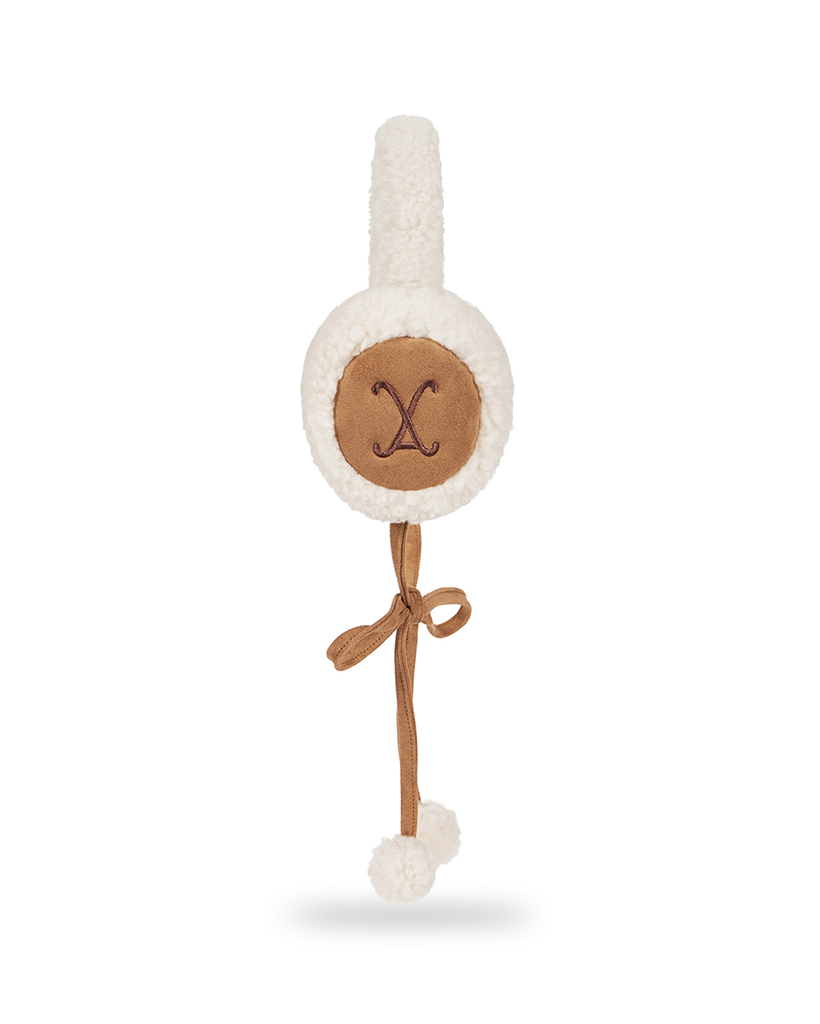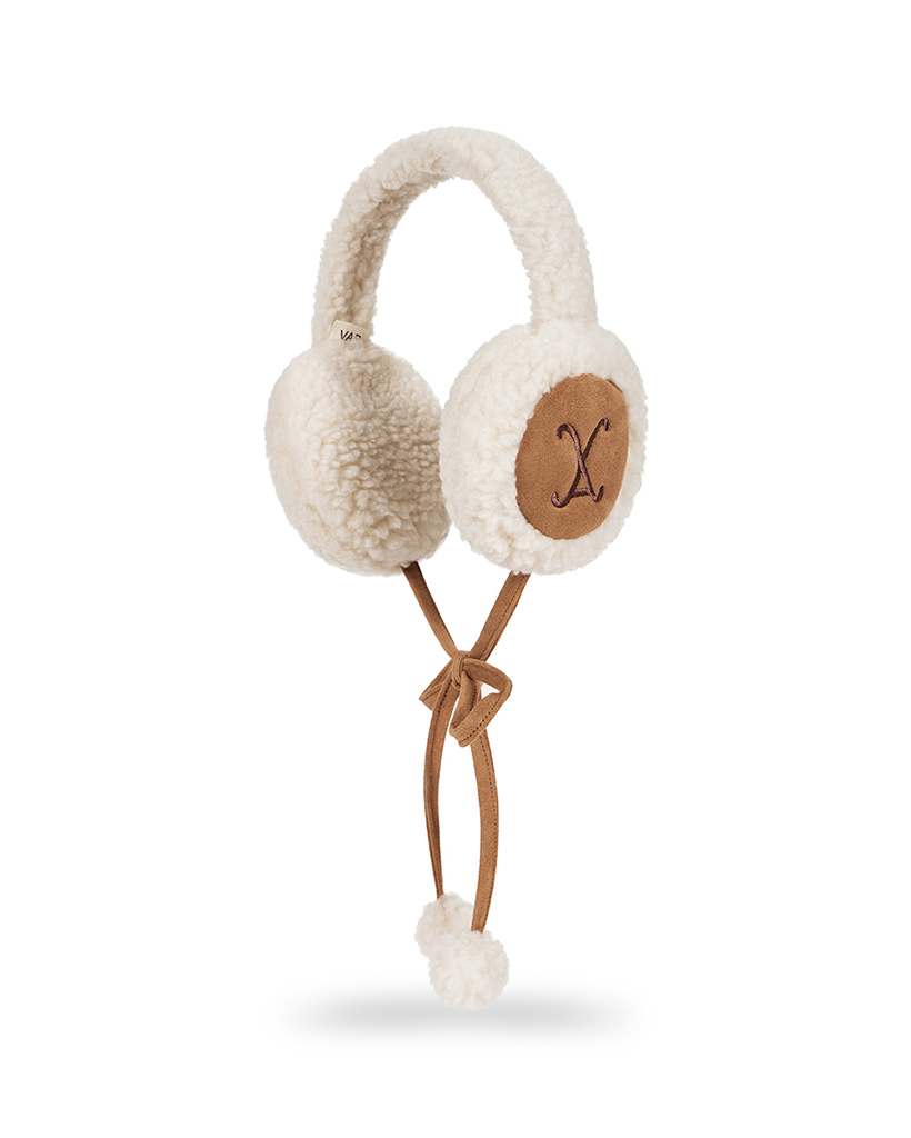 VA Curved Logo Sherpa Fur Earmuff Cream