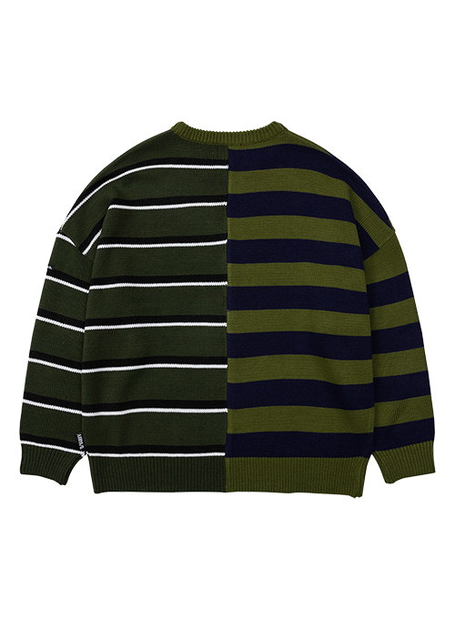 Stripe Mixed Knit Sweater [KHAKI]