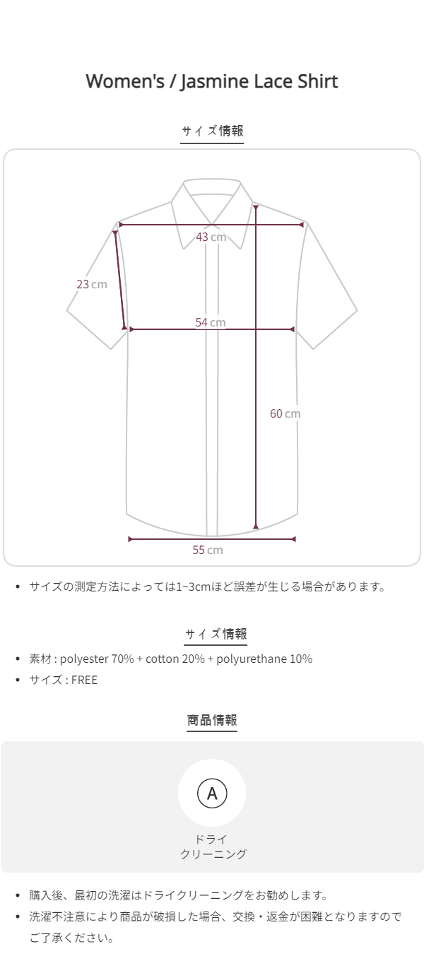 このブランドの商品はお客様の都合による交換および返品はお受けいたしかねます。 十分にご注意の上、ご注文をお願い致します。