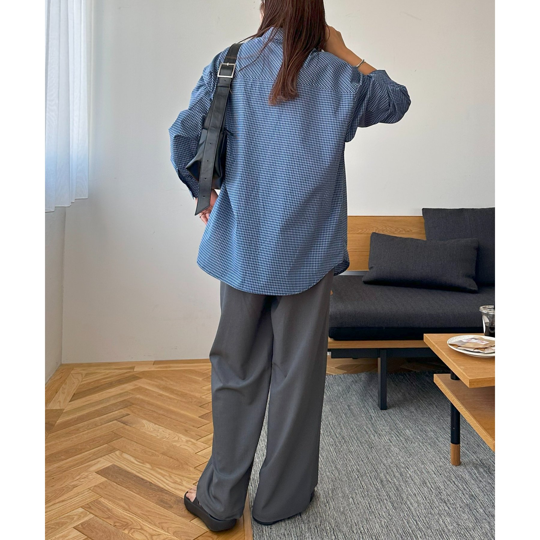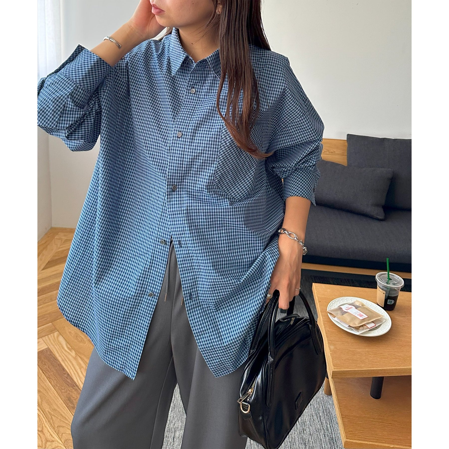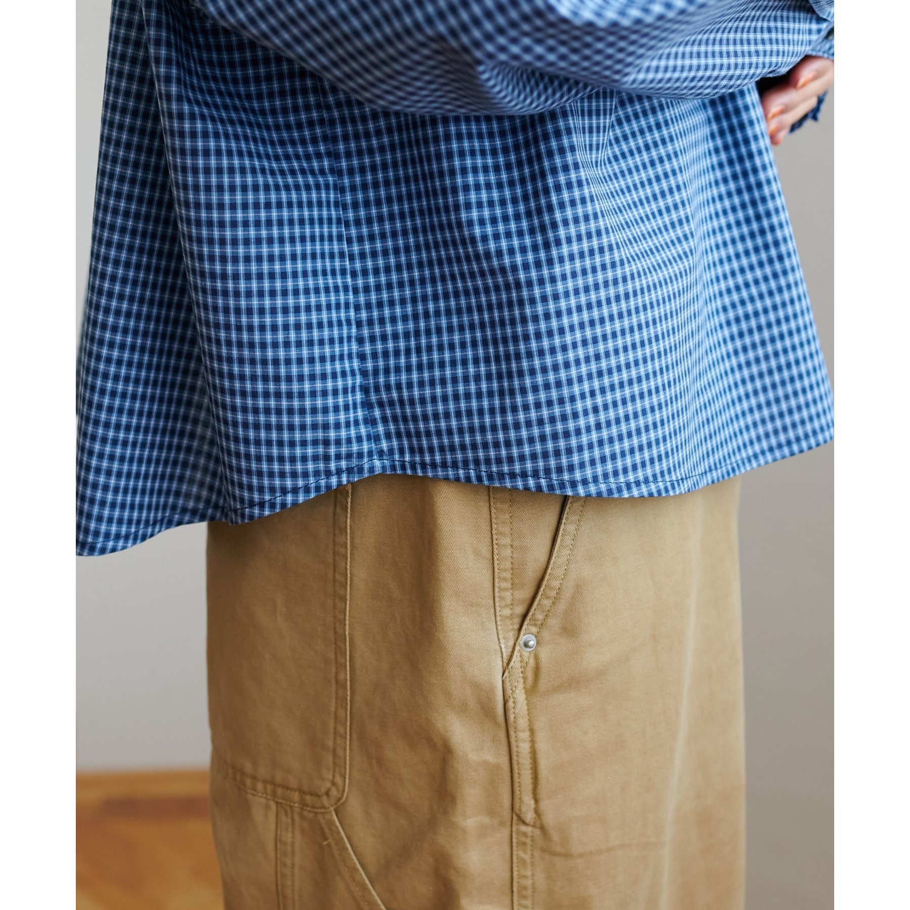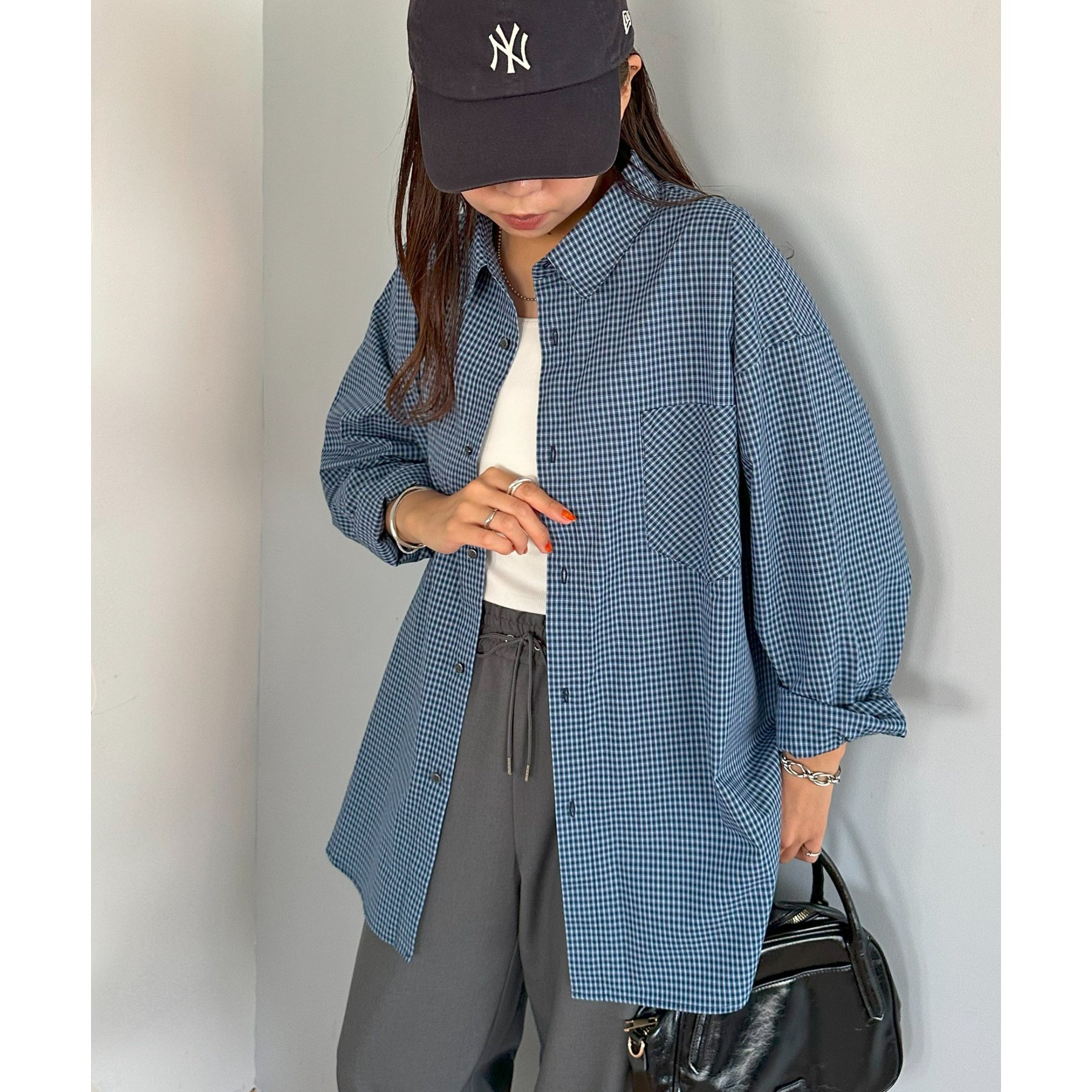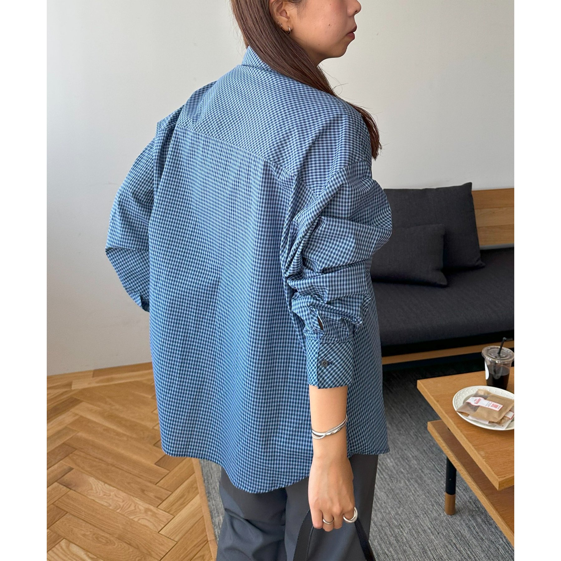 細かなグラフチェック柄が大人カジュアルな雰囲気を演出。