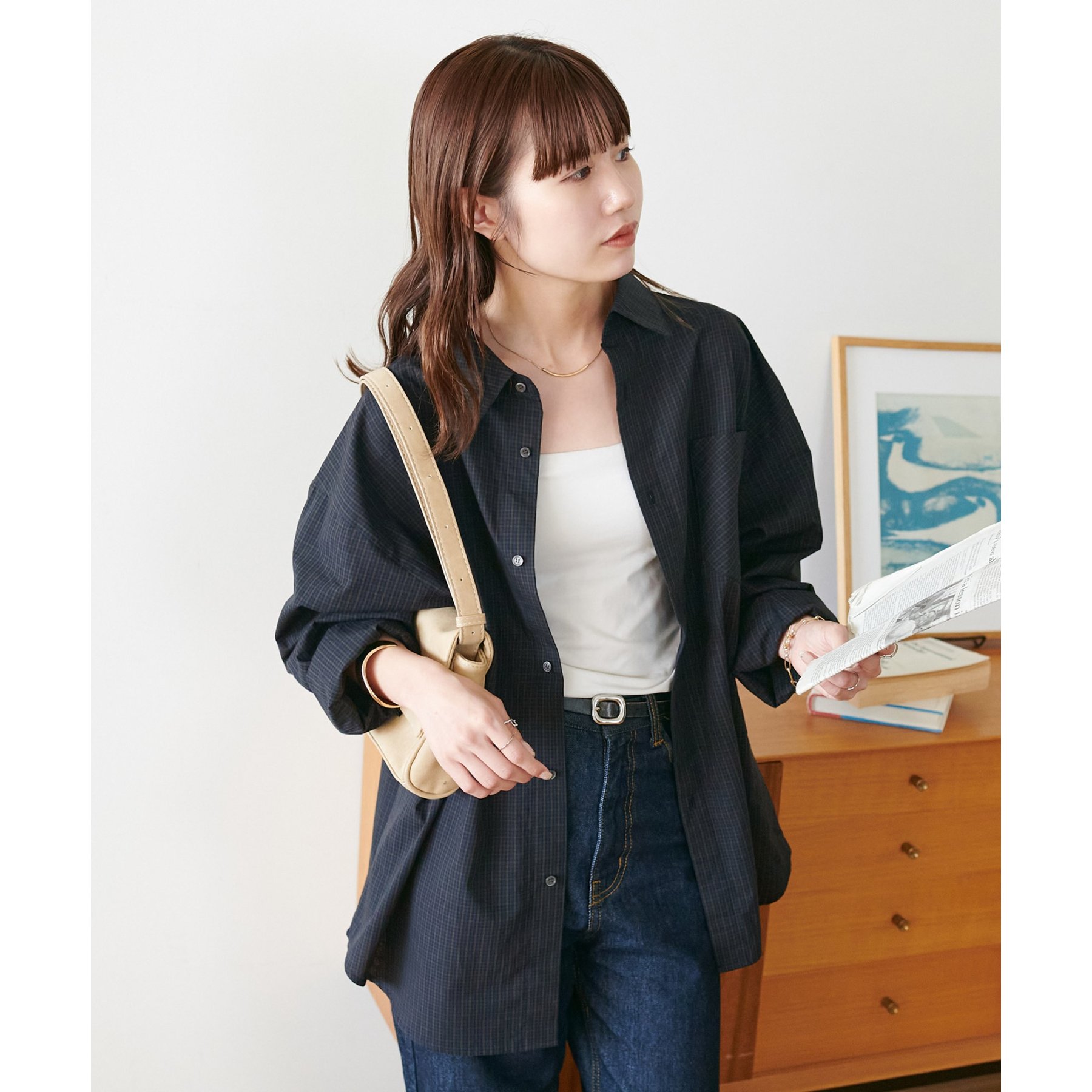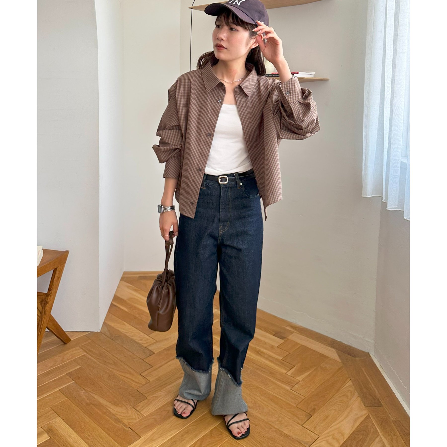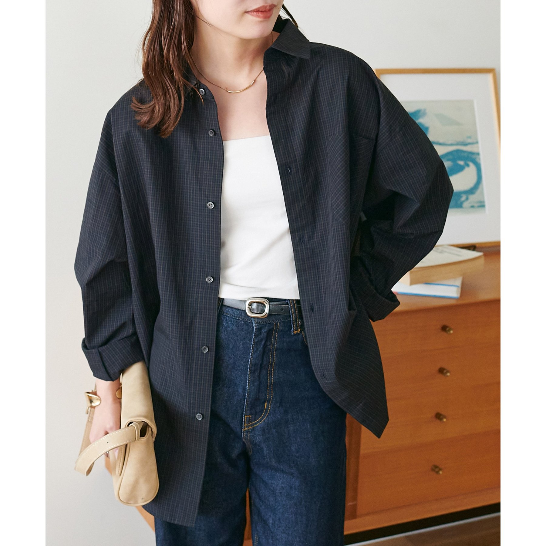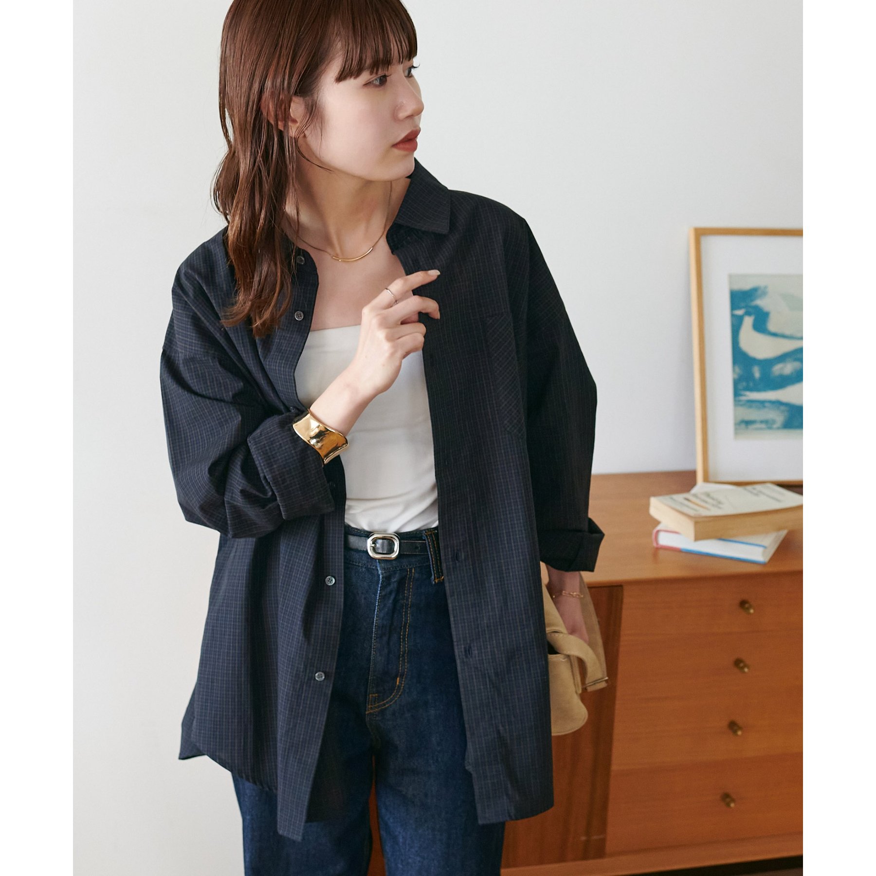 細かなグラフチェック柄が大人カジュアルな雰囲気を演出。
