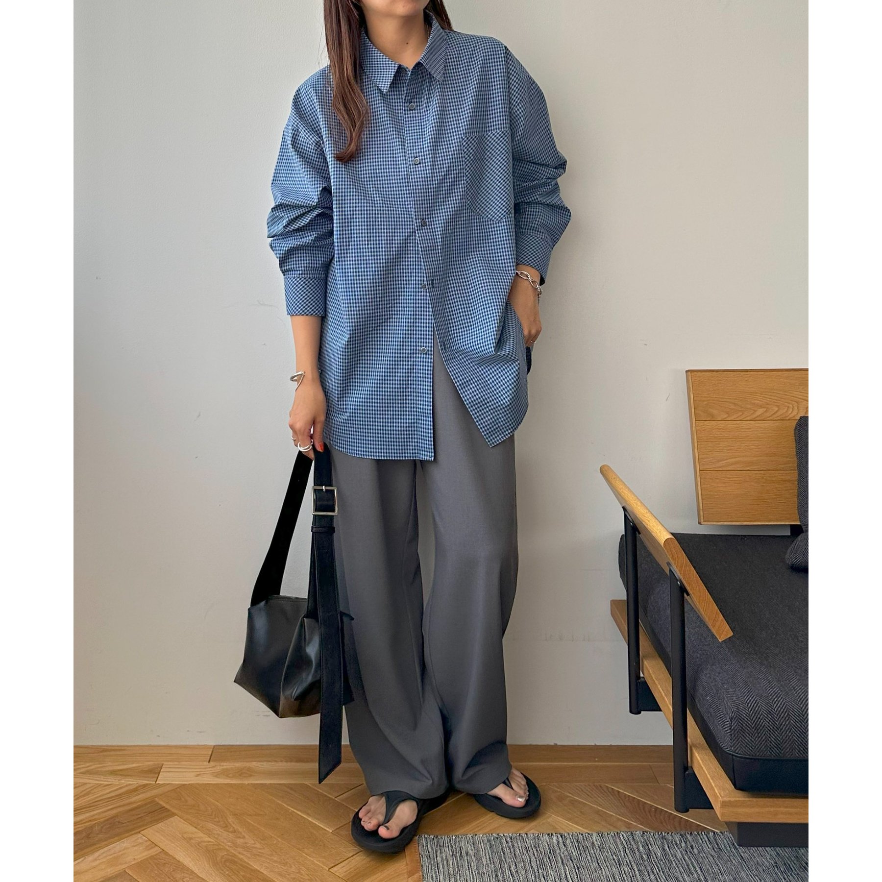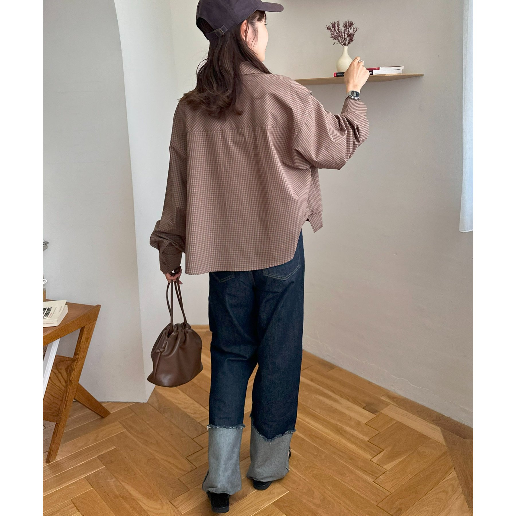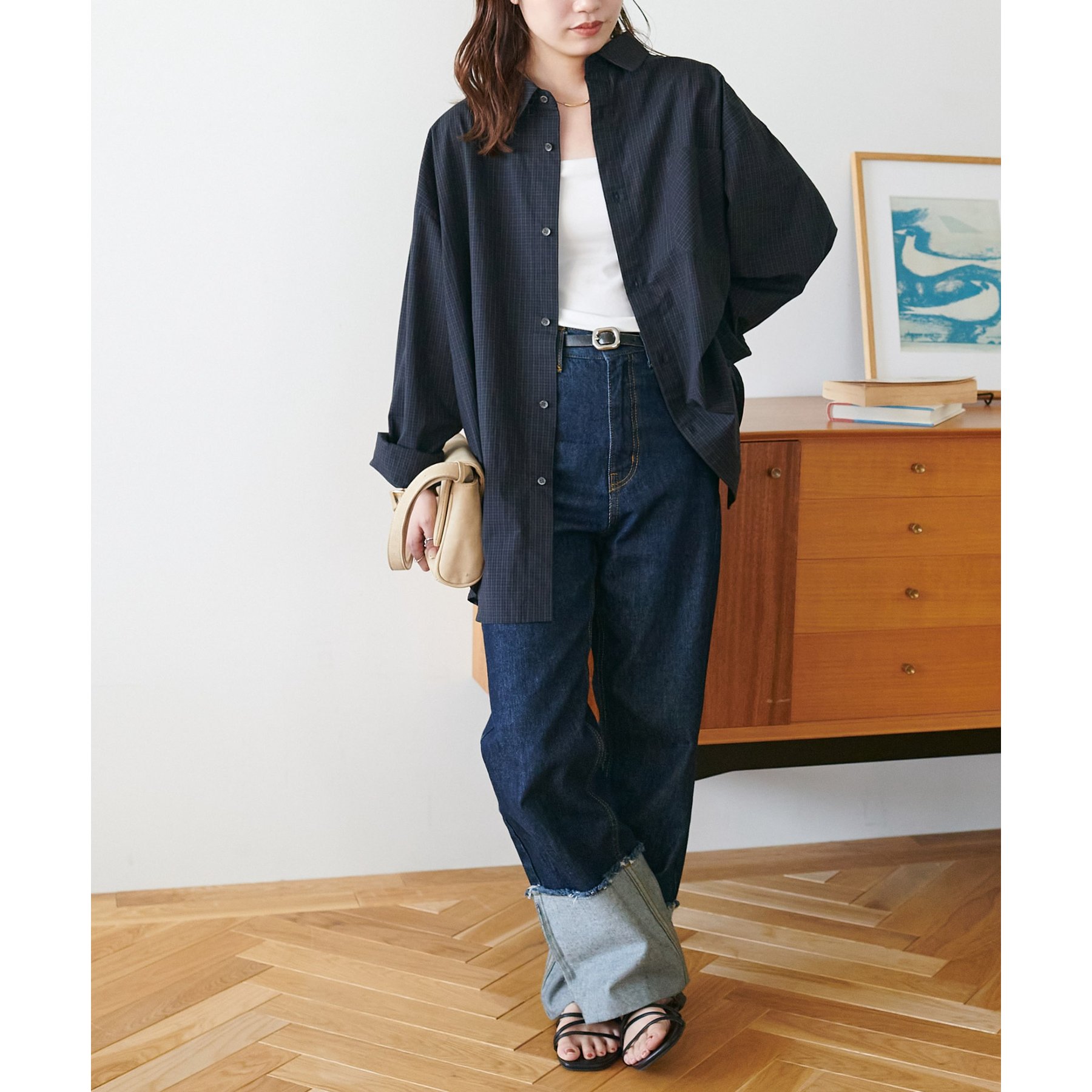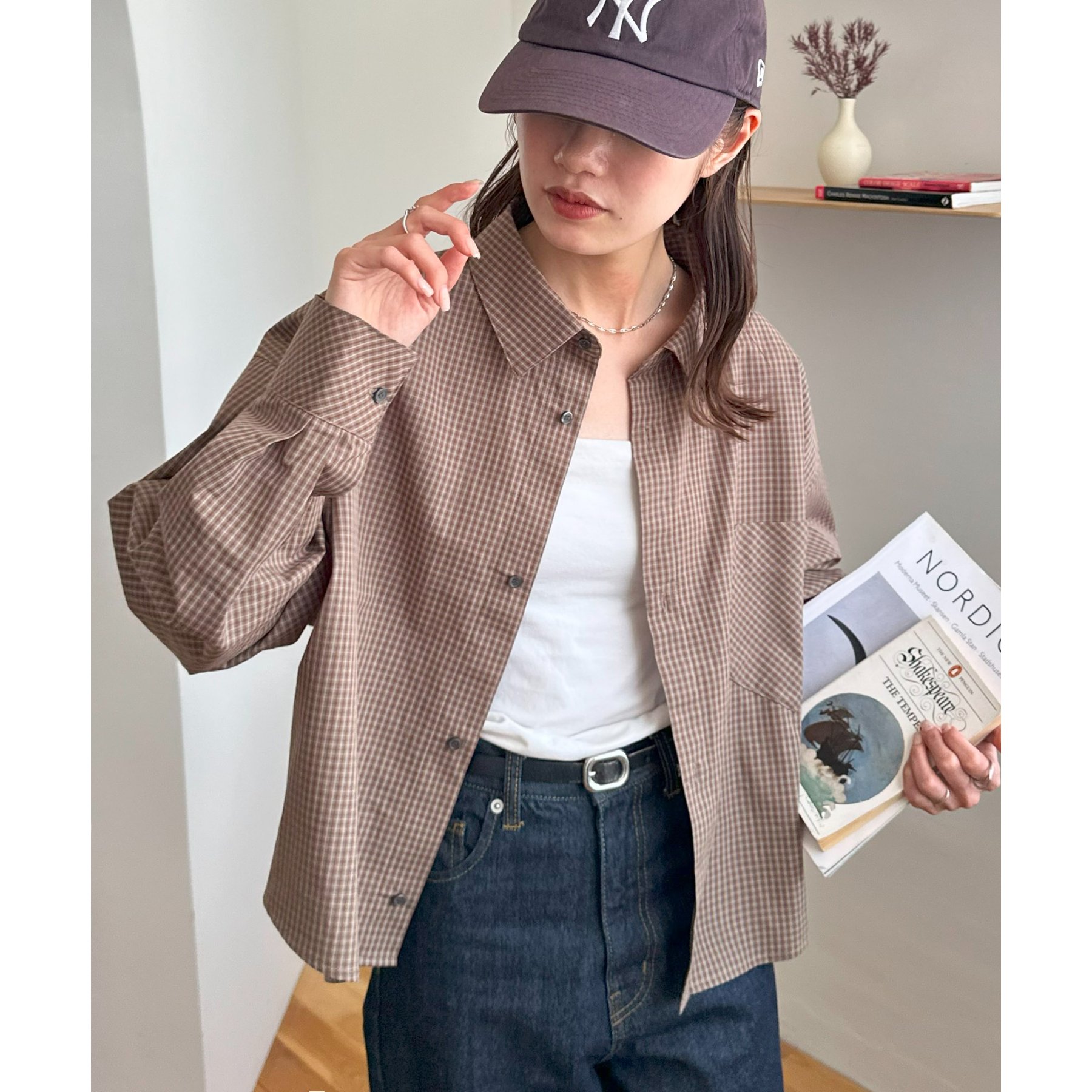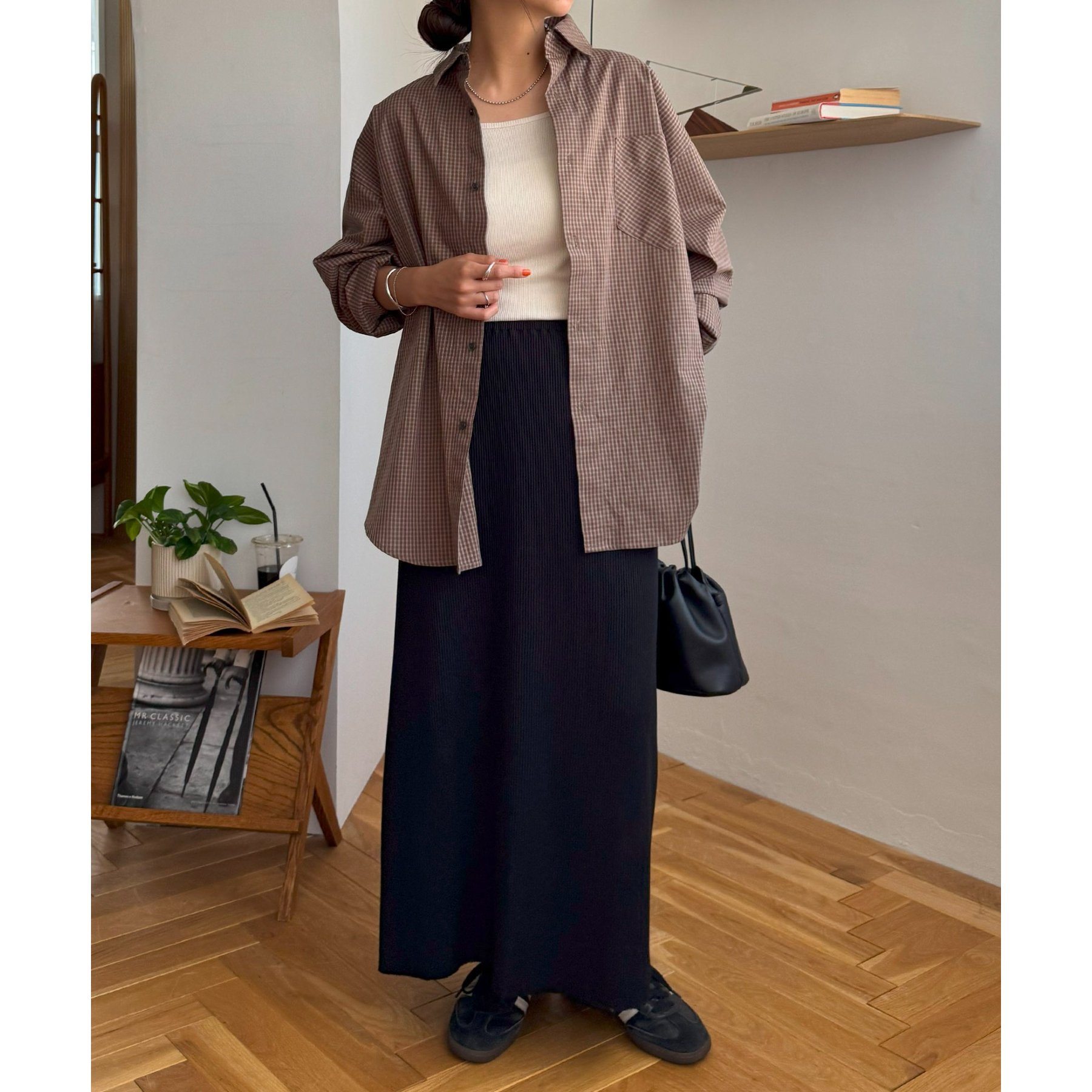細かなグラフチェック柄が大人カジュアルな雰囲気を演出。
