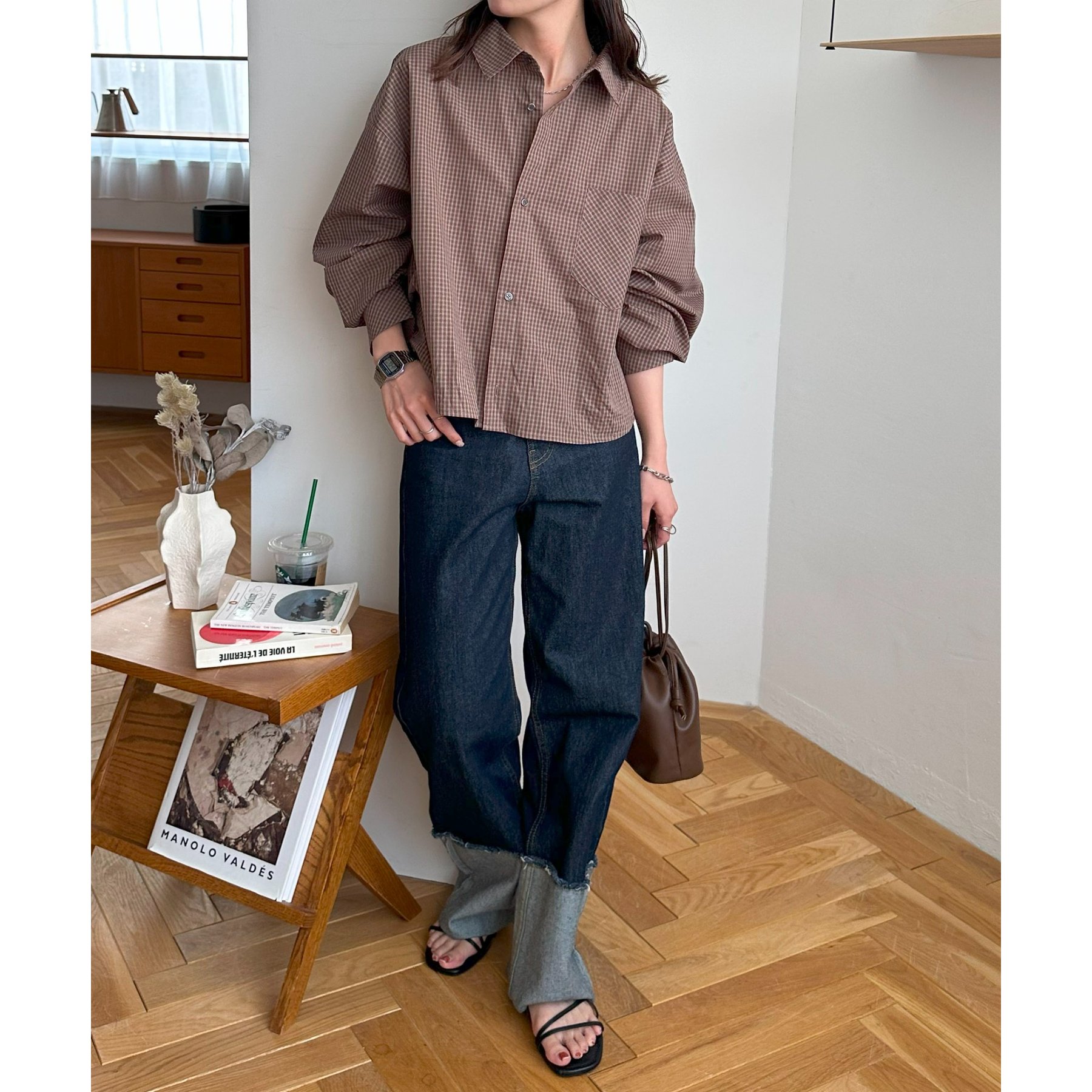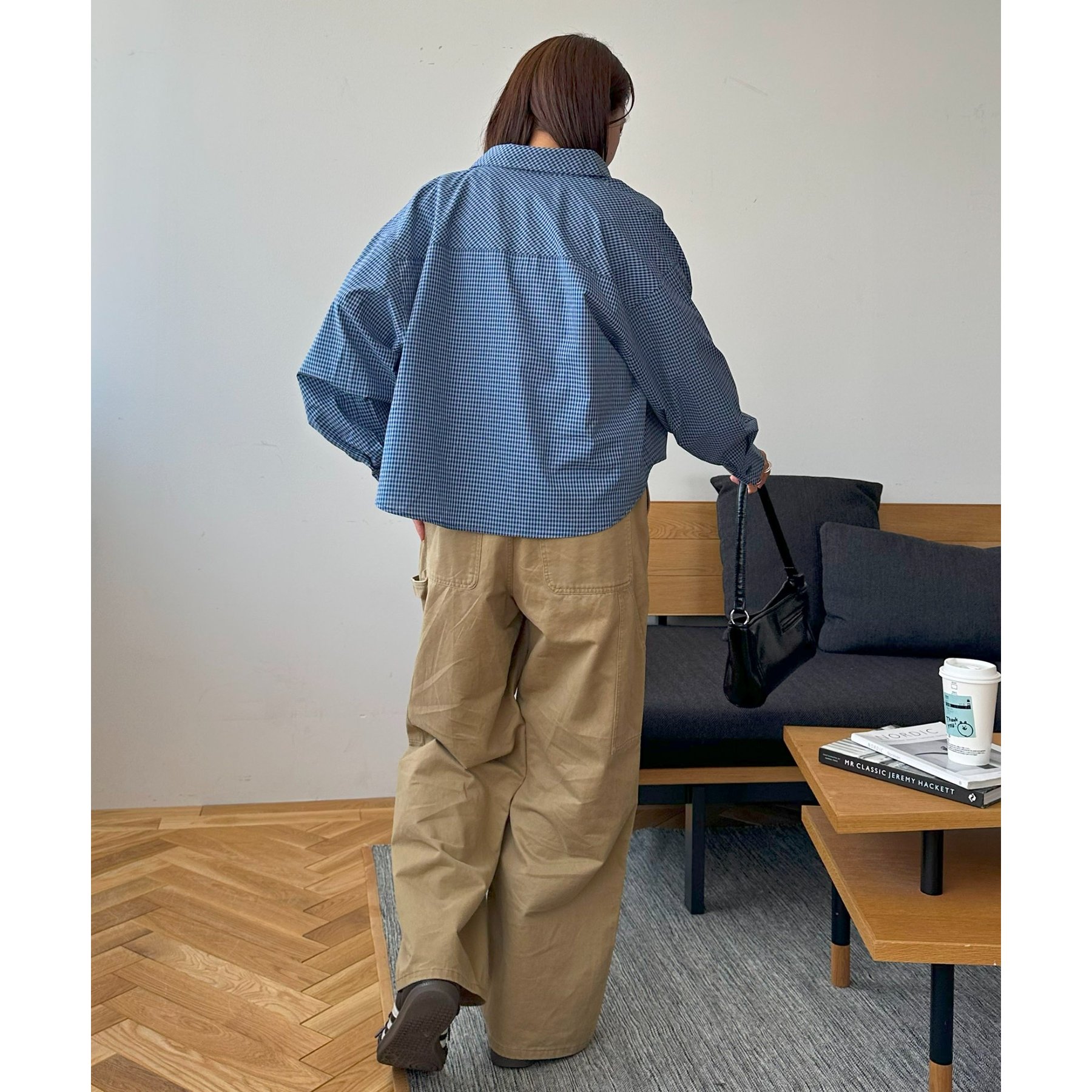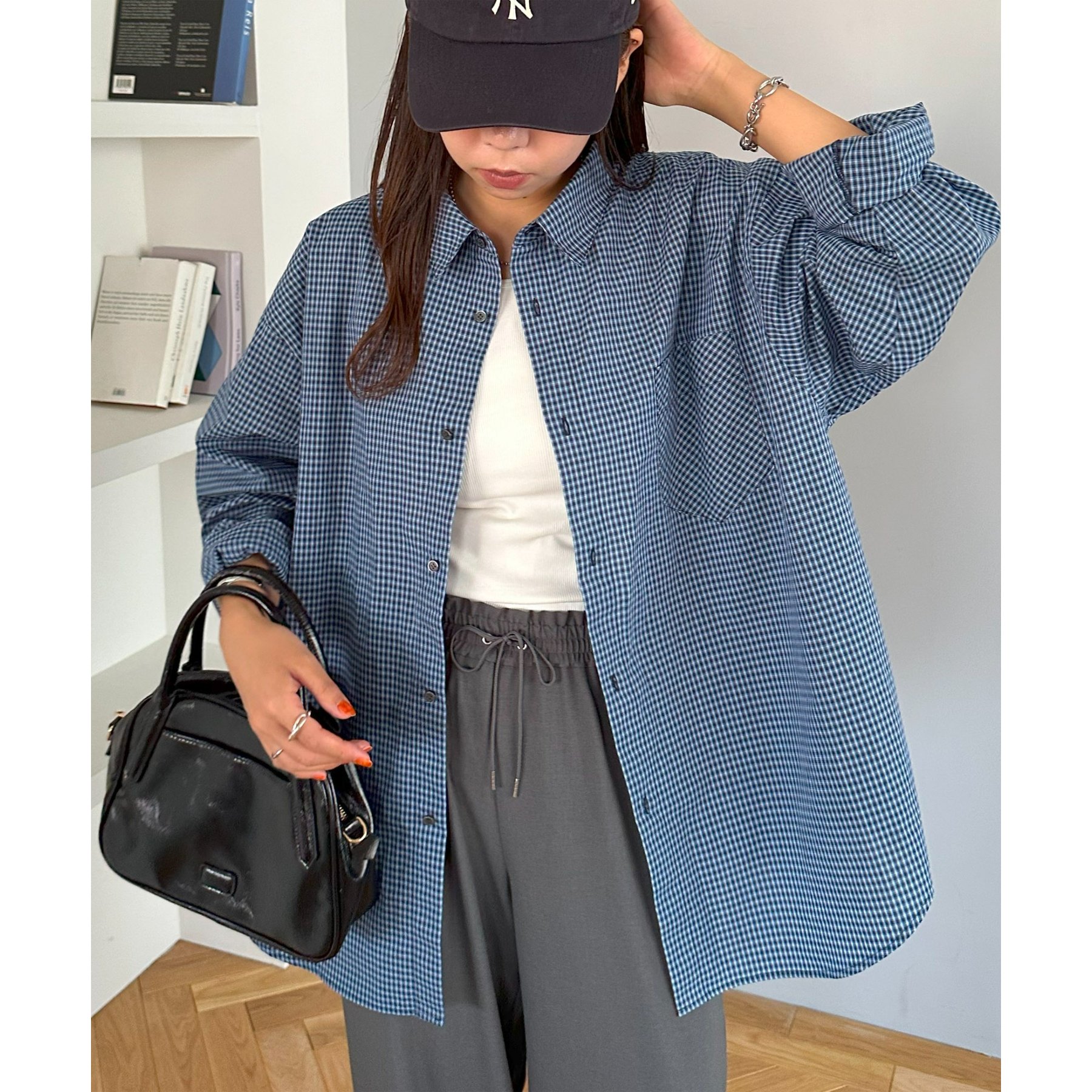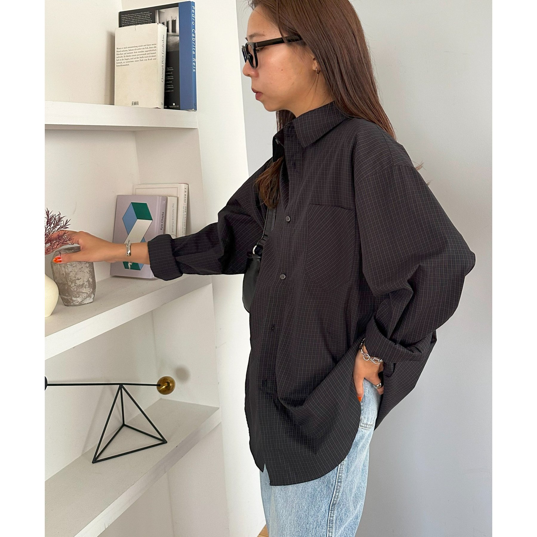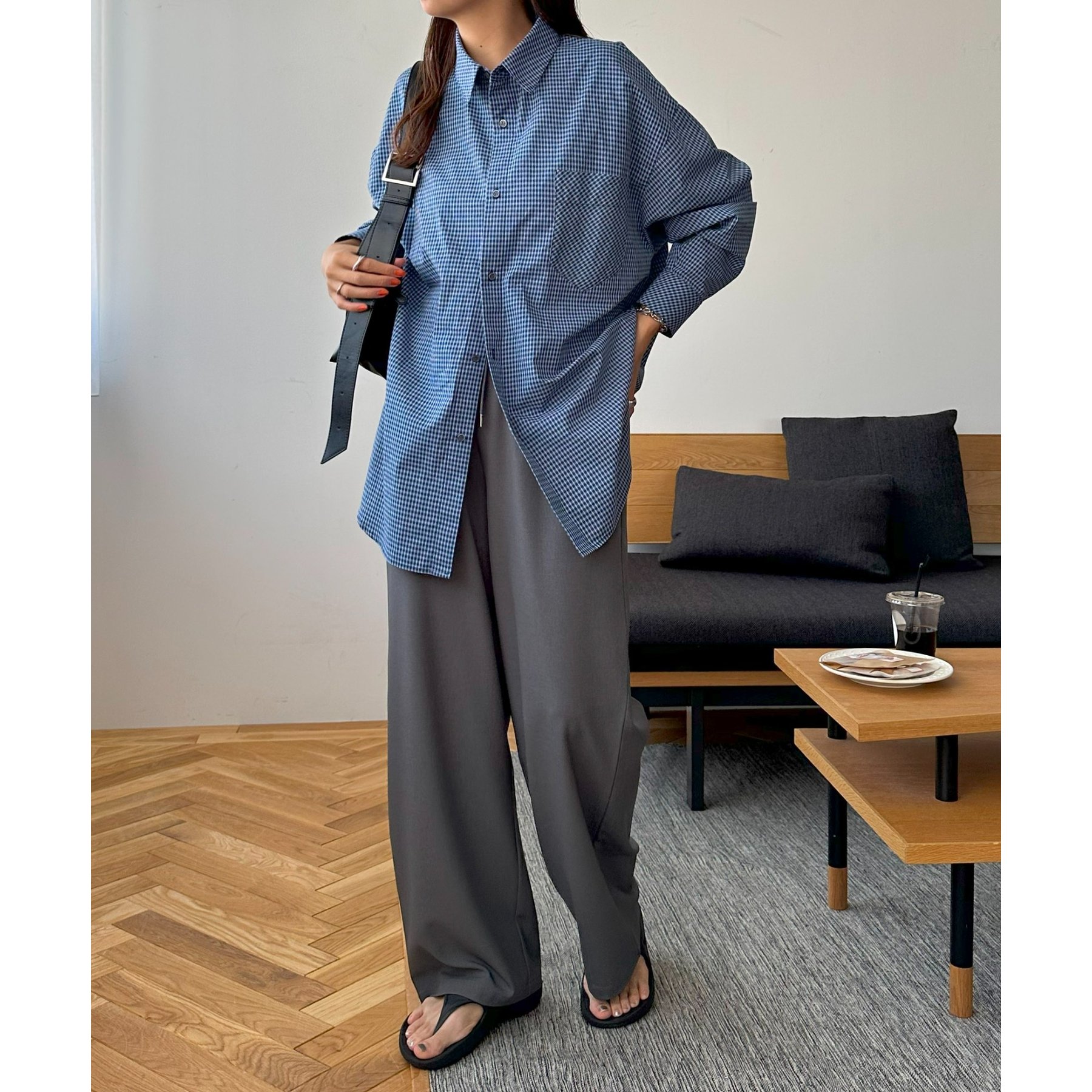 細かなグラフチェック柄が大人カジュアルな雰囲気を演出。