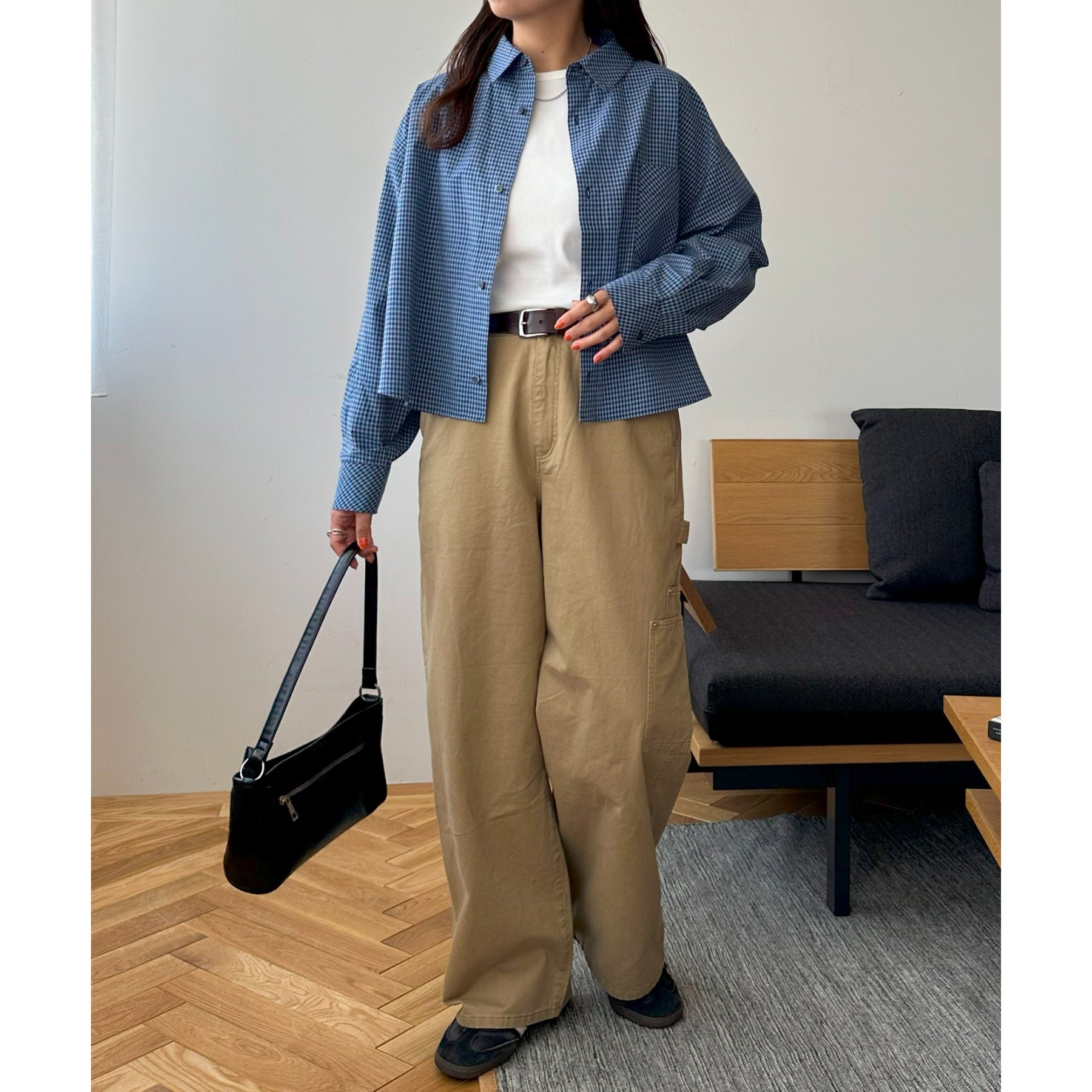 トレンドのワイドパンツやスウェットパンツと合わせてもバランス良く、着こなしの幅が広がります。