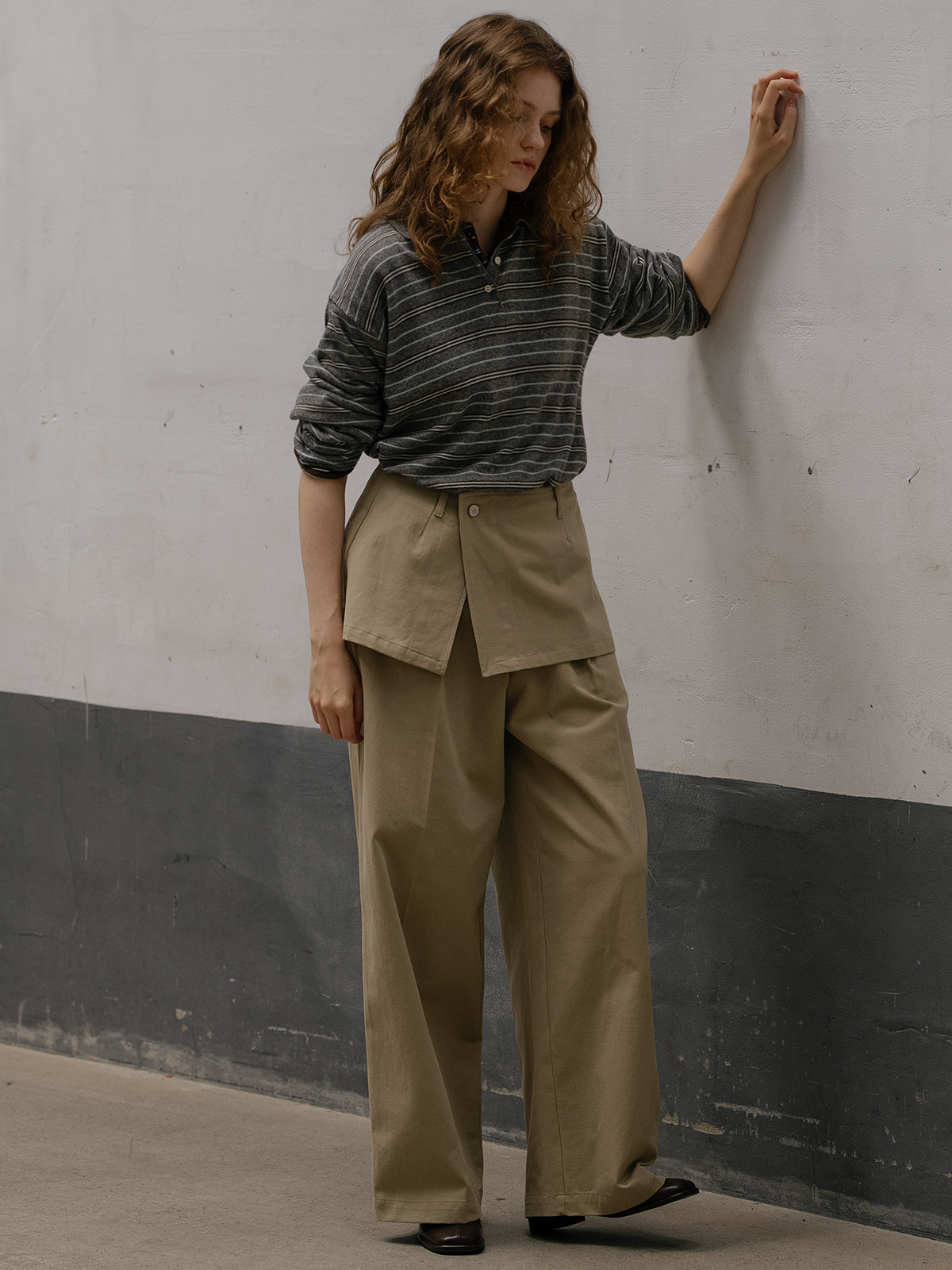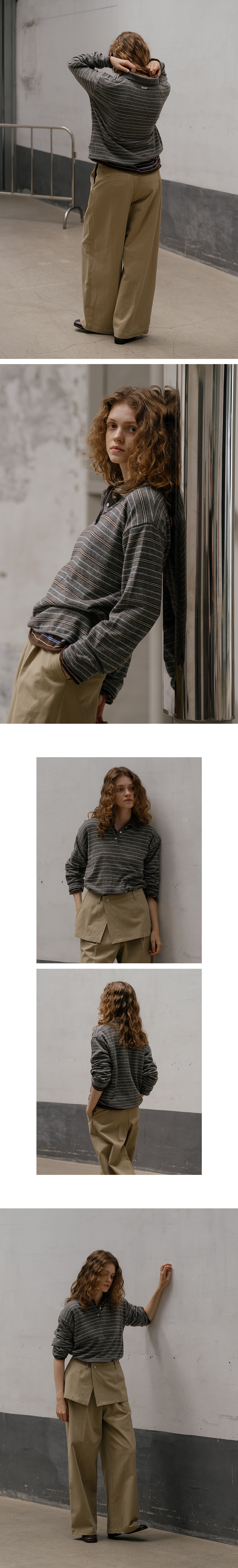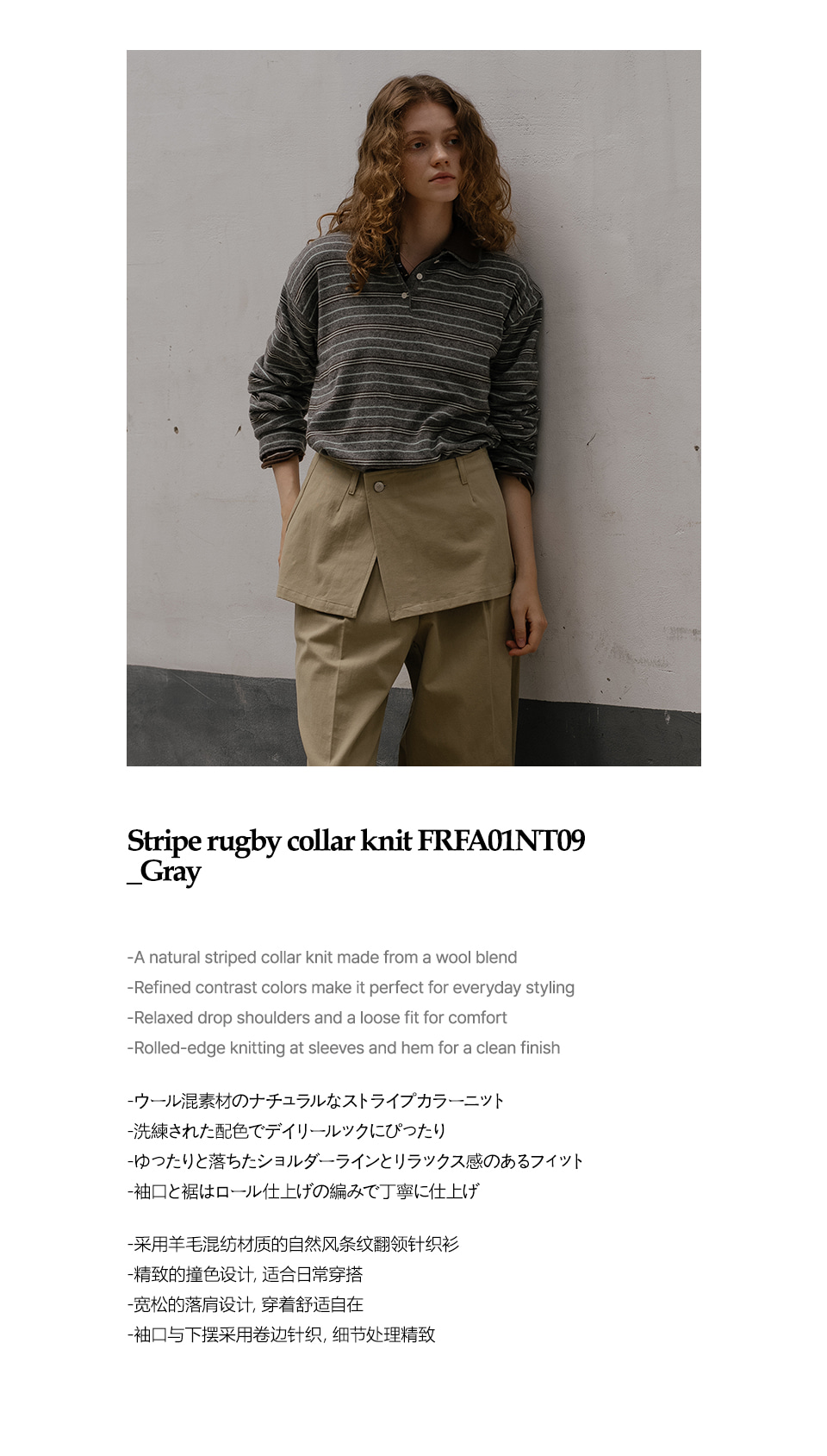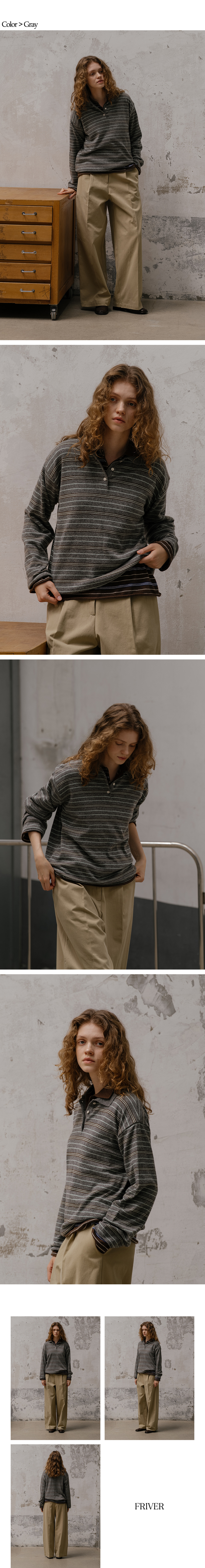 Stripe rugby collar knit FRFA01NT09_Gray