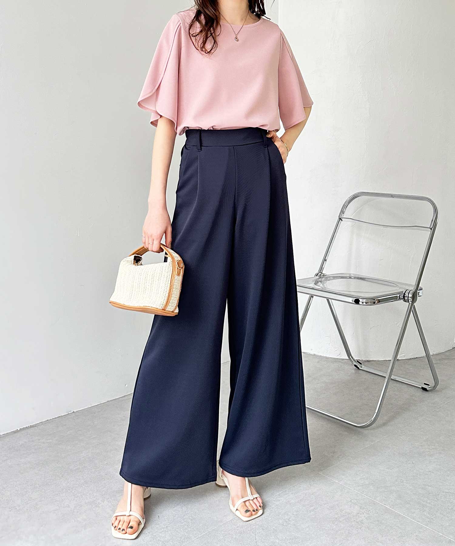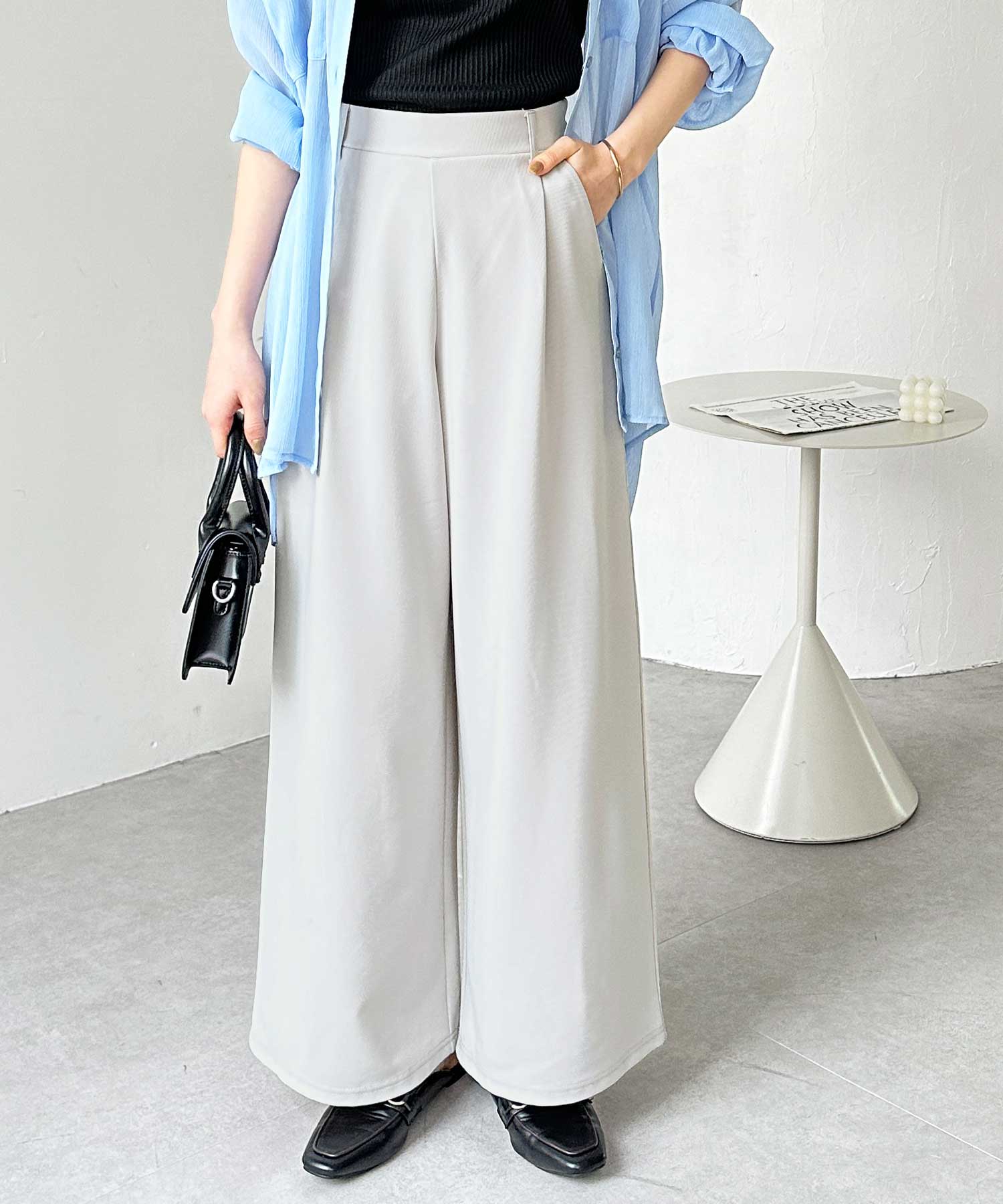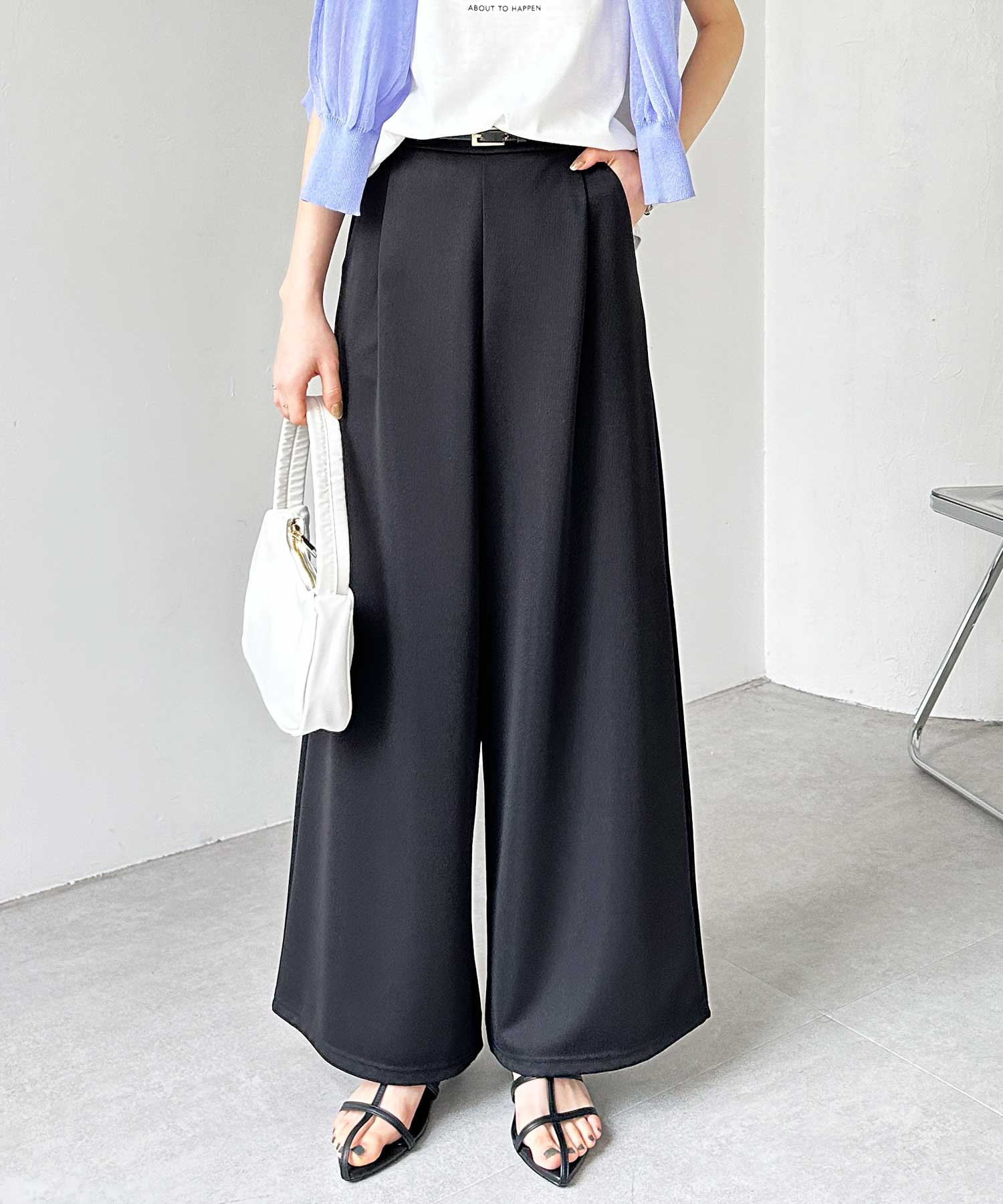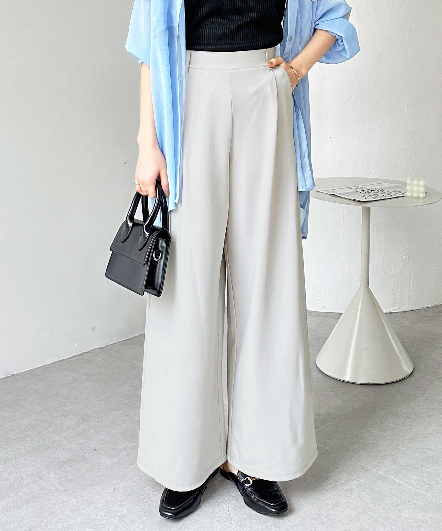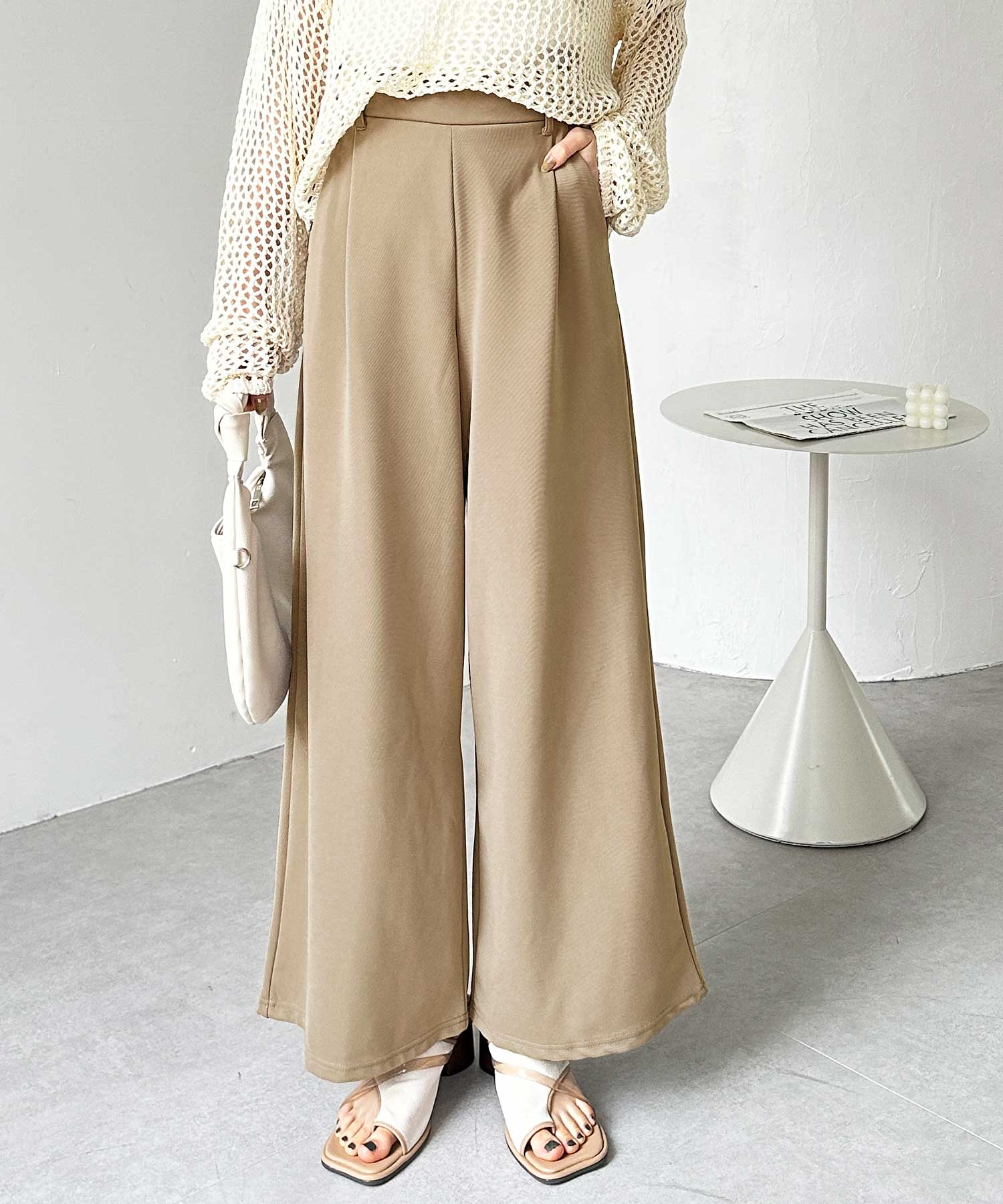 はくだけで美脚見えする美しいシルエットのワイドパンツ。