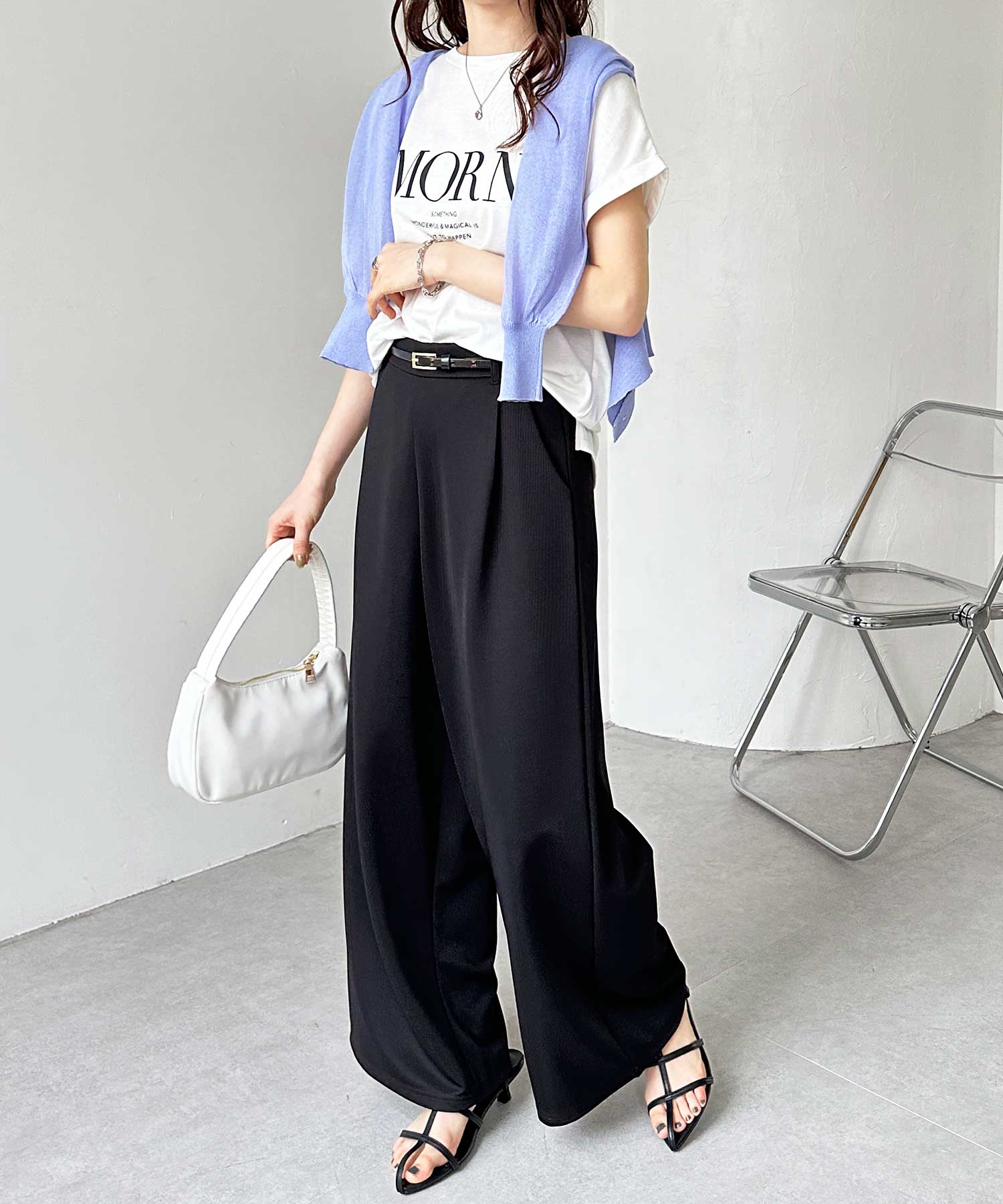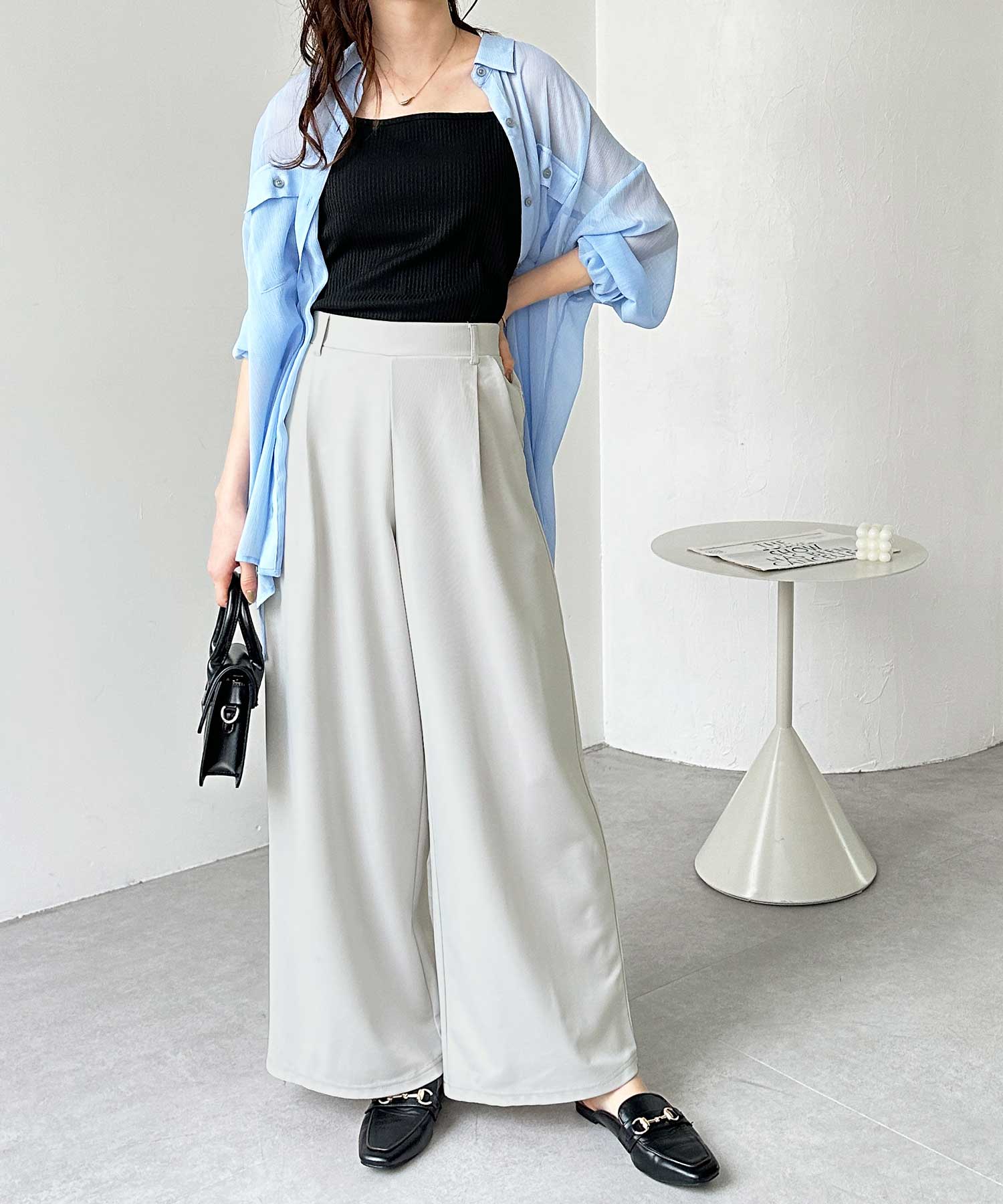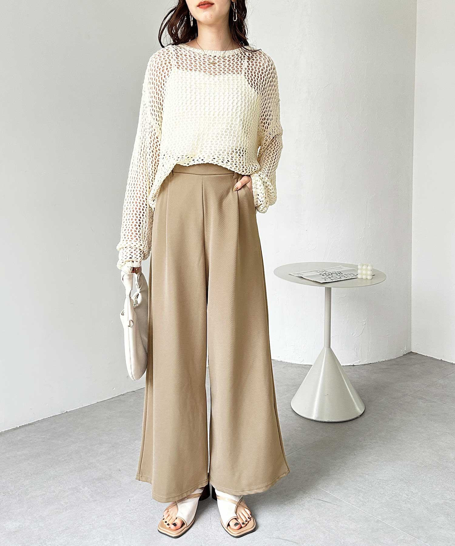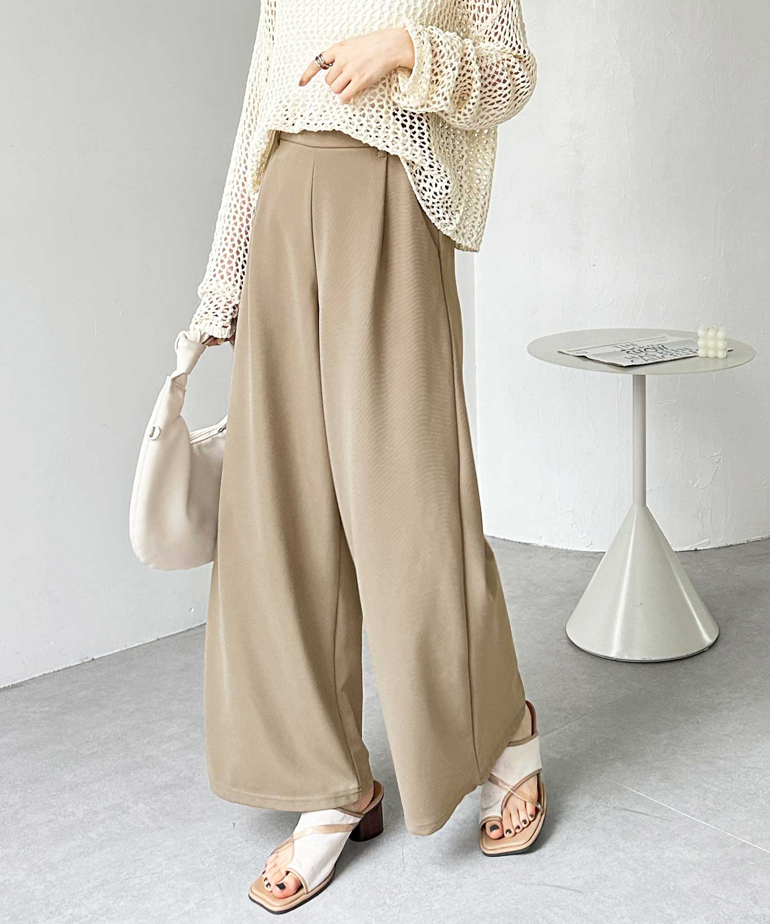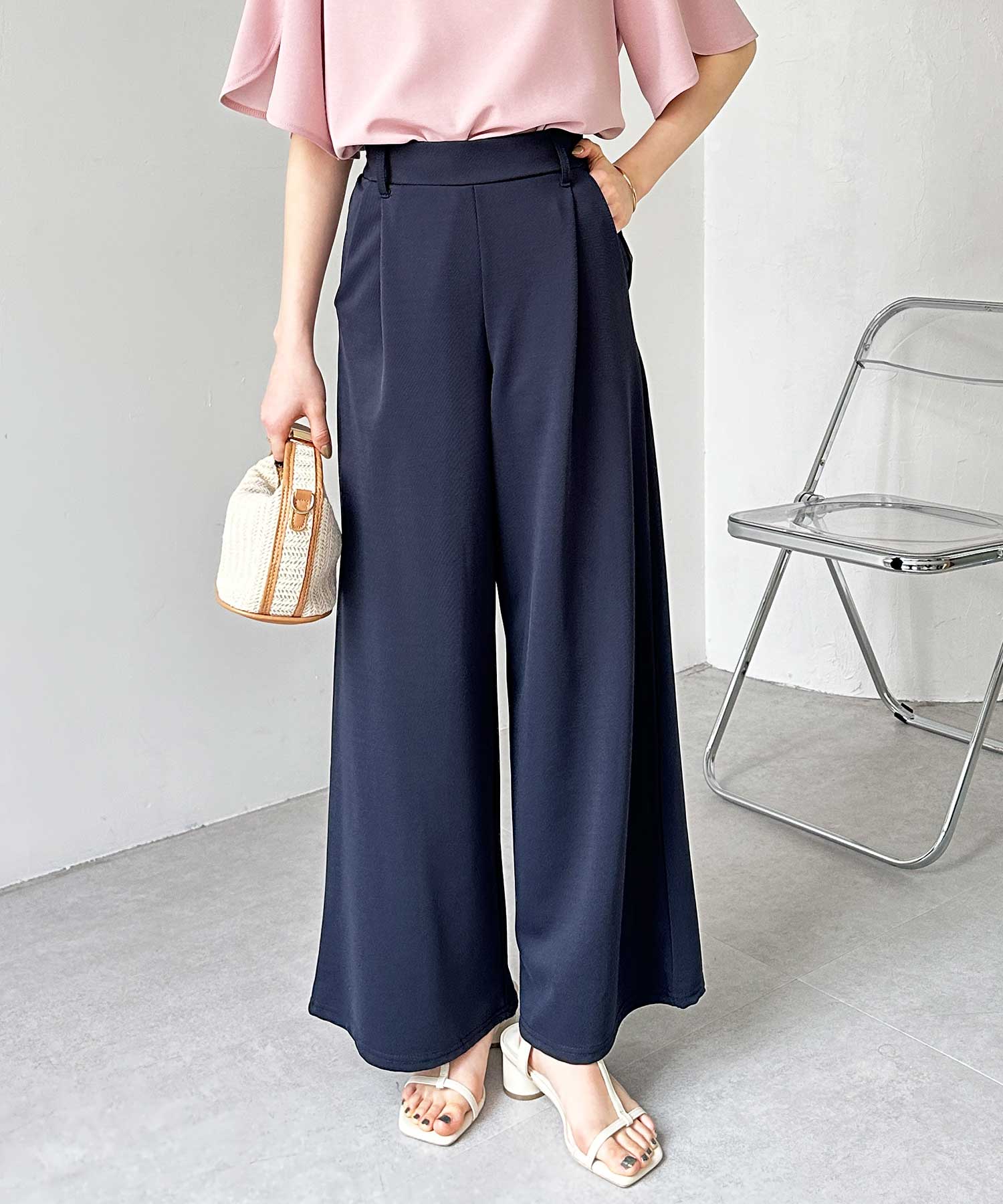 はくだけで美脚見えする美しいシルエットのワイドパンツ。