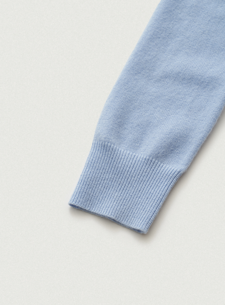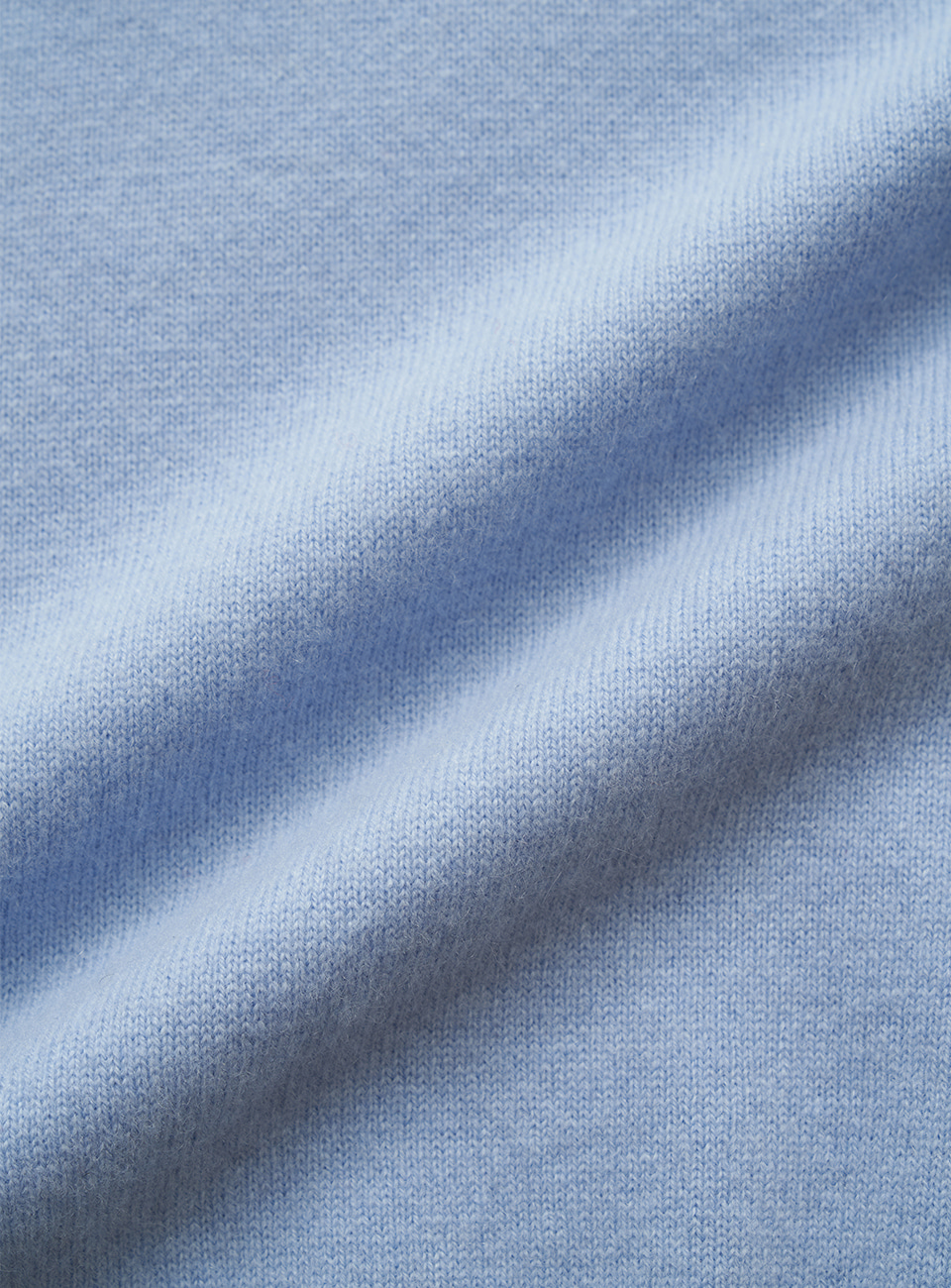 スカイブルーカラーの柔らかな質感が特徴のカシミヤ混紡ニットファブリック