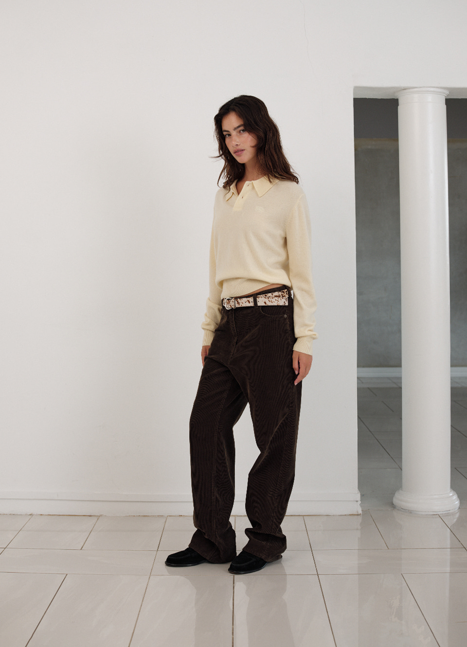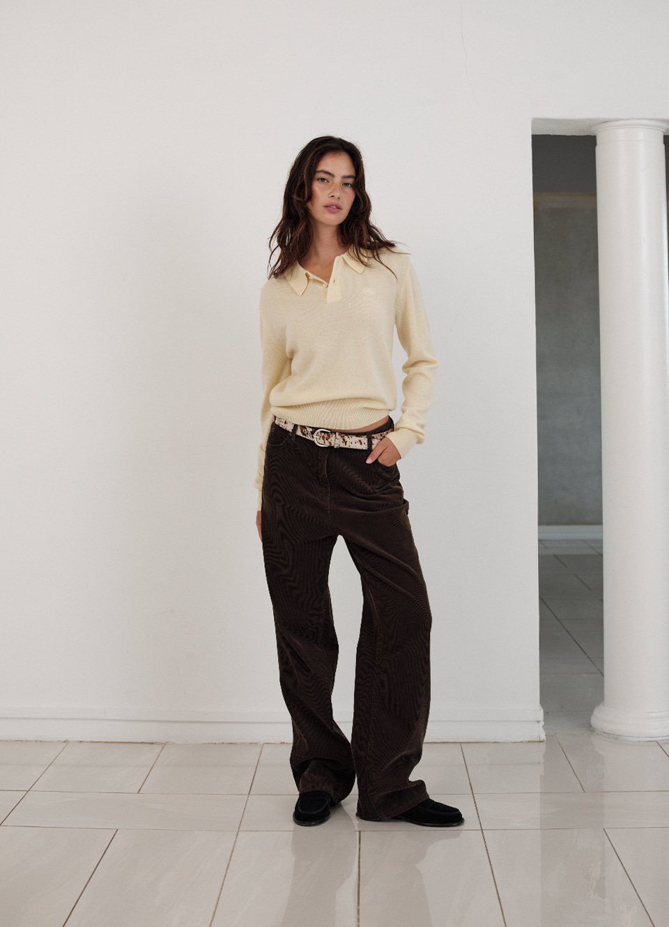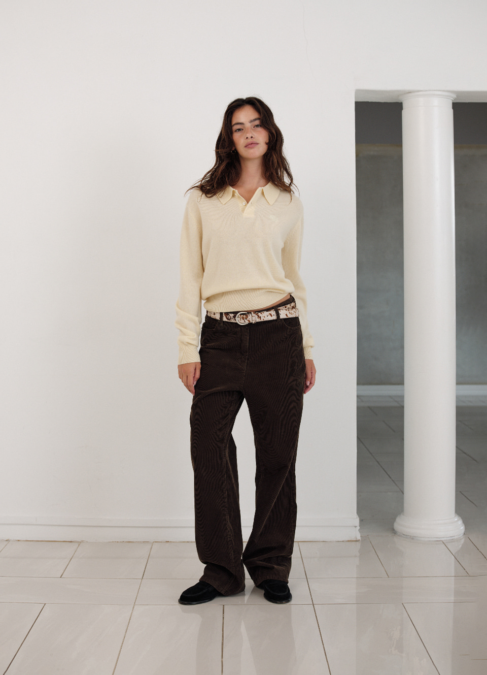 レギュラーカラーとボタン留め仕様のニットポロシャツタイプ