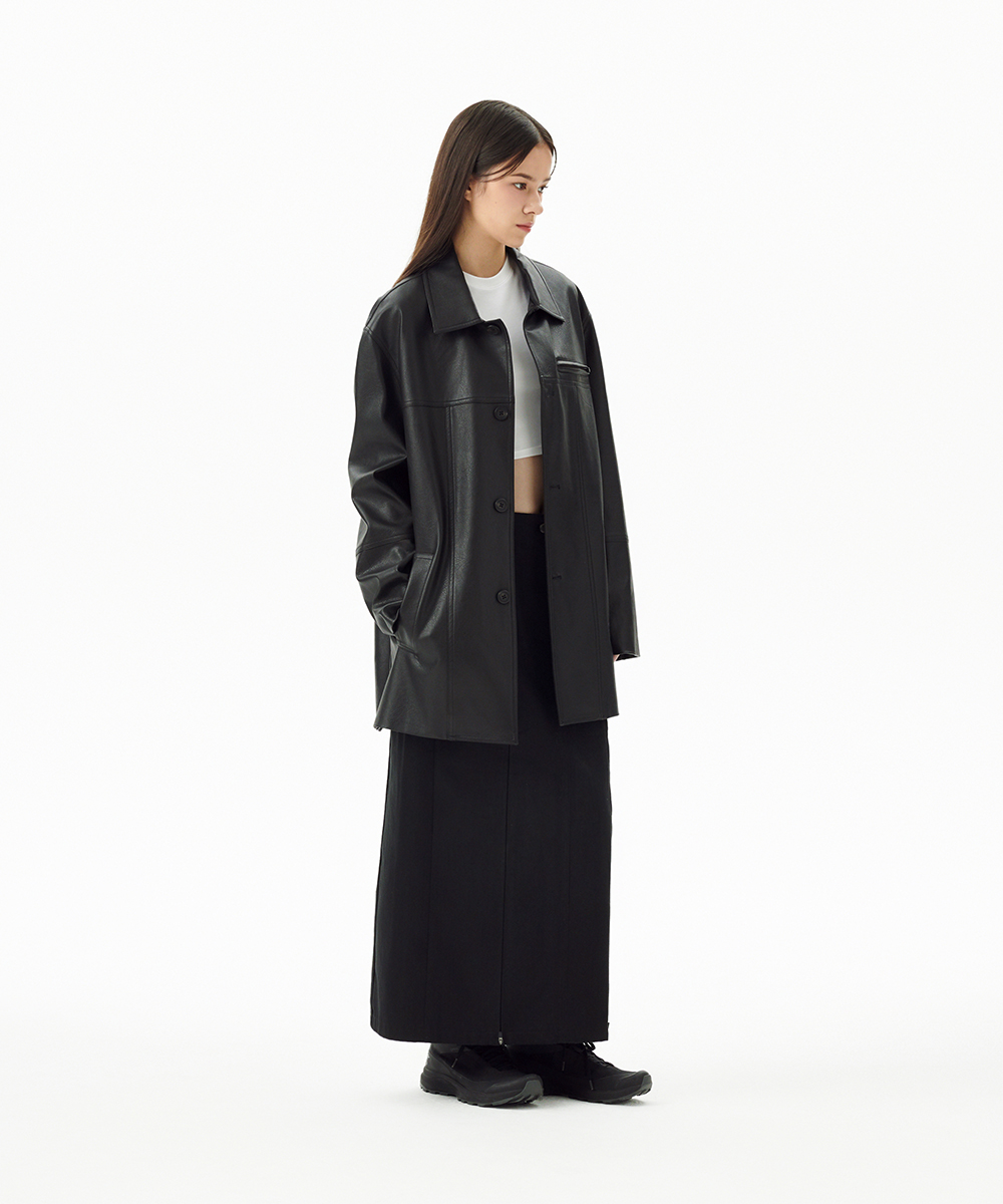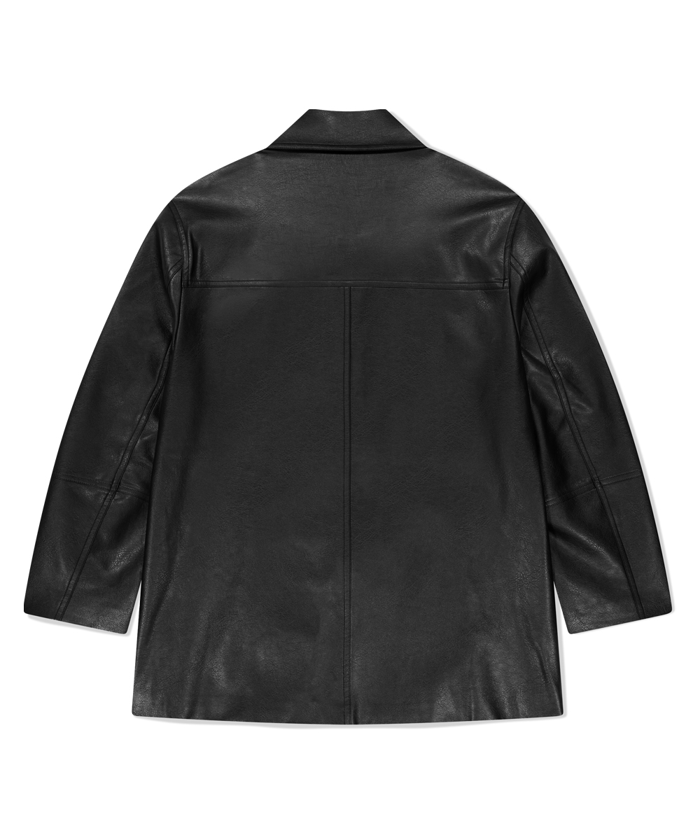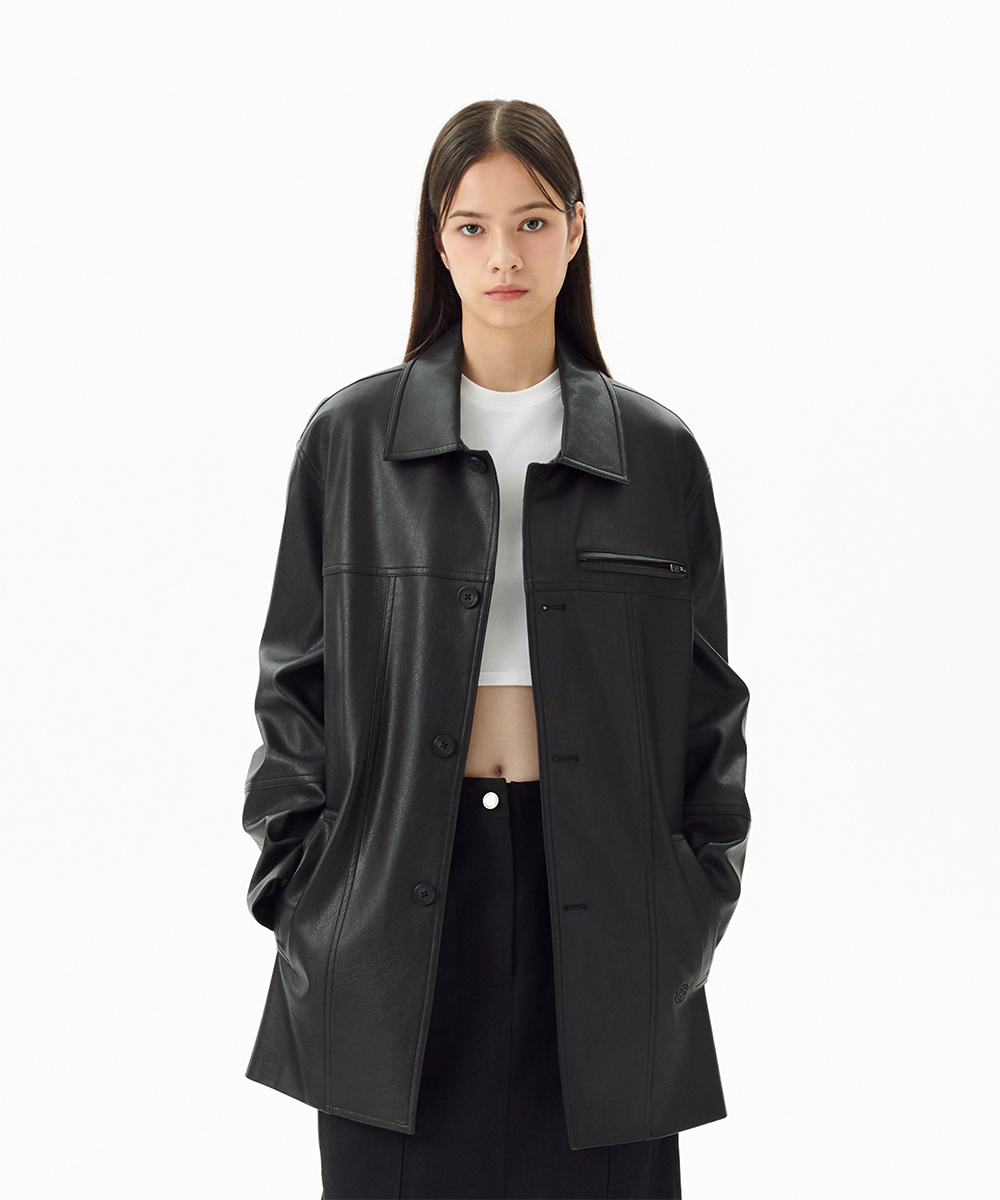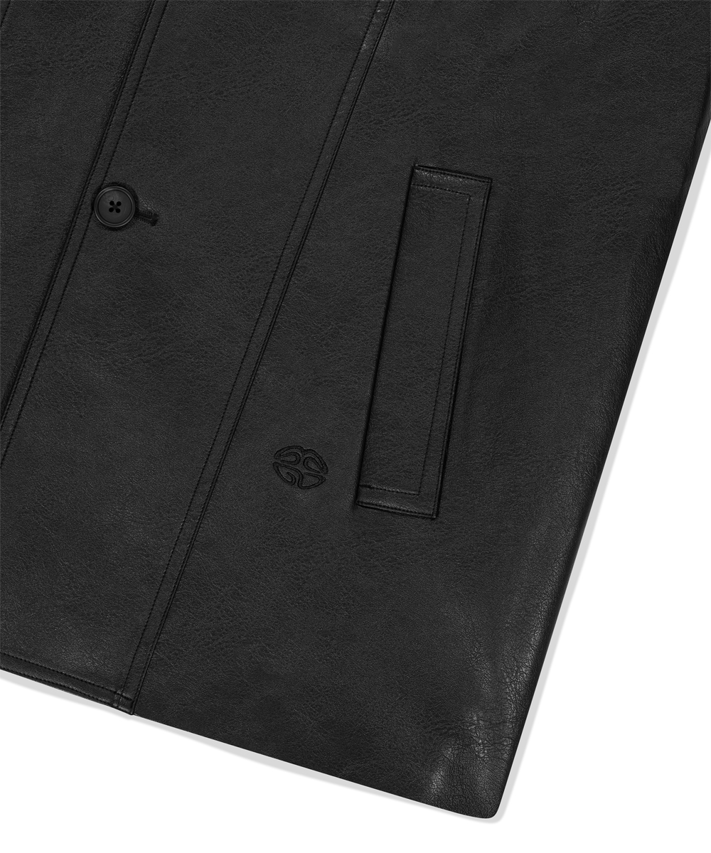 FAUX LEATHER CARCOAT[BLACK]