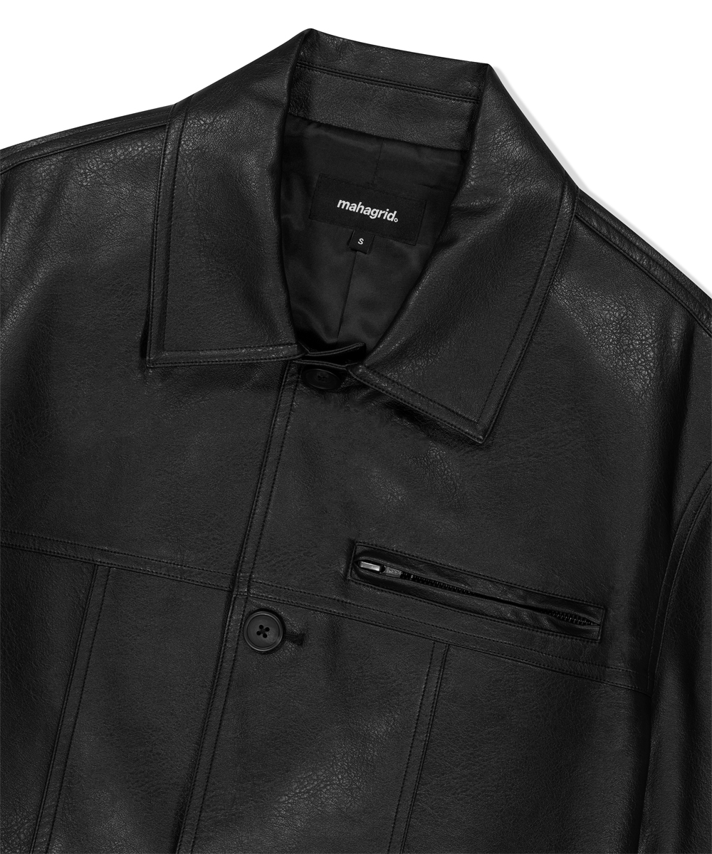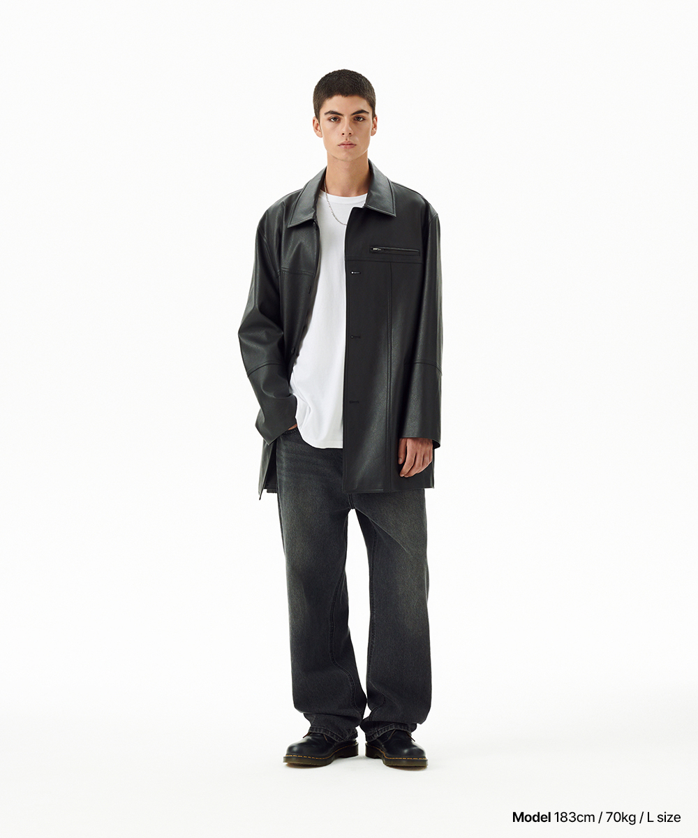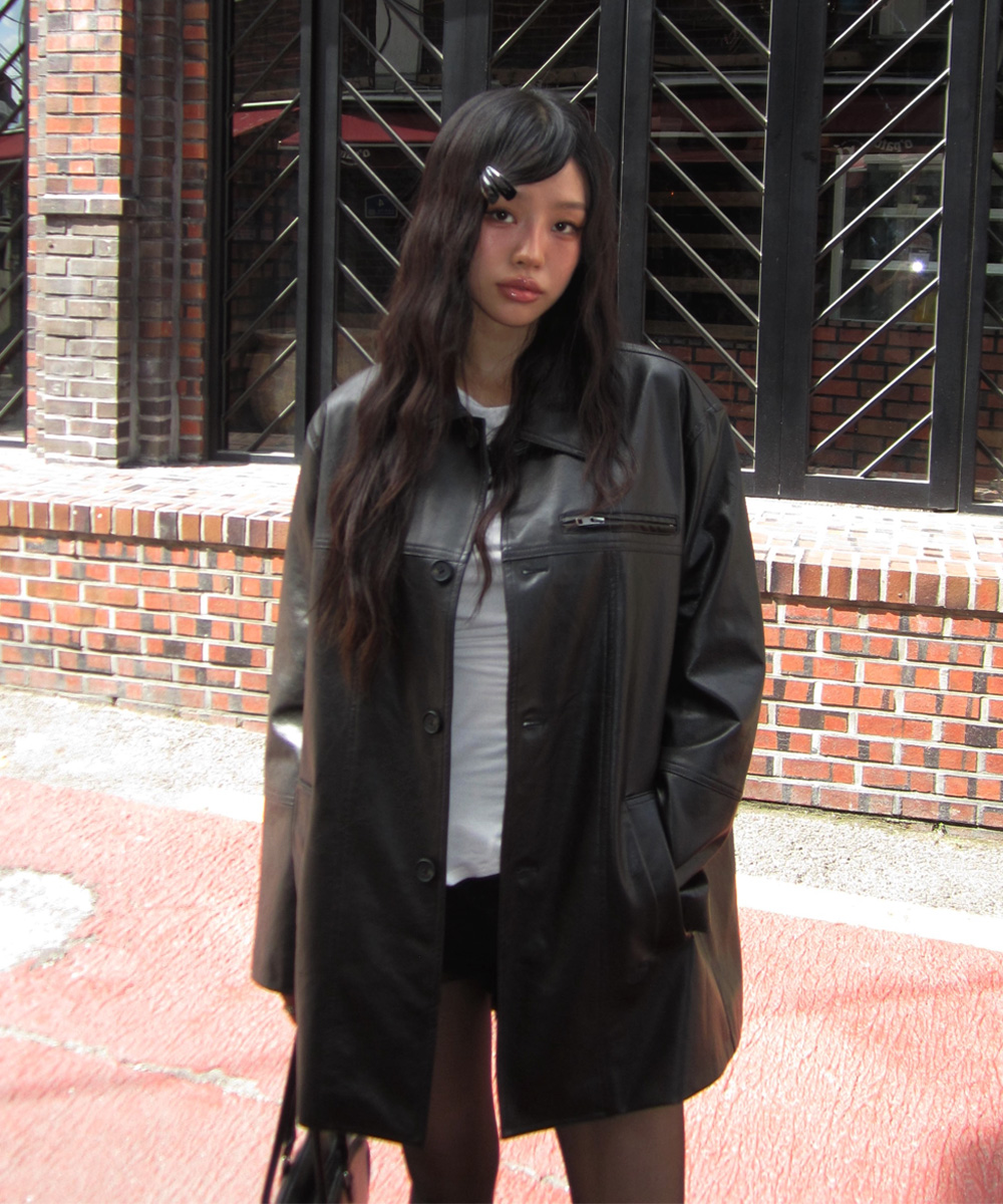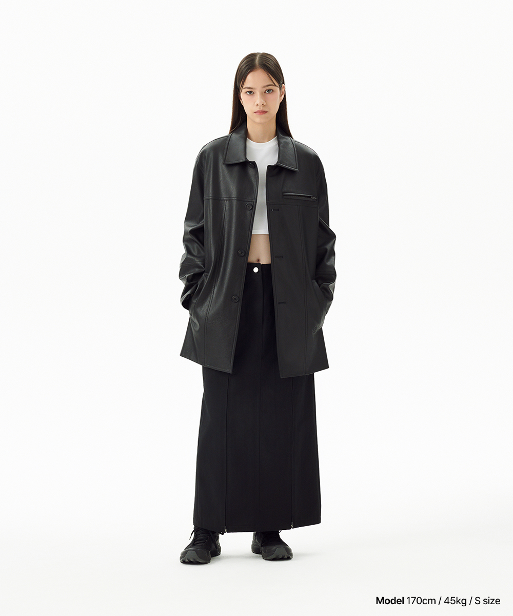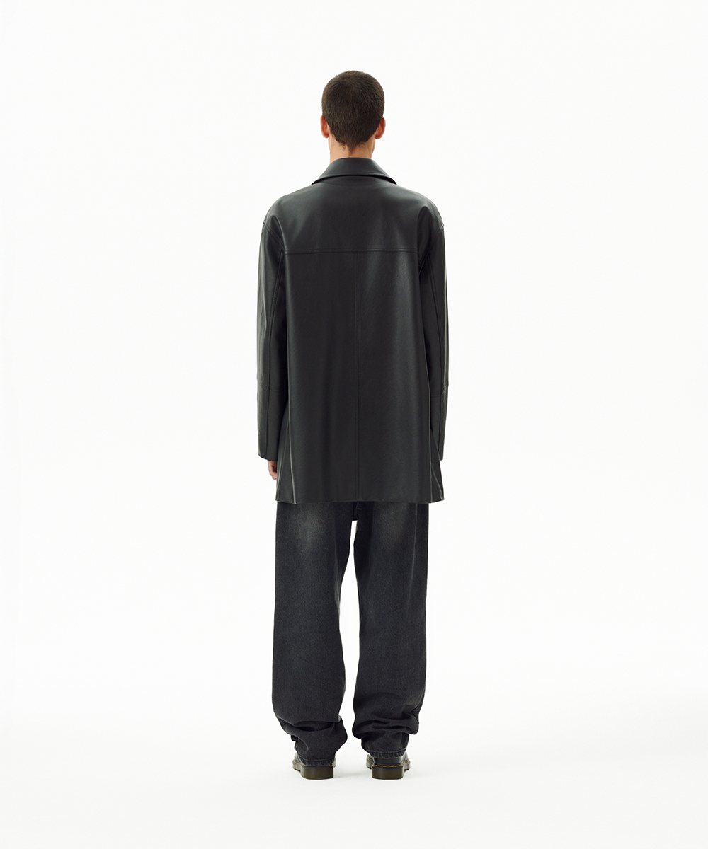 FAUX LEATHER CARCOAT[BLACK]