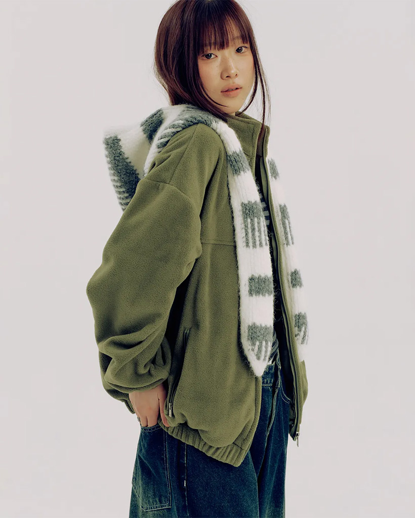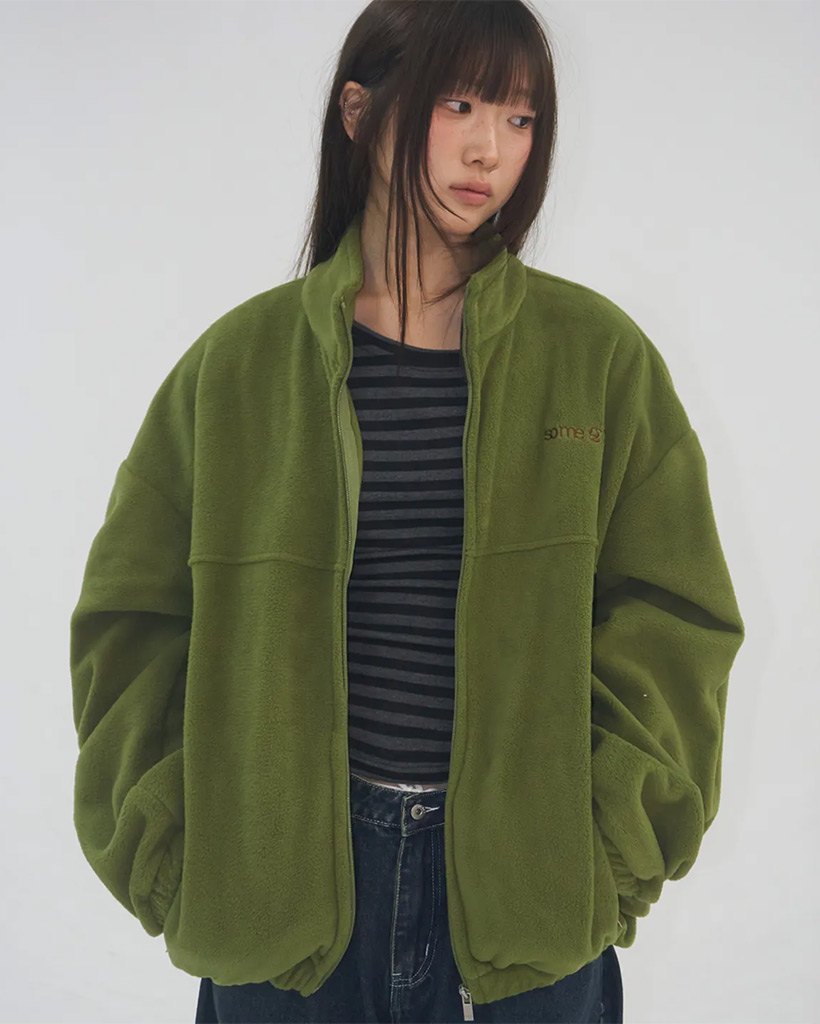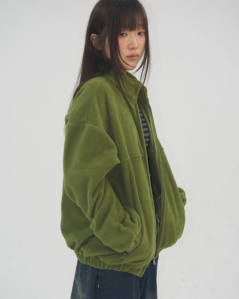 Soft Logo Point Basic Fleece Zip-Up Warm Fleece Jumper [Green]
