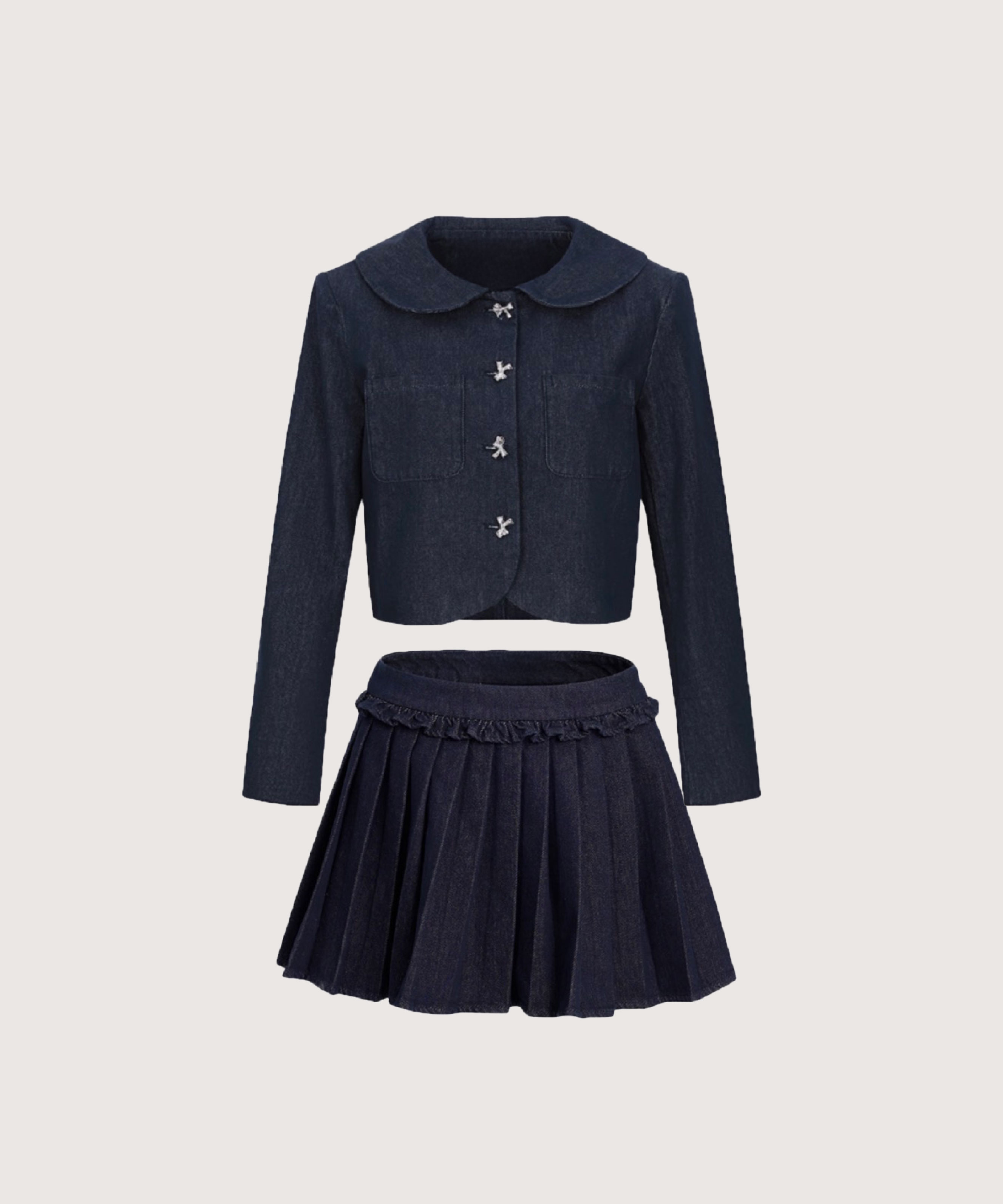 フロントリボンボタンデニムセットアップ