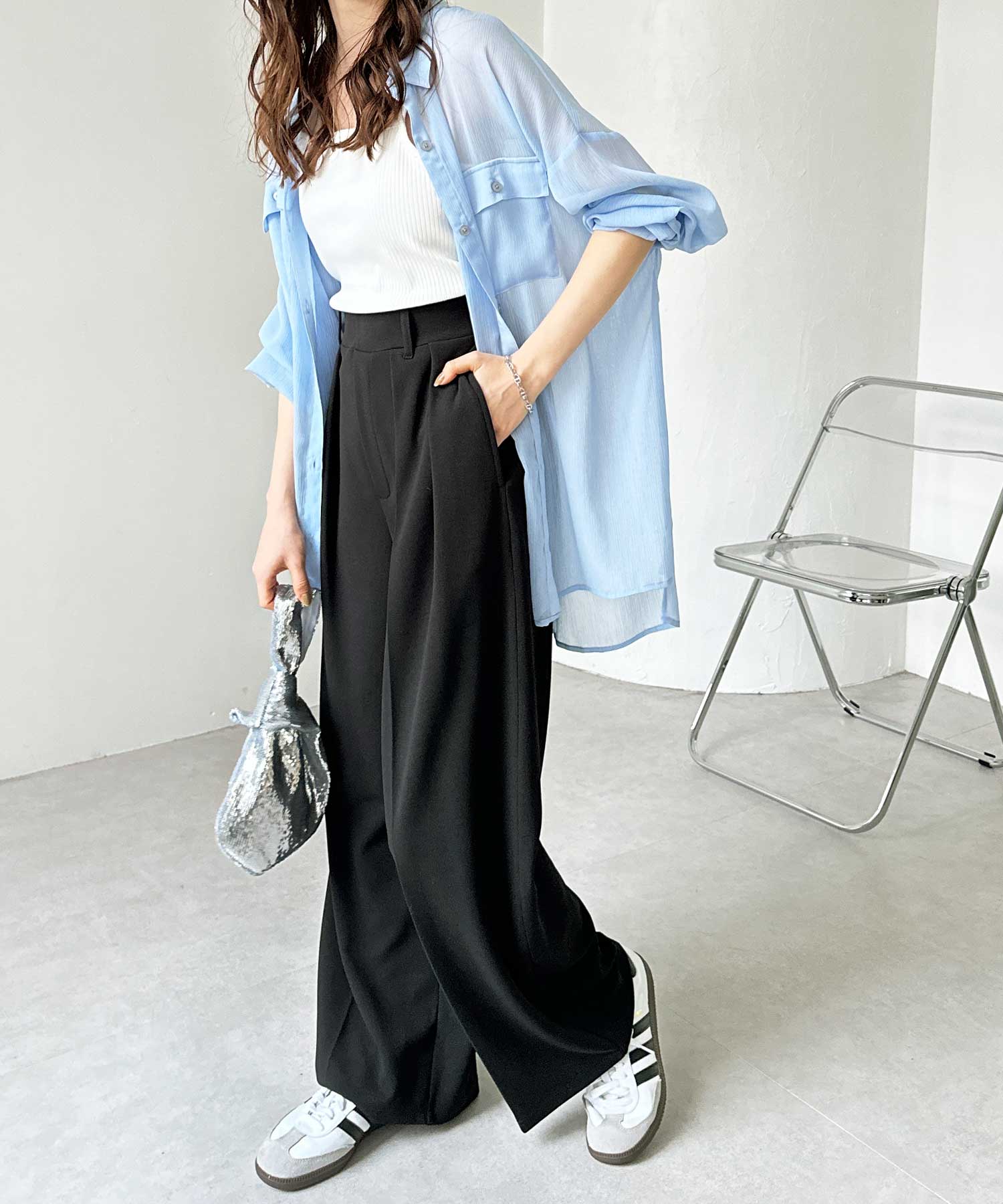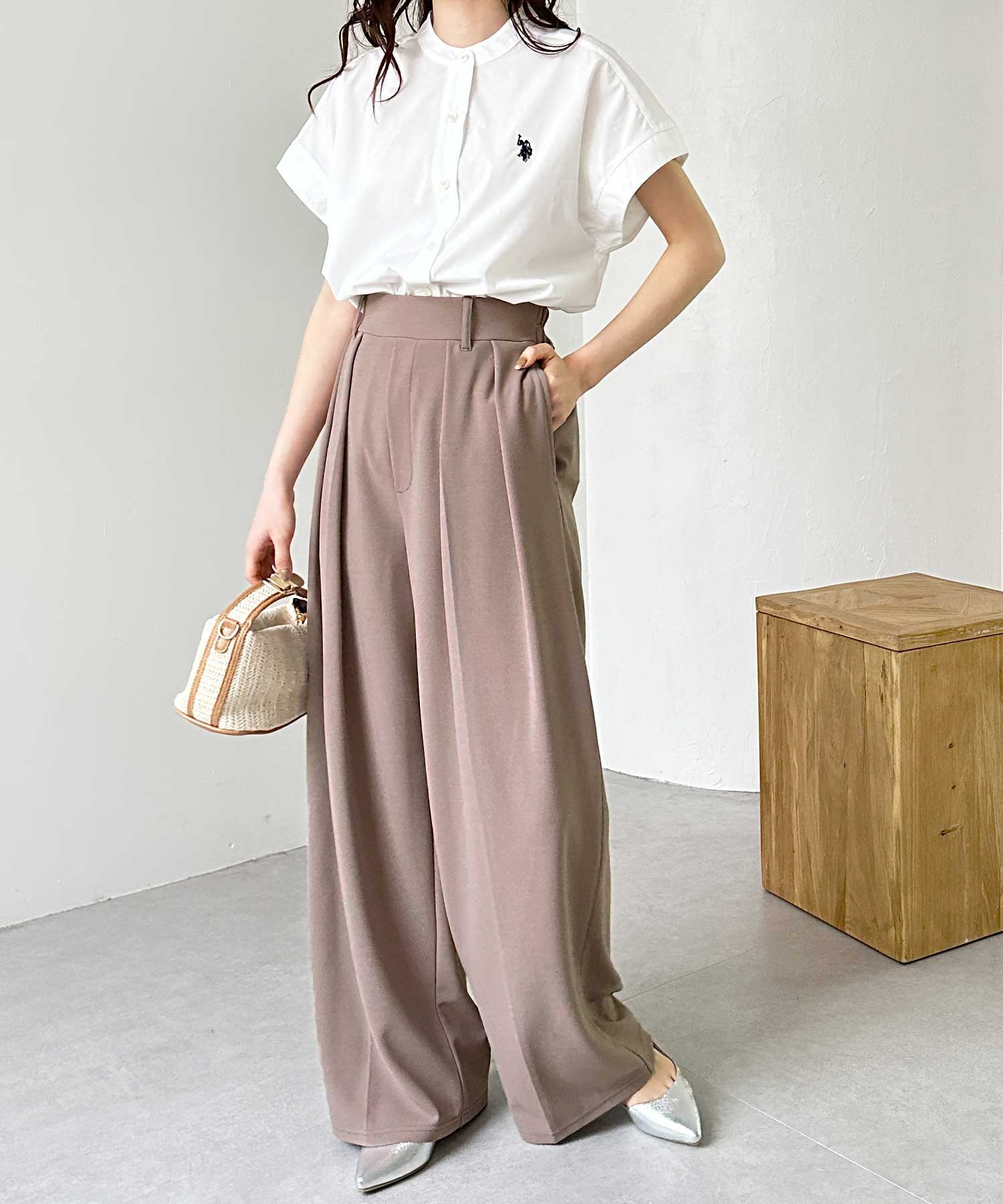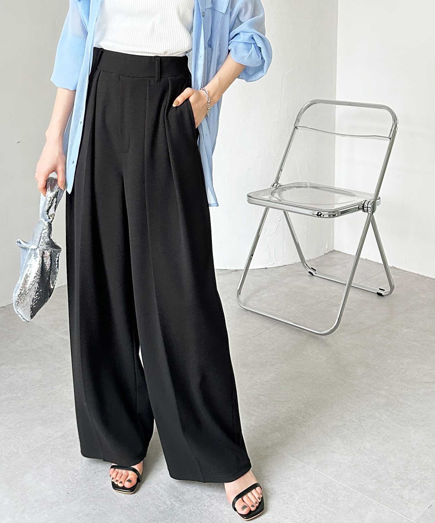 春夏 にぴったり!インタックスラックスハイウエストワイドパンツ