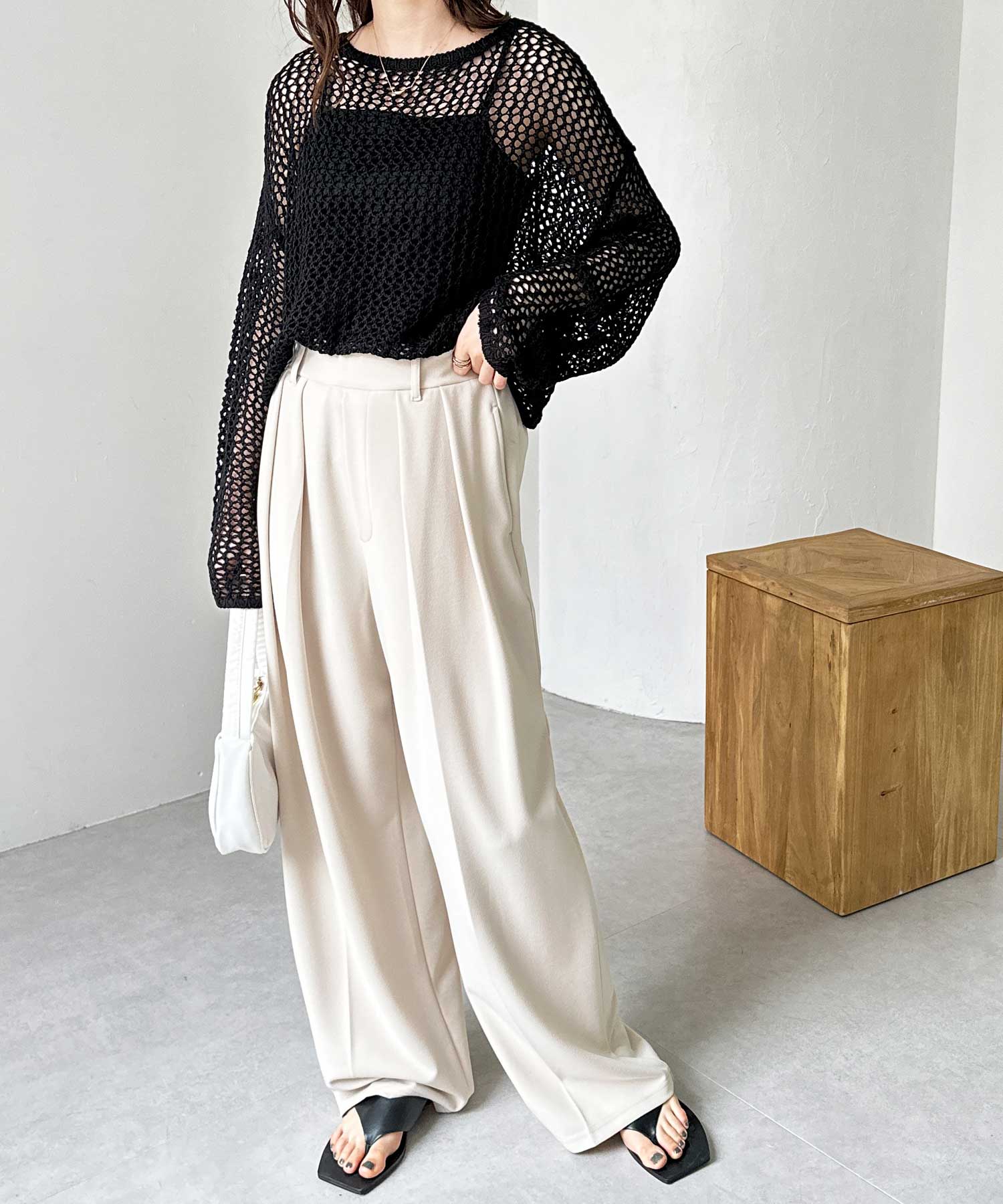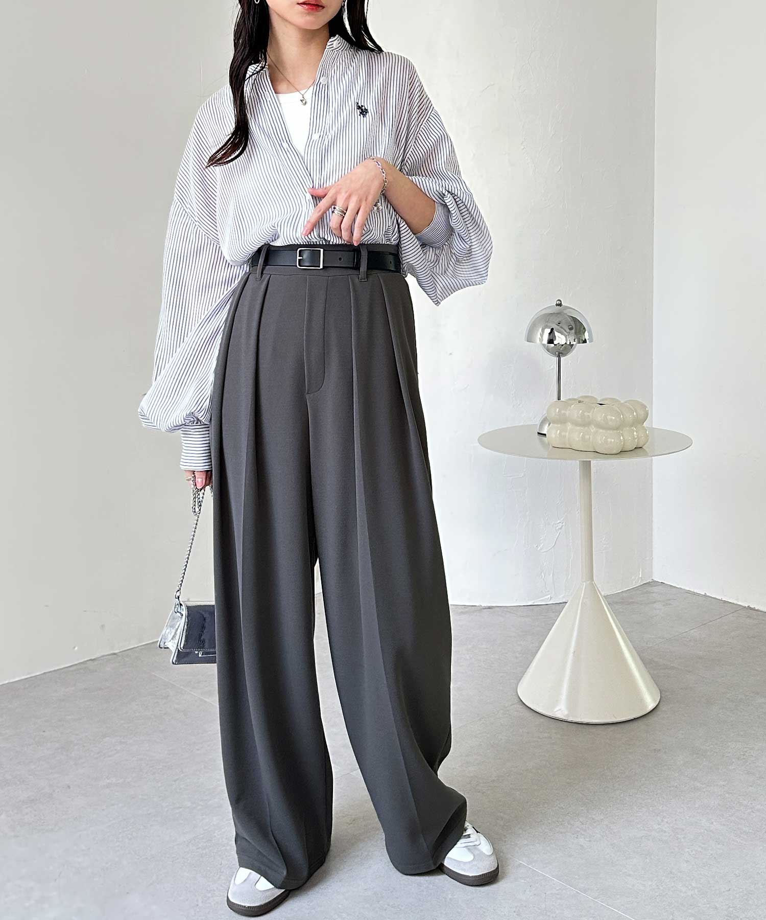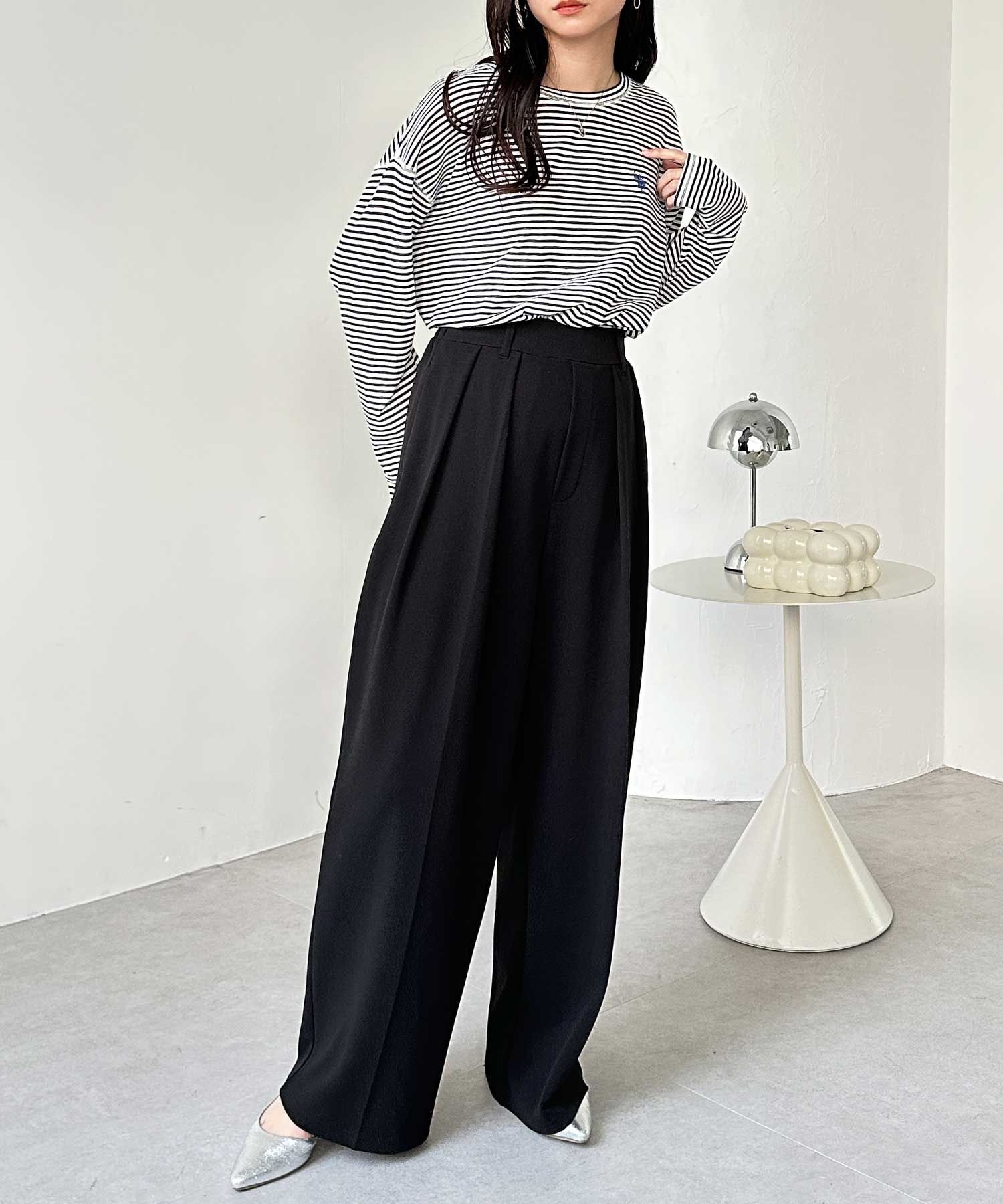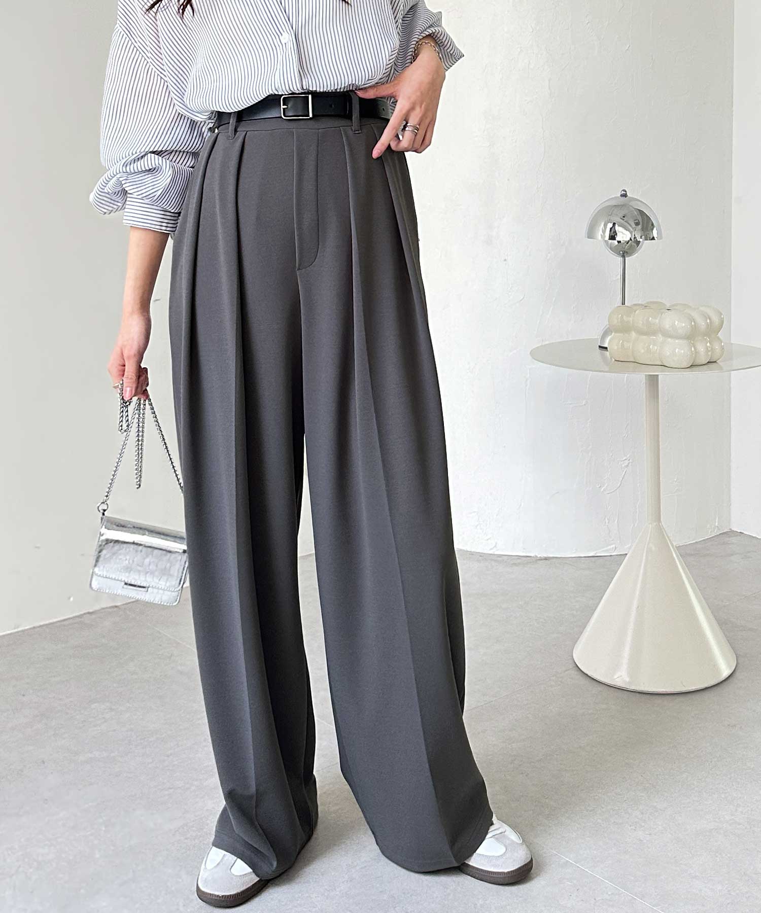 春夏 にぴったり!インタックスラックスハイウエストワイドパンツ