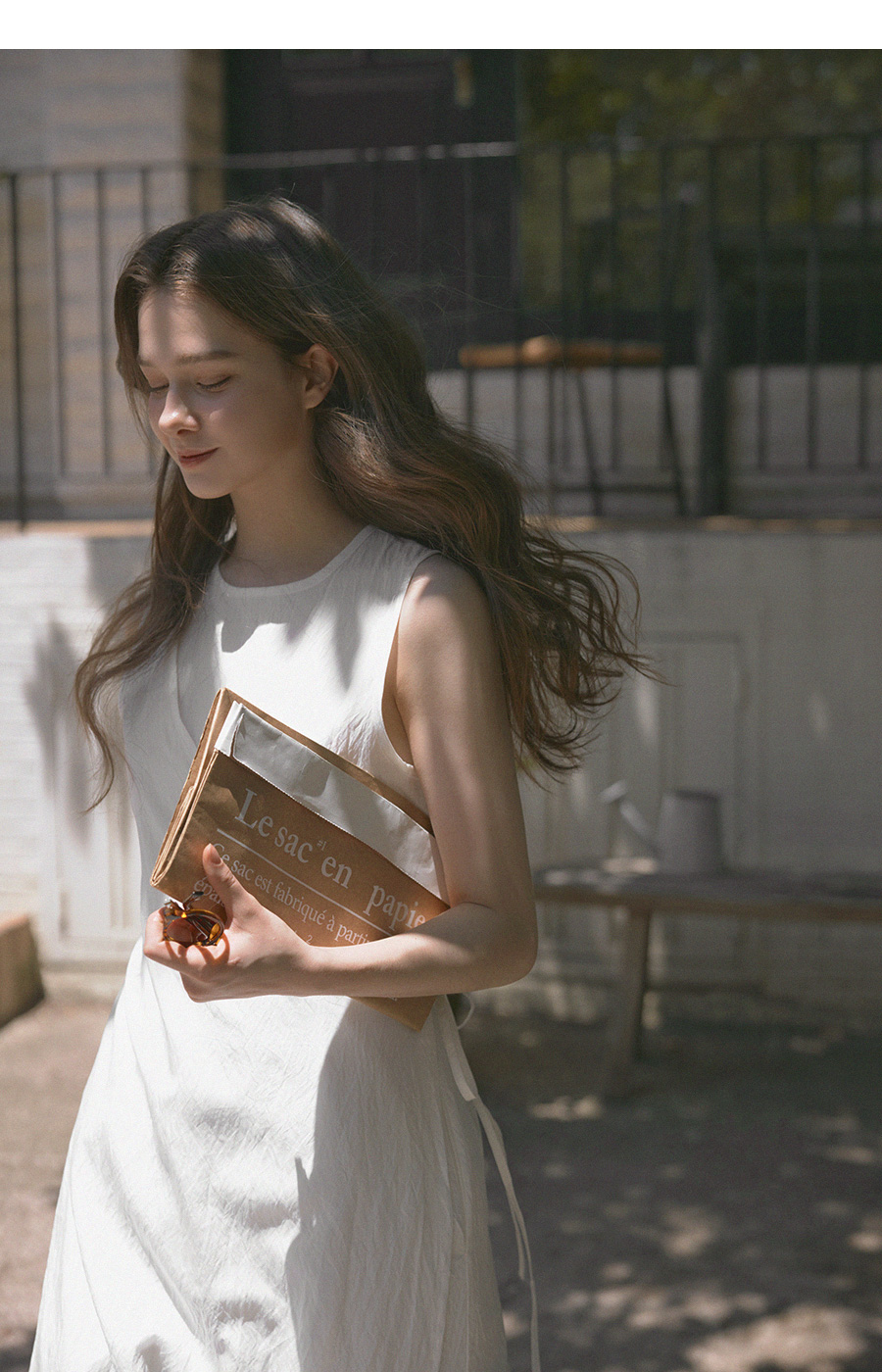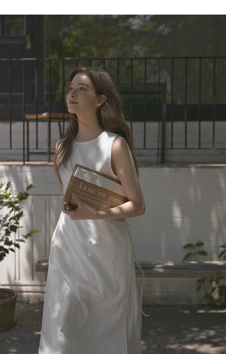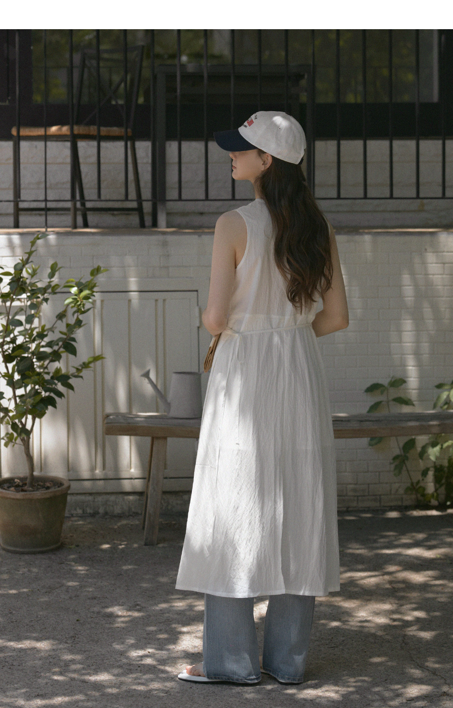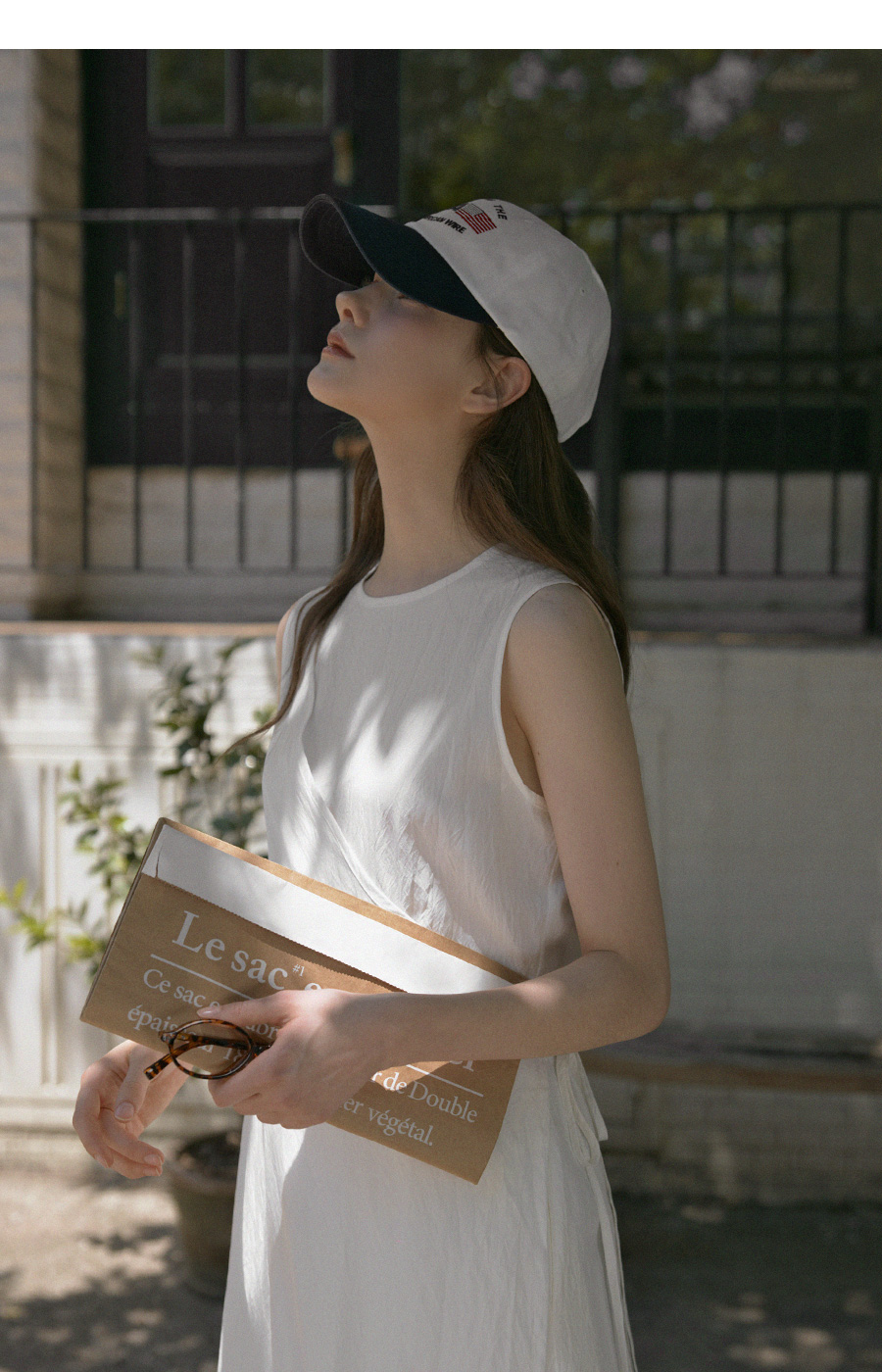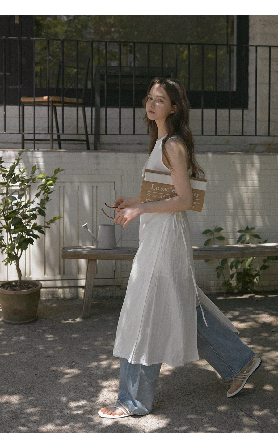 세련된 무드 연출 가능한 슬리브리스 랩 원피스입니다.