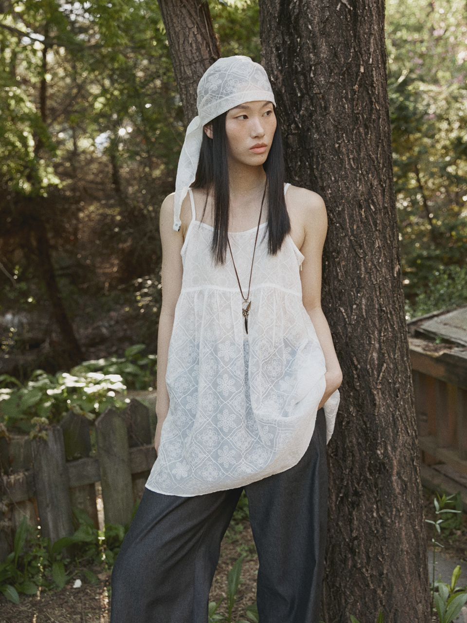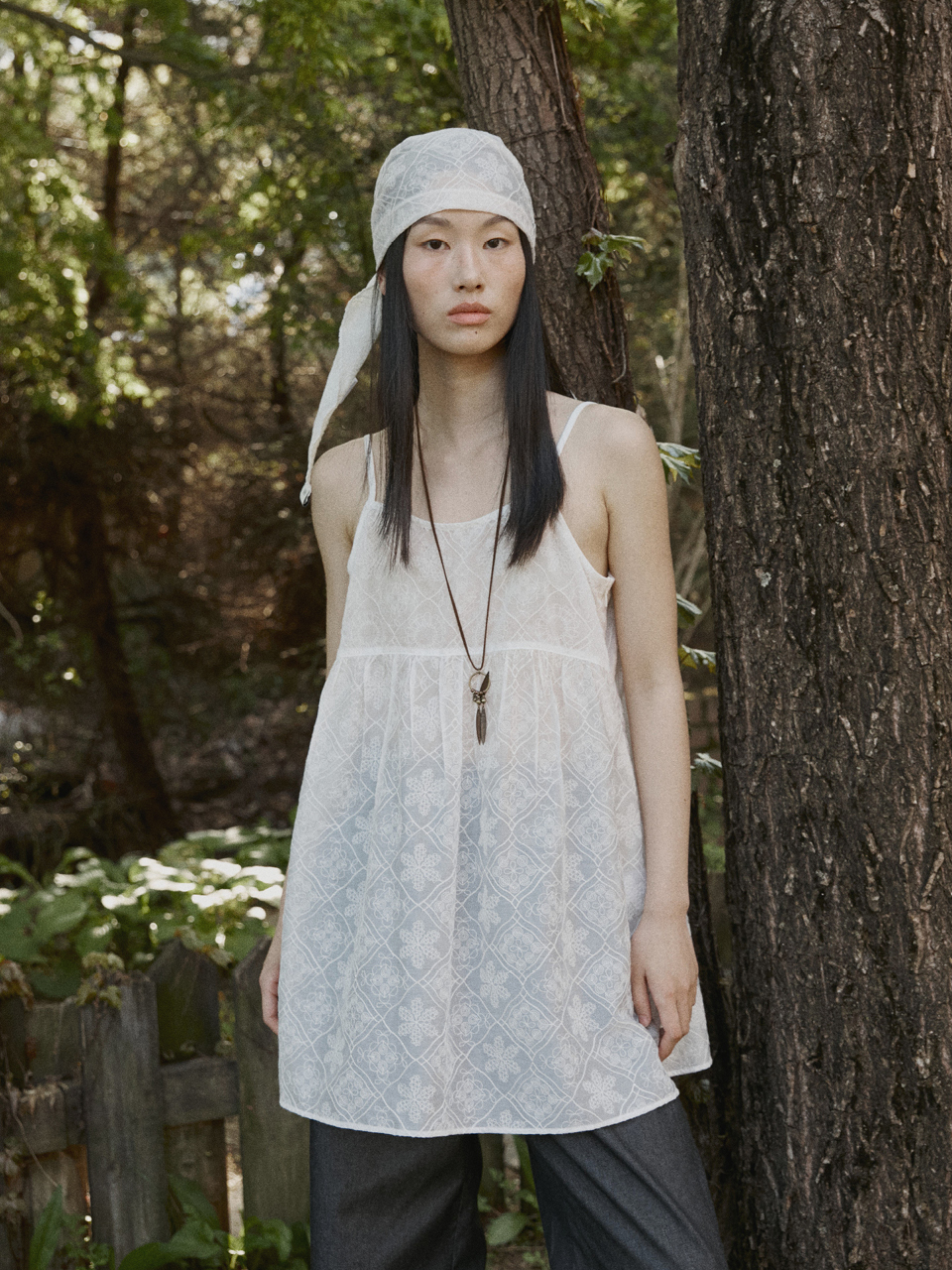 Embroidery Shirring Dress Ivory