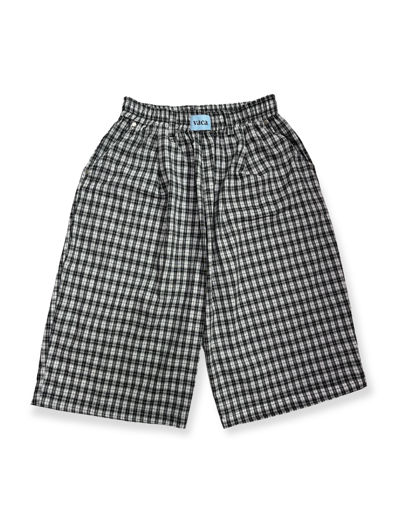 BLACK CHECK PINTUCK BURMUDA PANTS