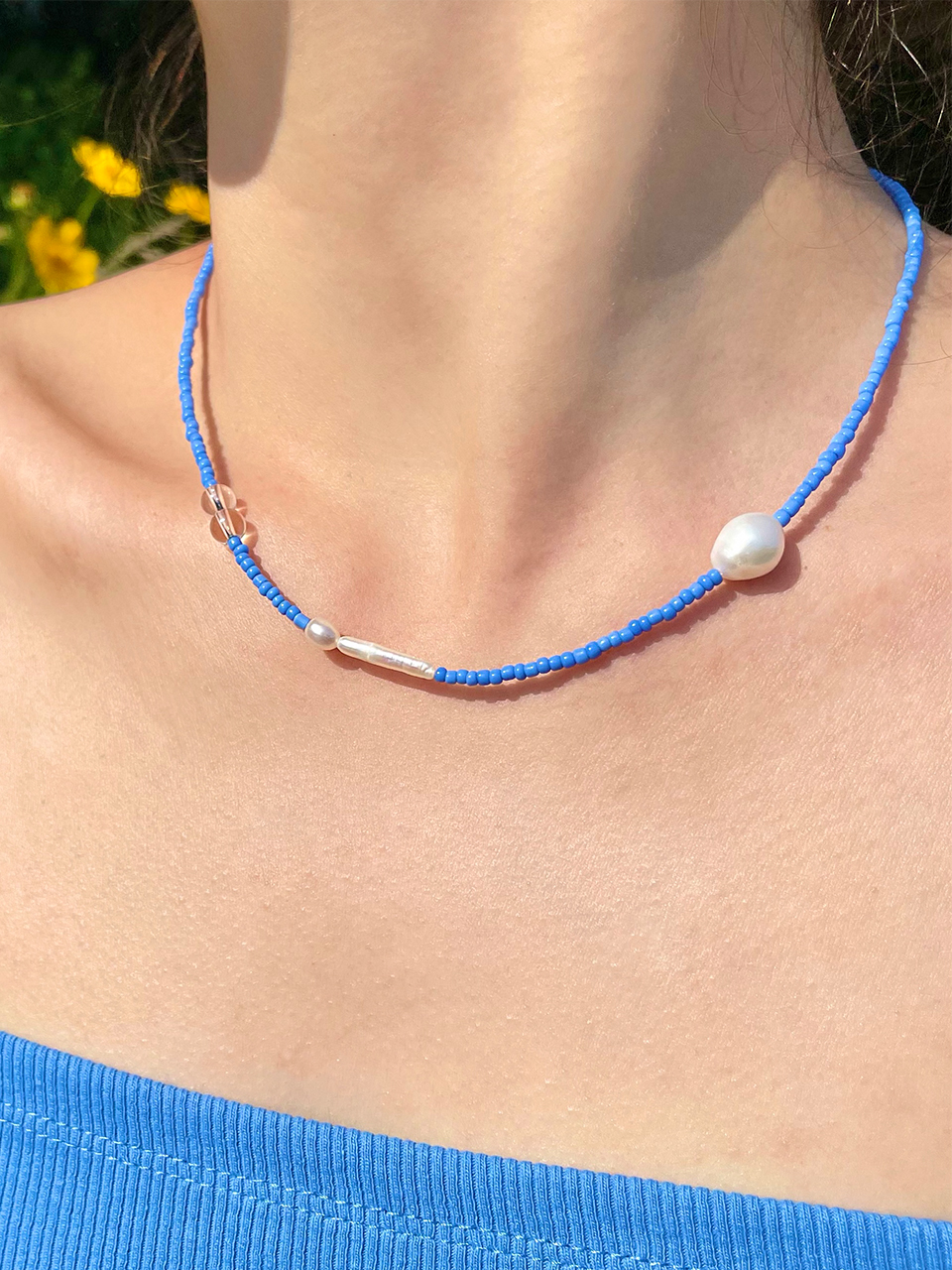 Aqua Blue Pearl Necklace