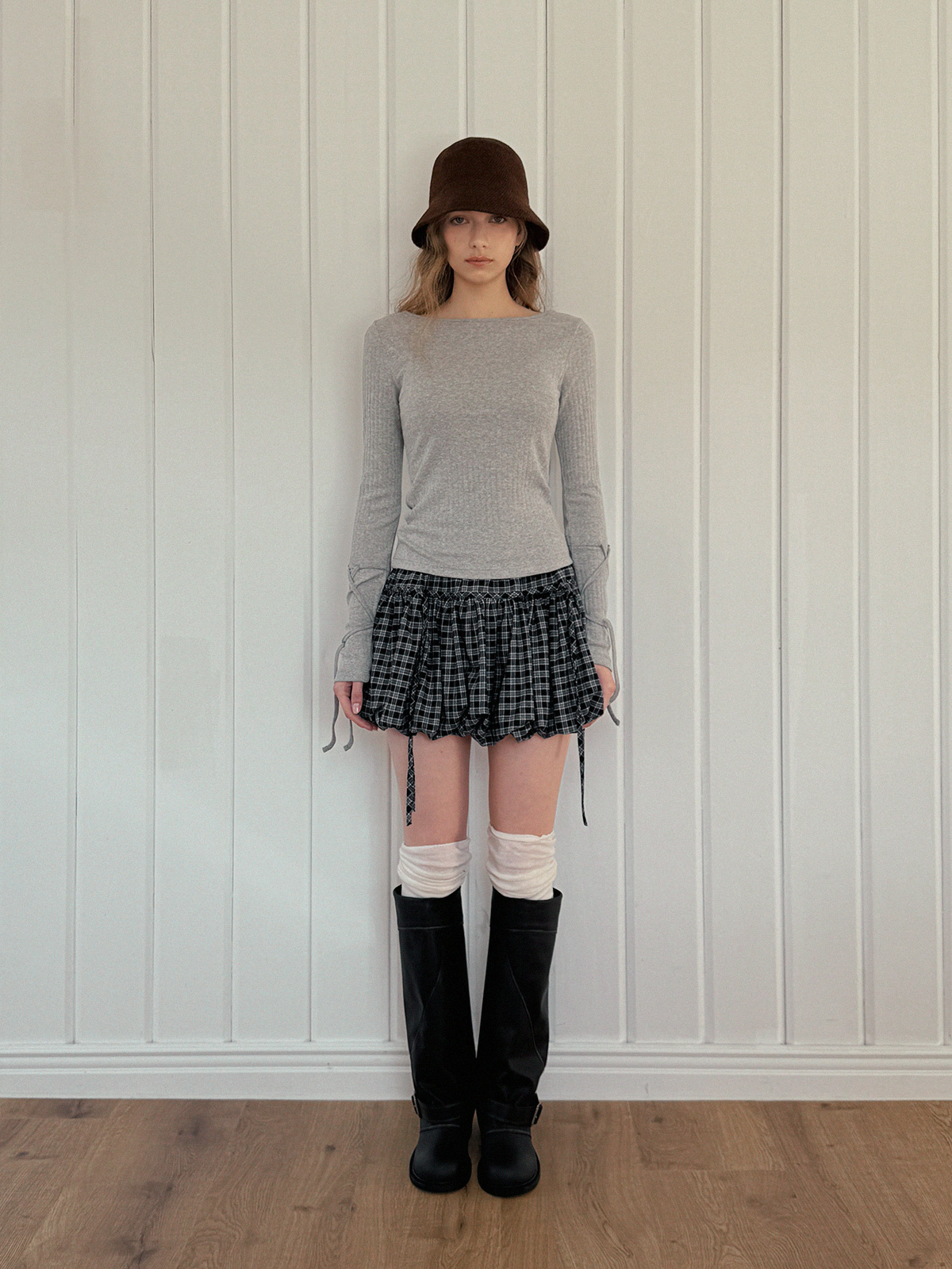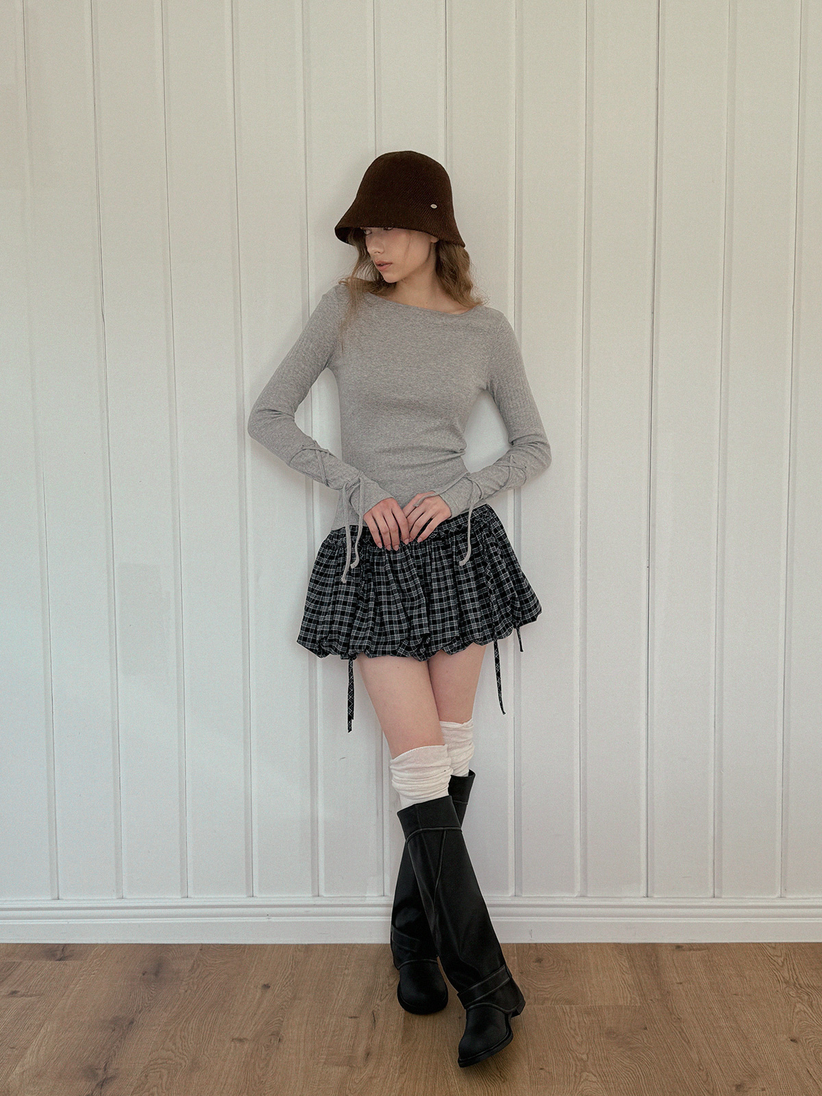 Devua Check Balloon Mini Skirt