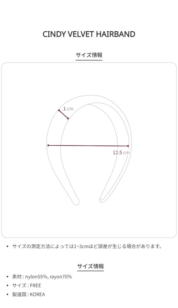 シンディ ベルベット ヘアバンド 2色