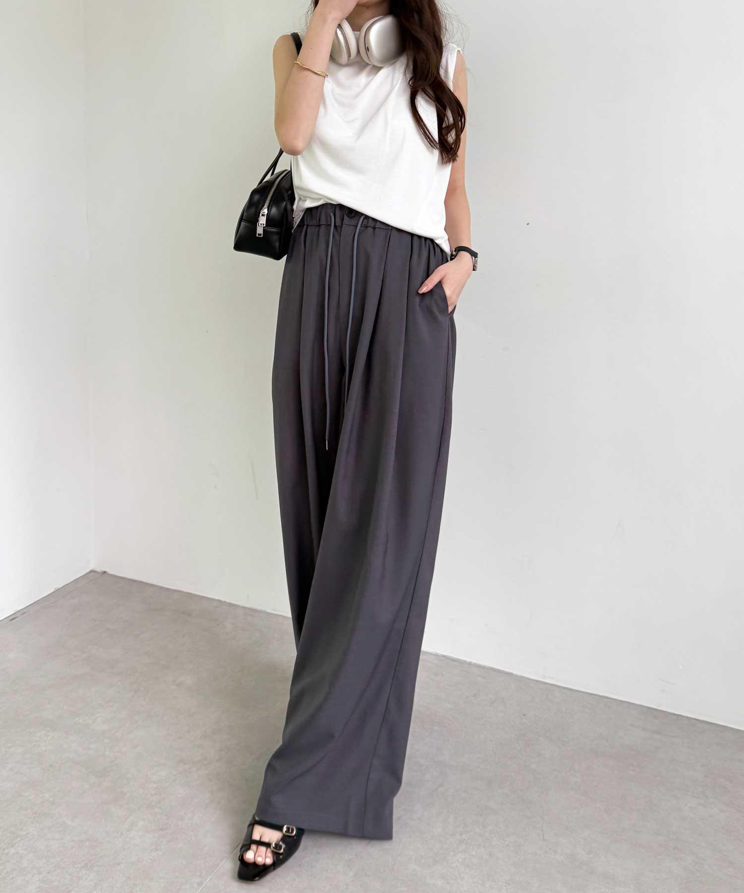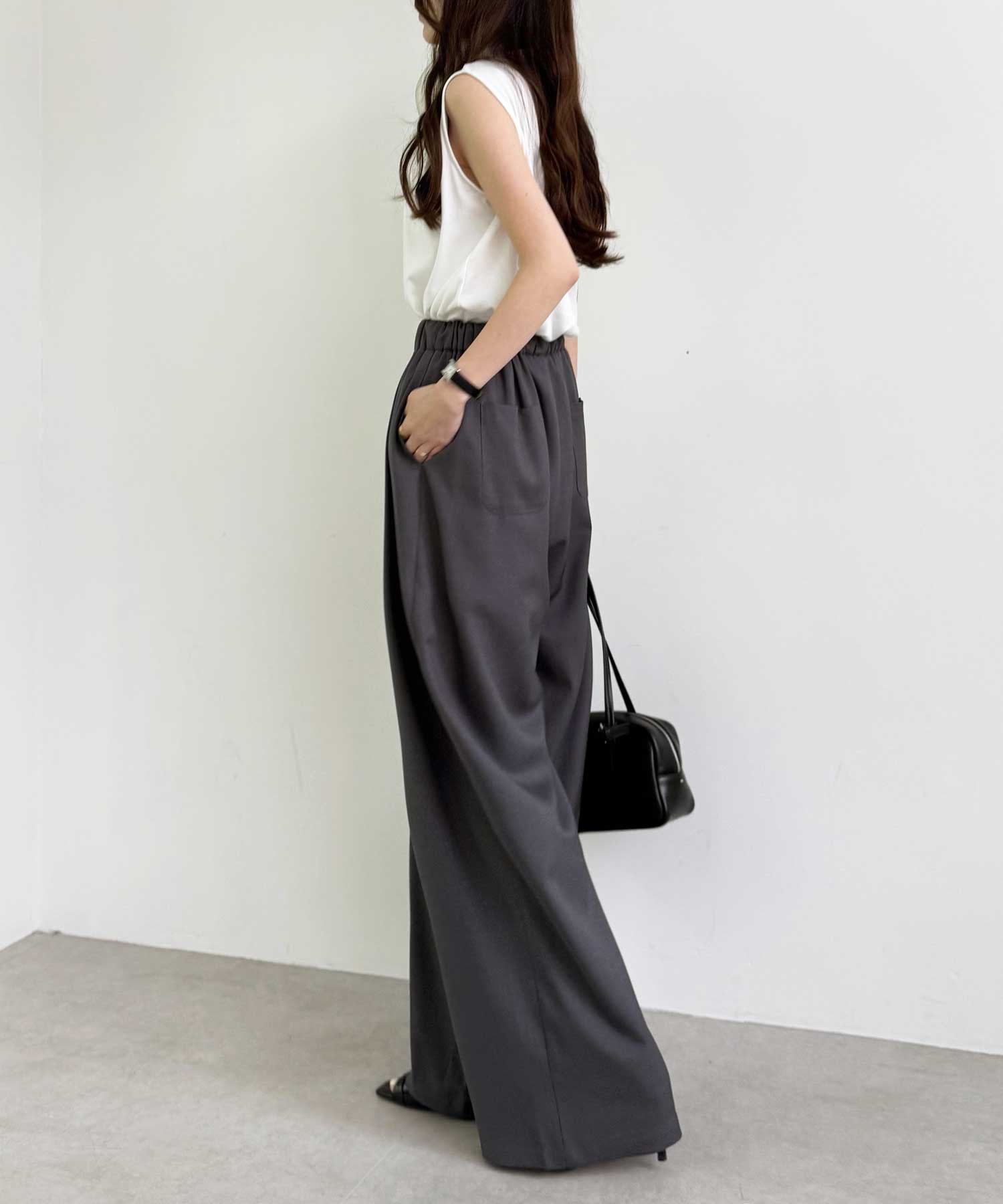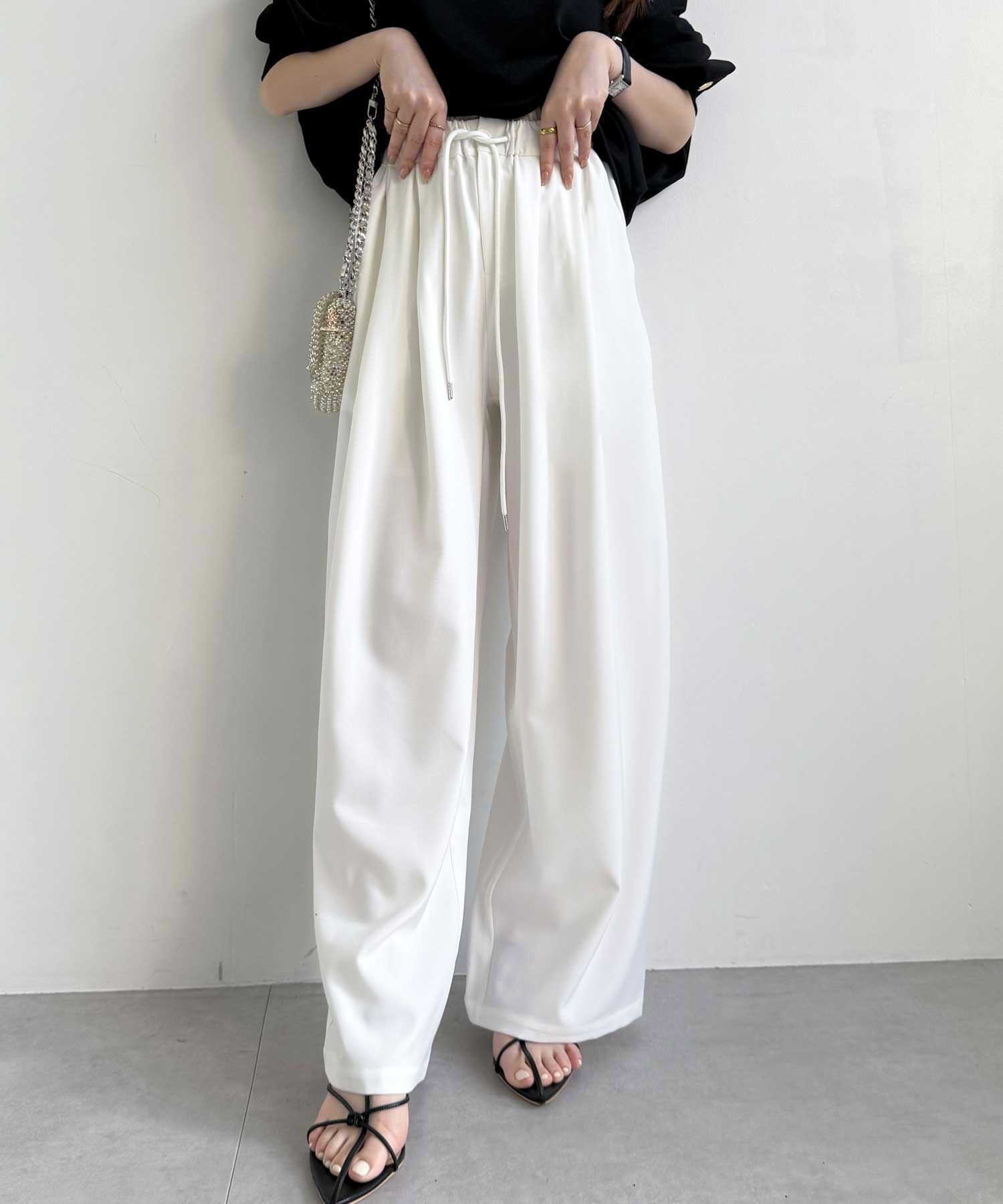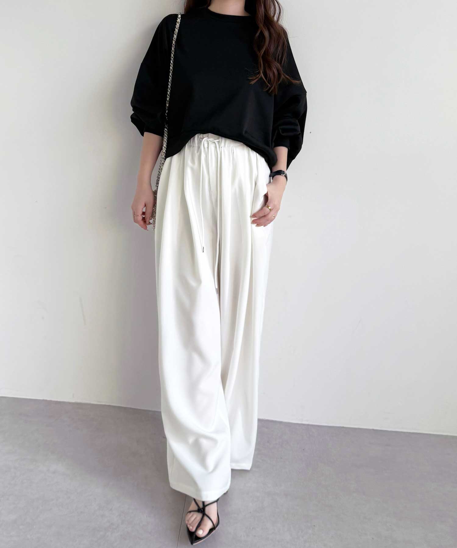 たっぷりドレープが魅力的なリラックスワイドパンツ