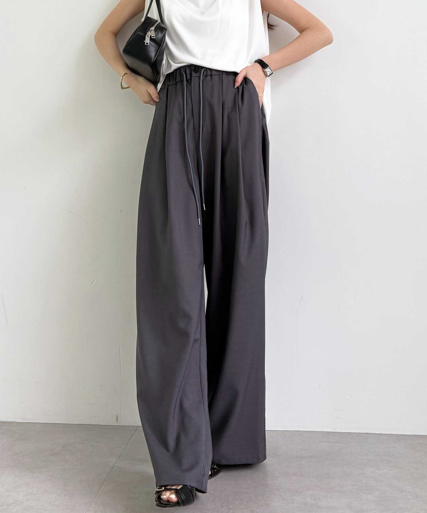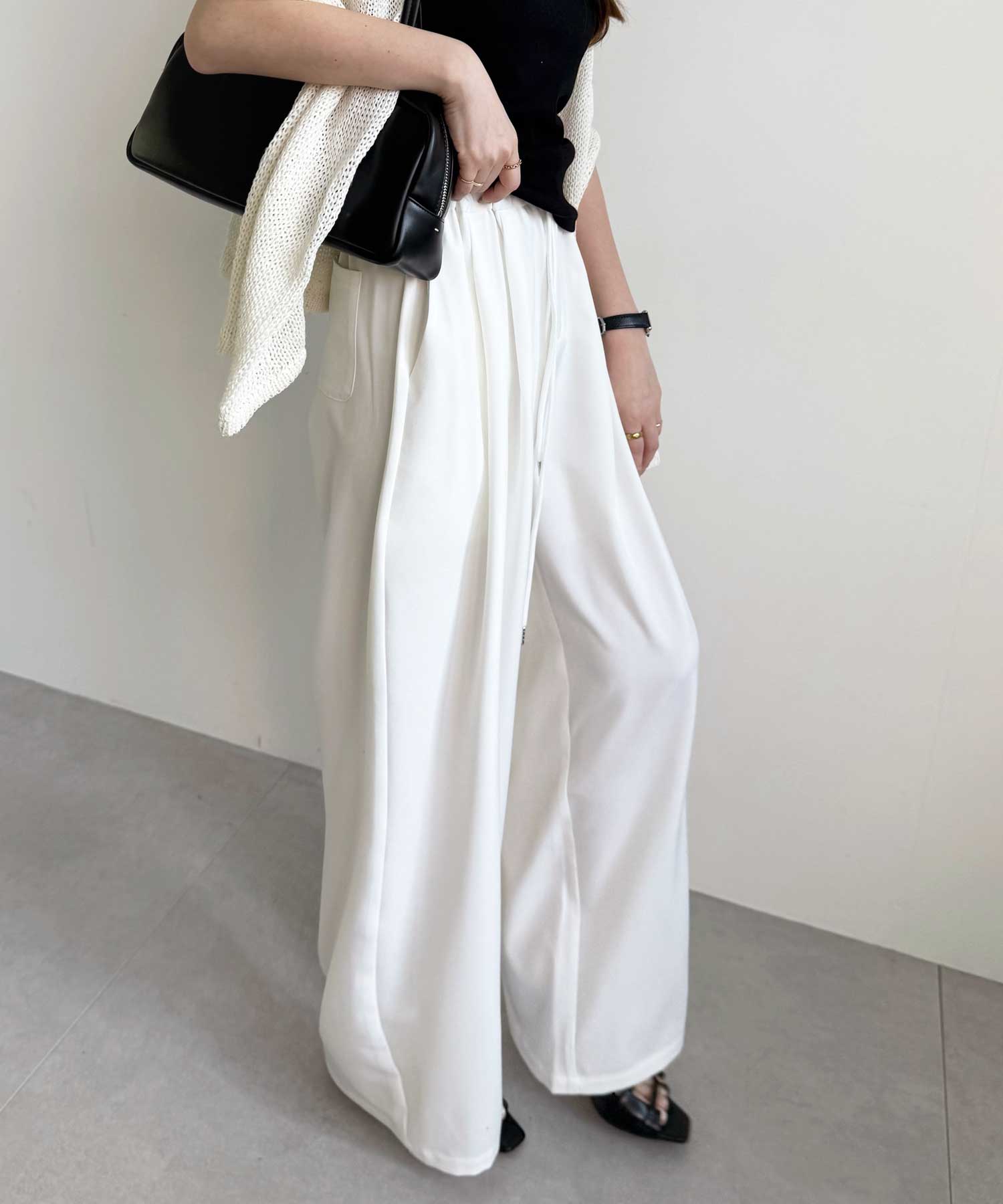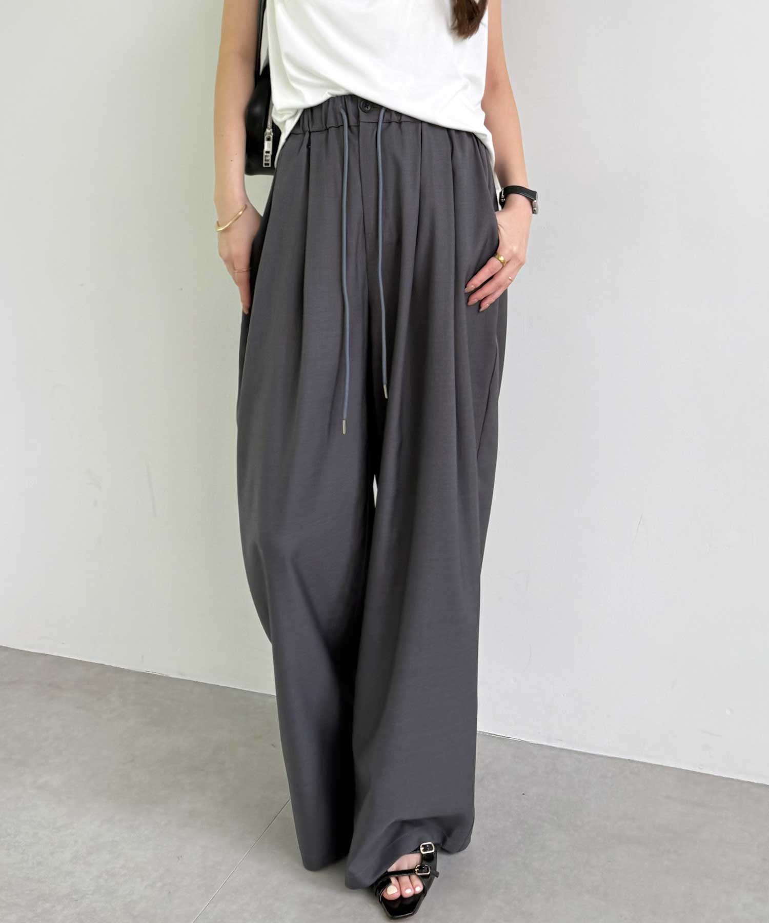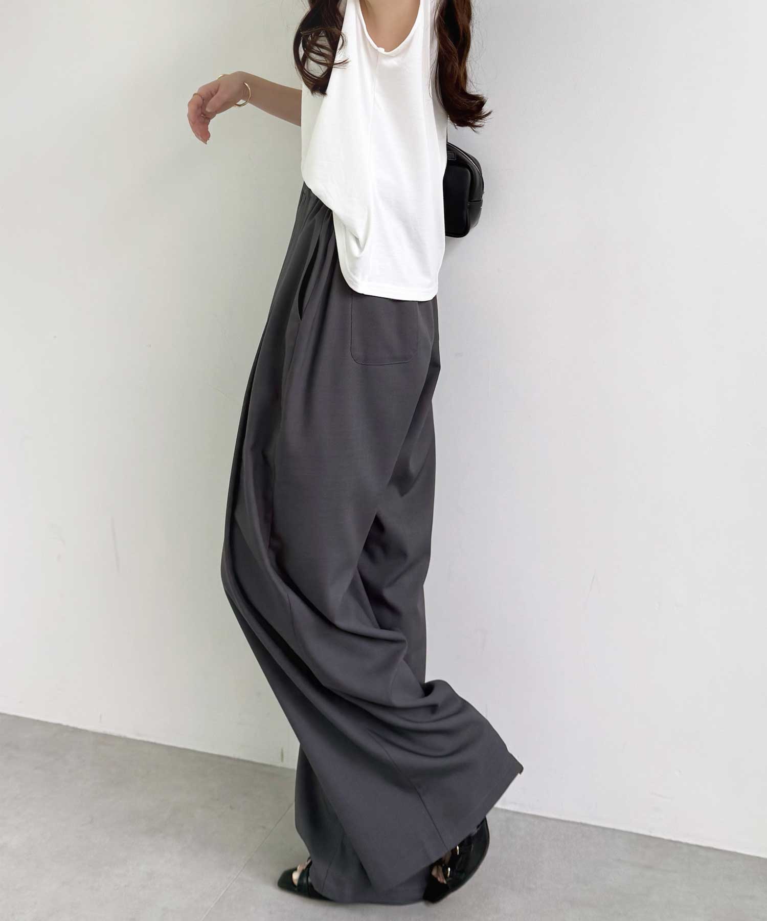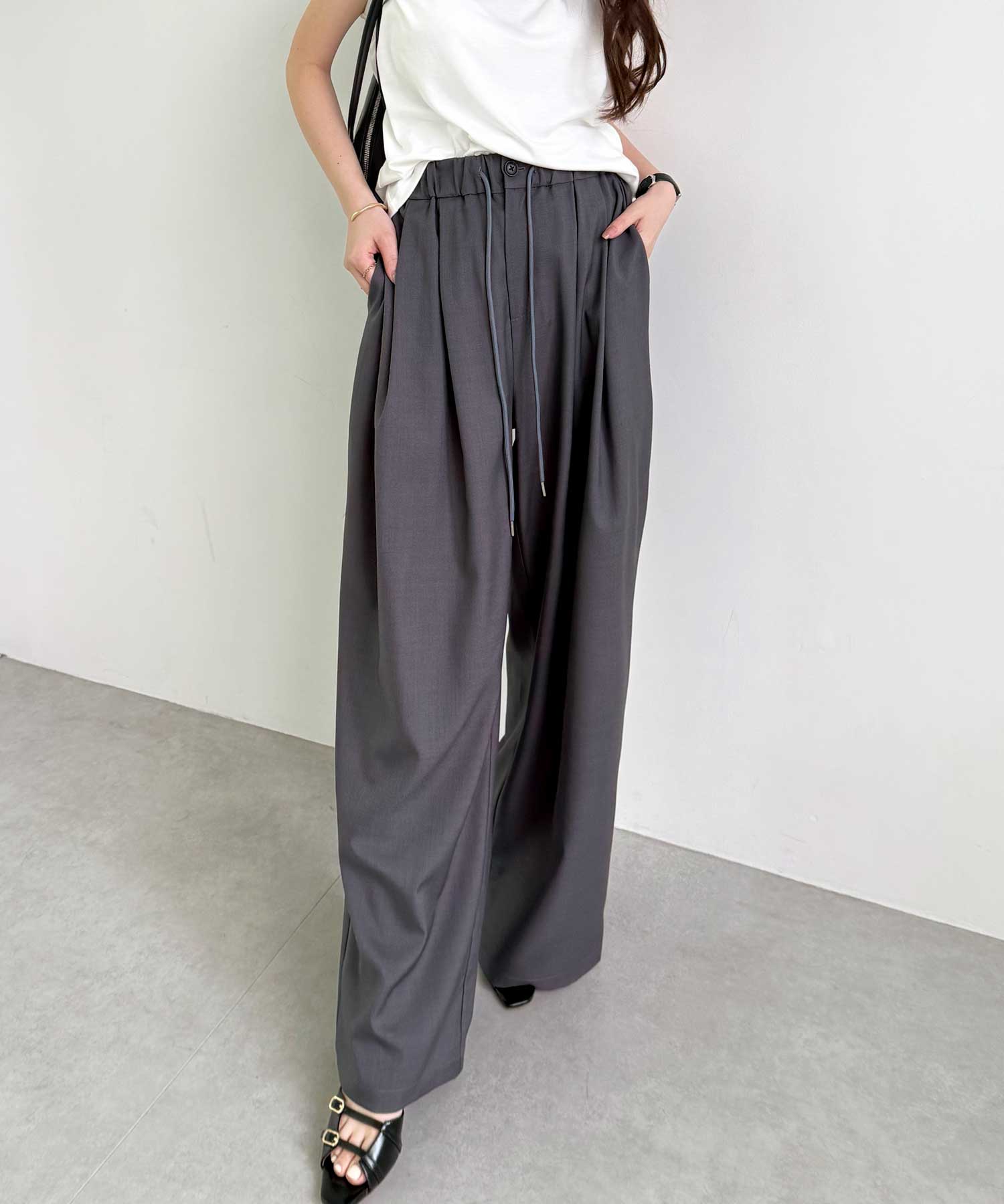 たっぷりドレープが魅力的なリラックスワイドパンツ