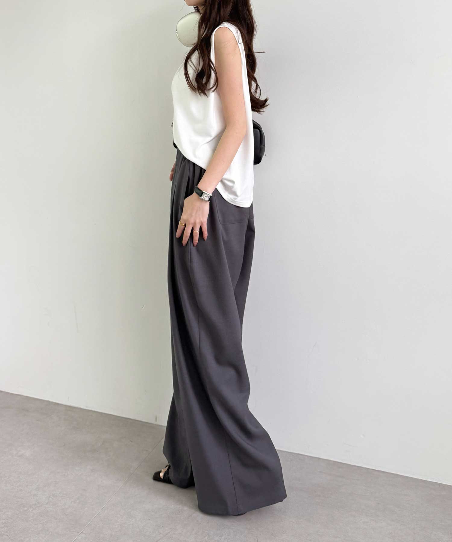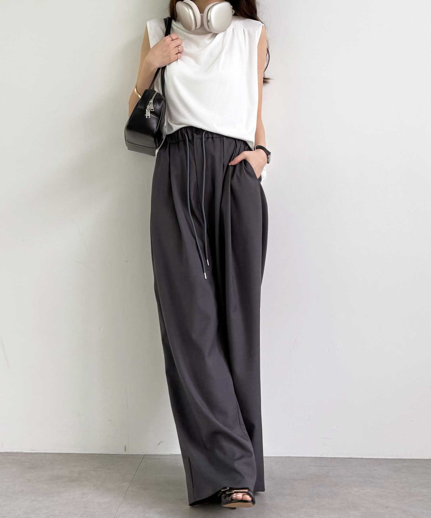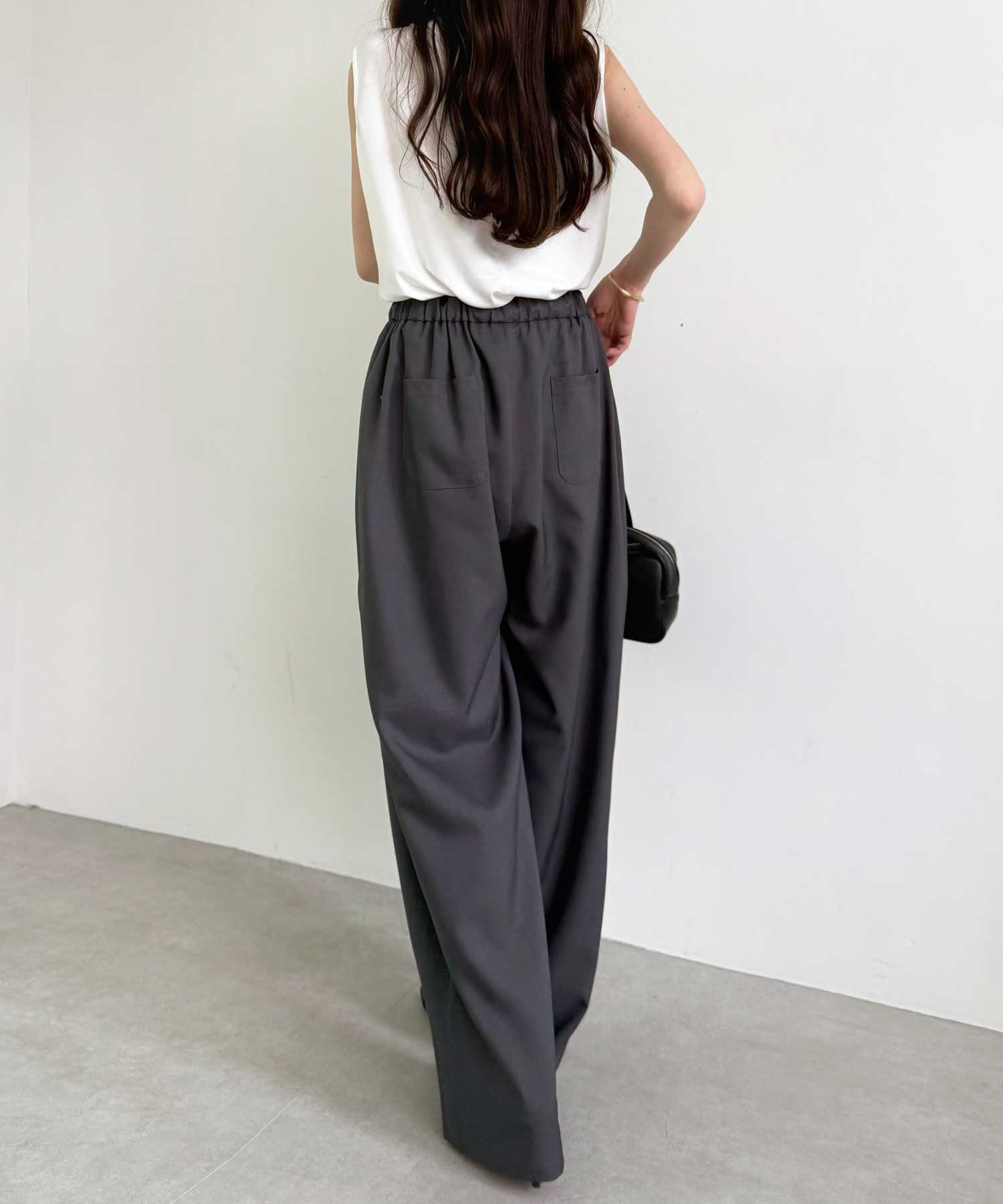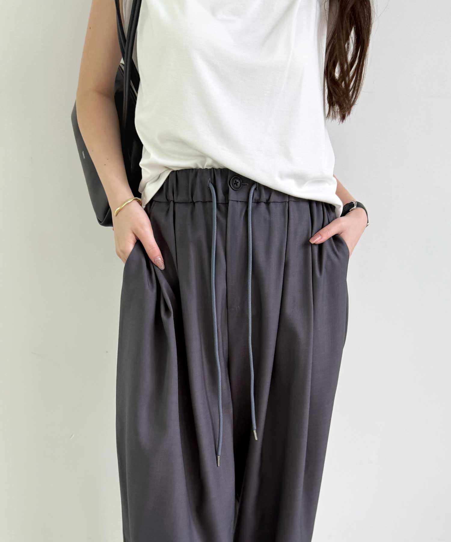 たっぷりドレープが魅力的なリラックスワイドパンツ
