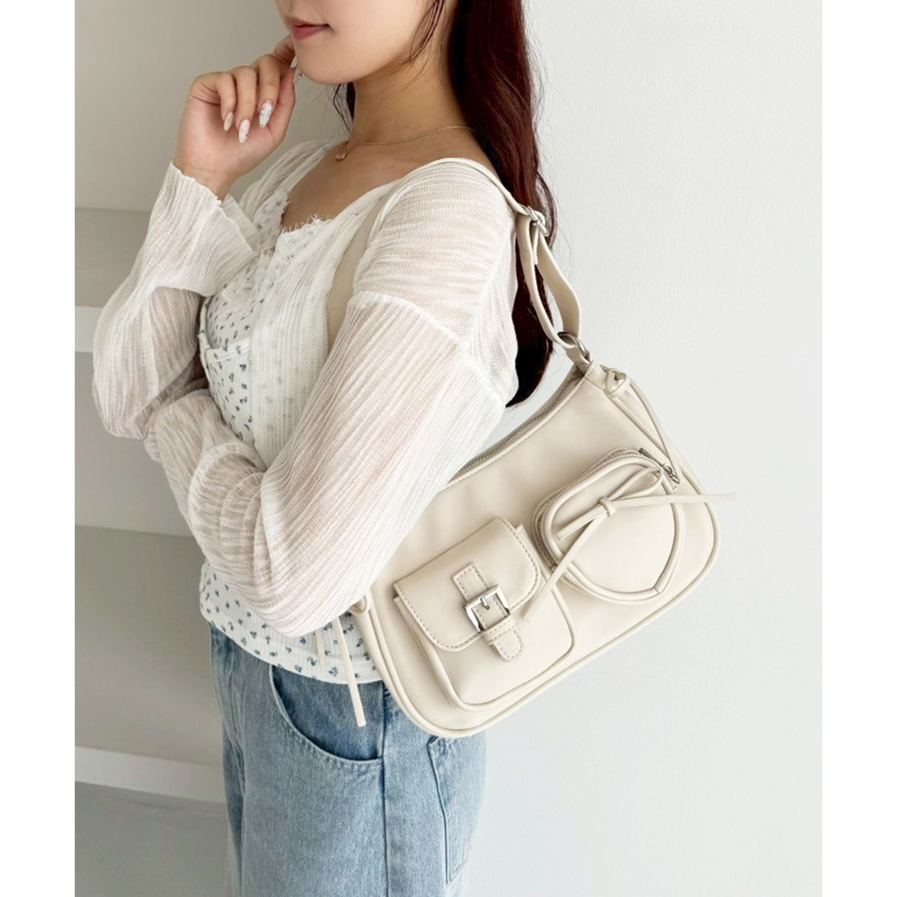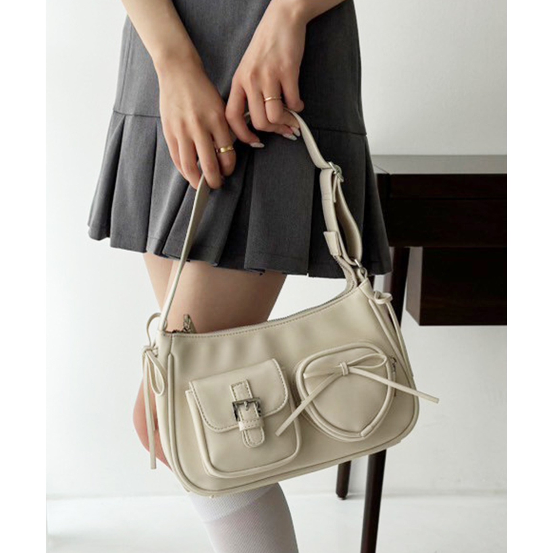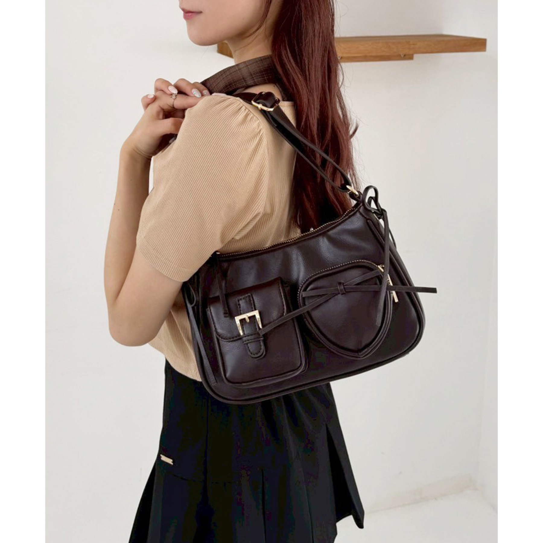 ハートポケット付きホーボーバッグ