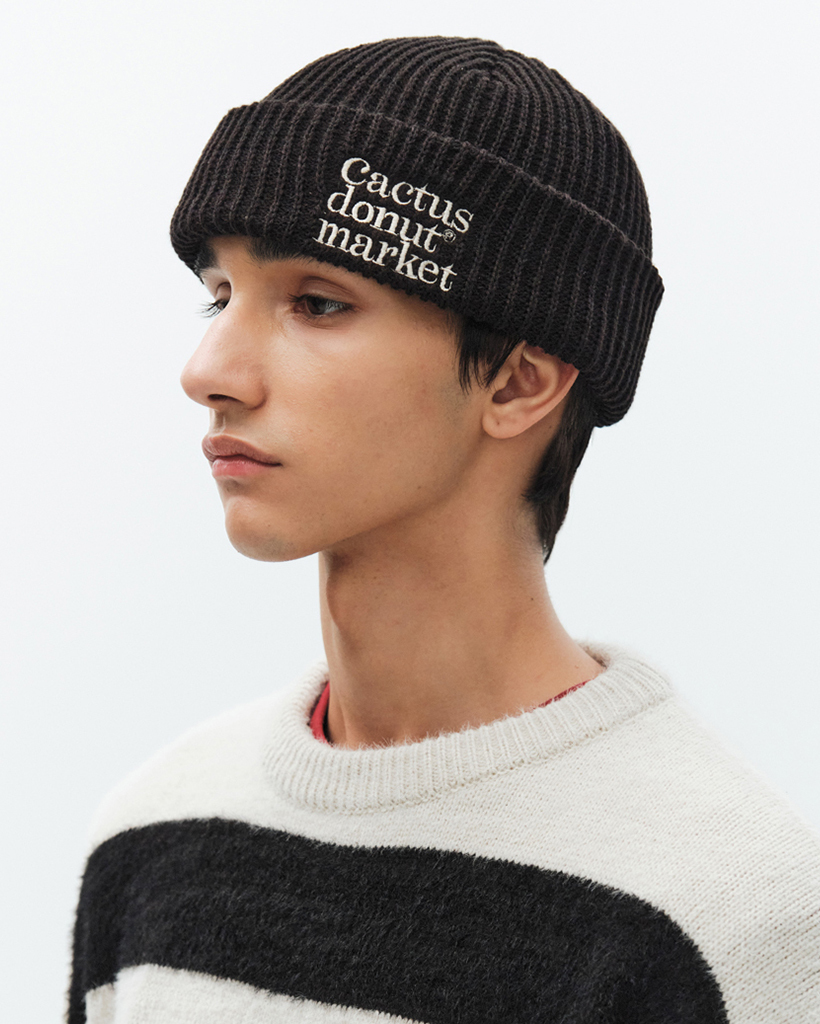 Lettering Fold Knit Beanie - Black