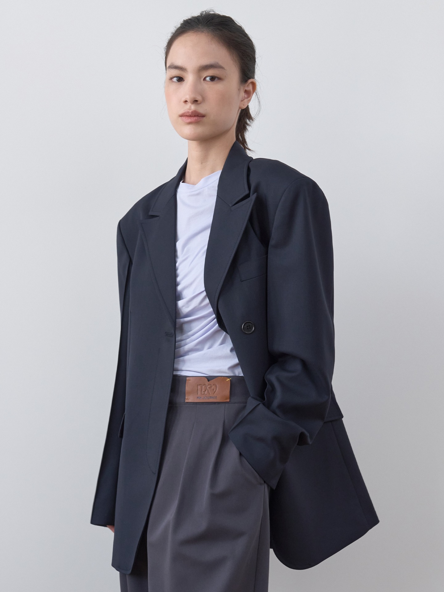 BOYFRIEND DOUBLE BUTTON JACKET_NAVY