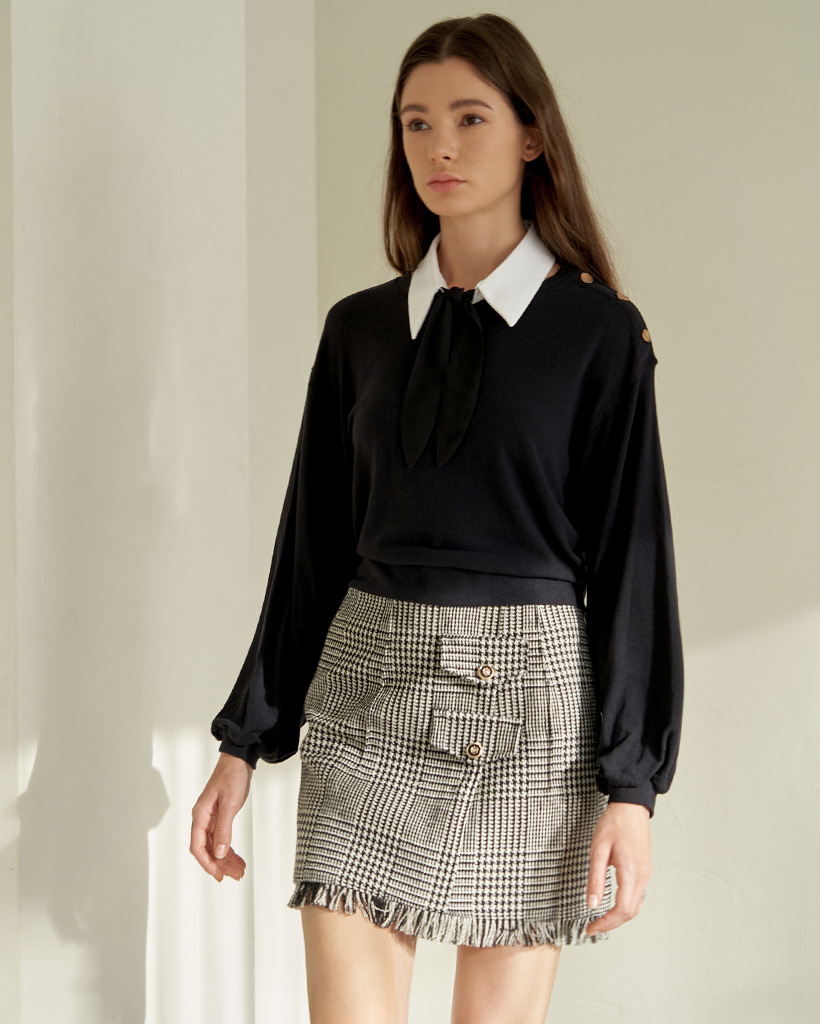 Black Back Ribbon Knit Blouse