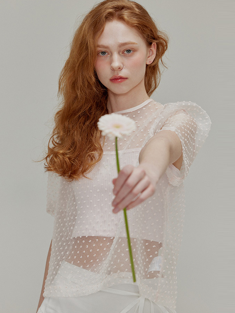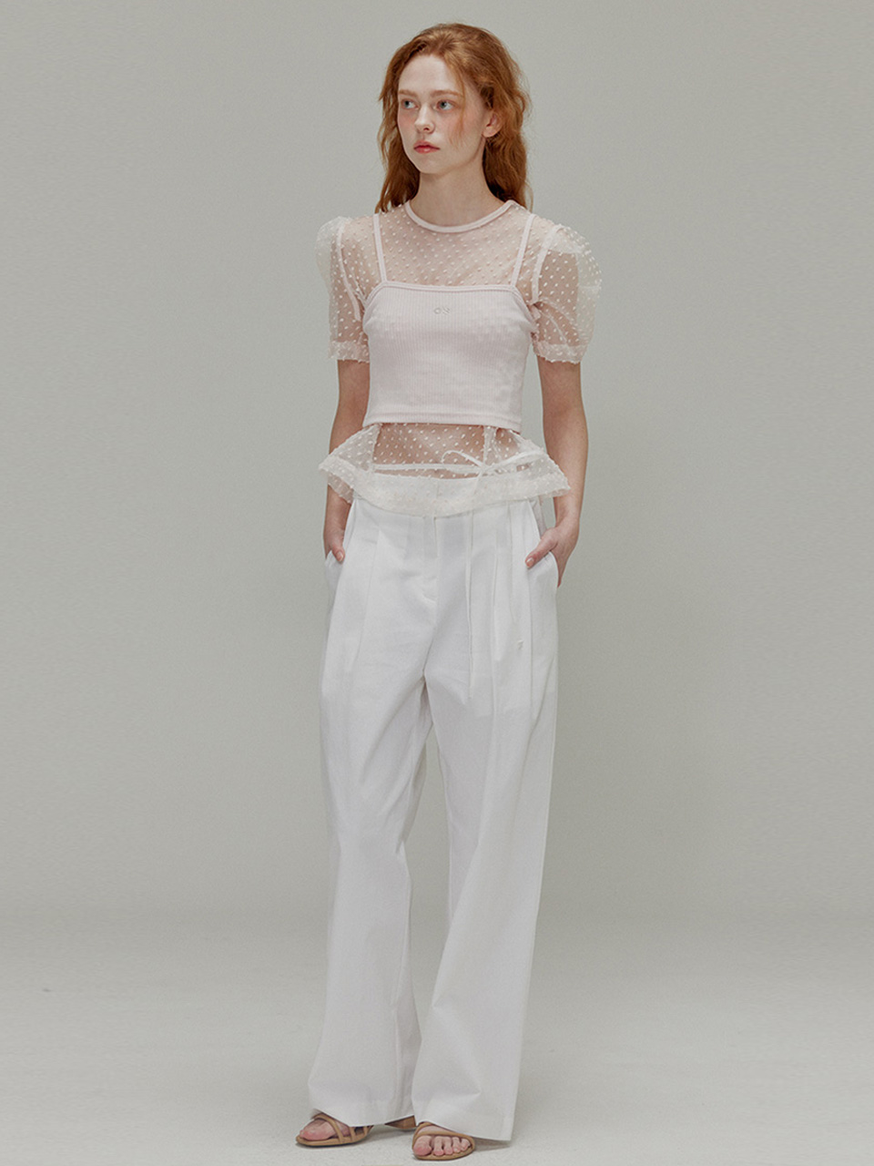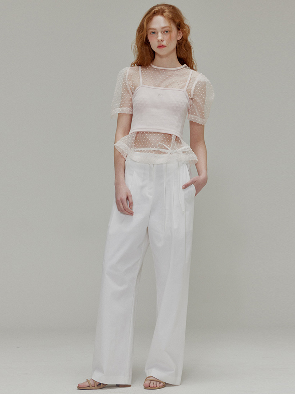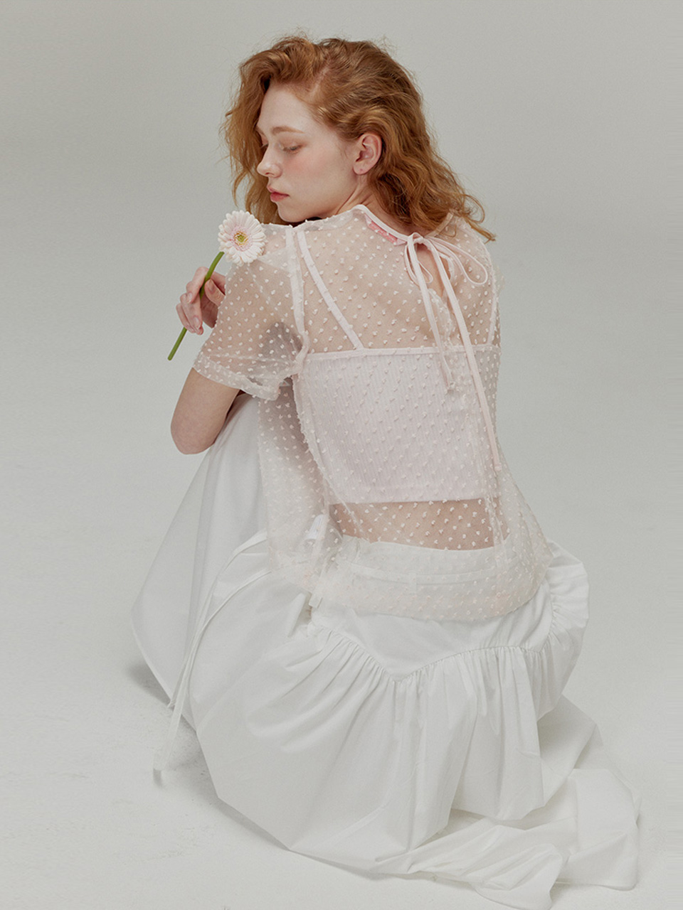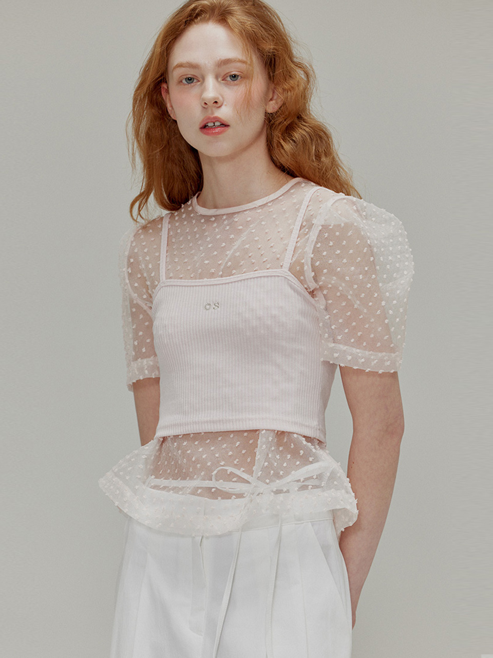 Popcorn see-through ribbon top set_Fuzzy pink
