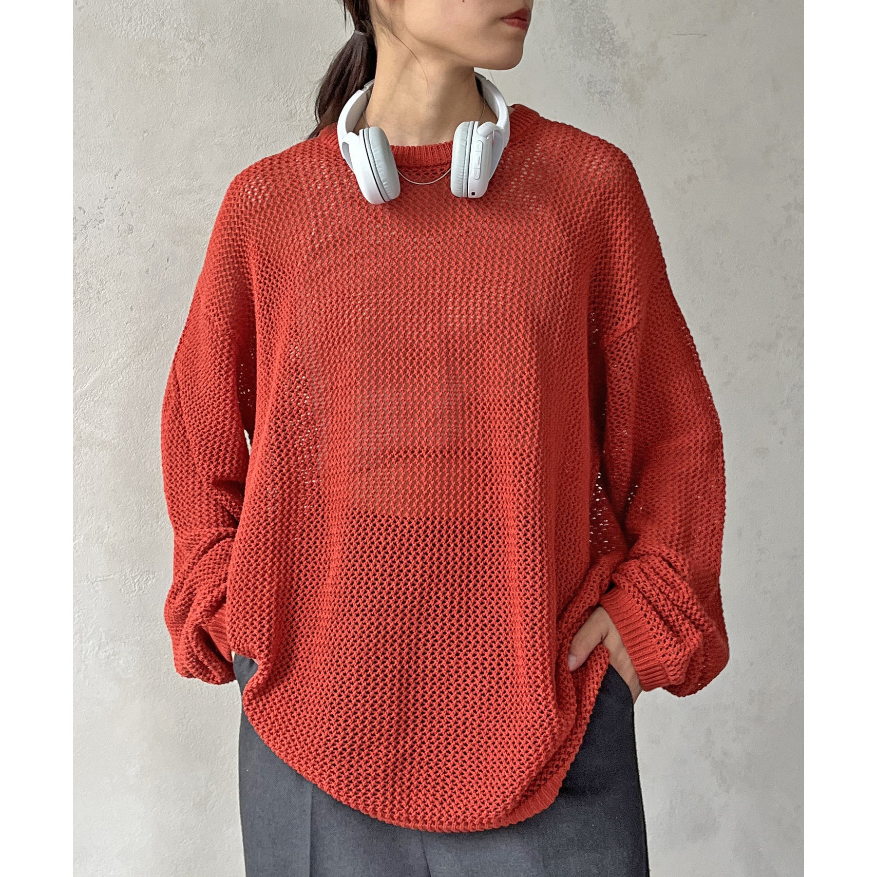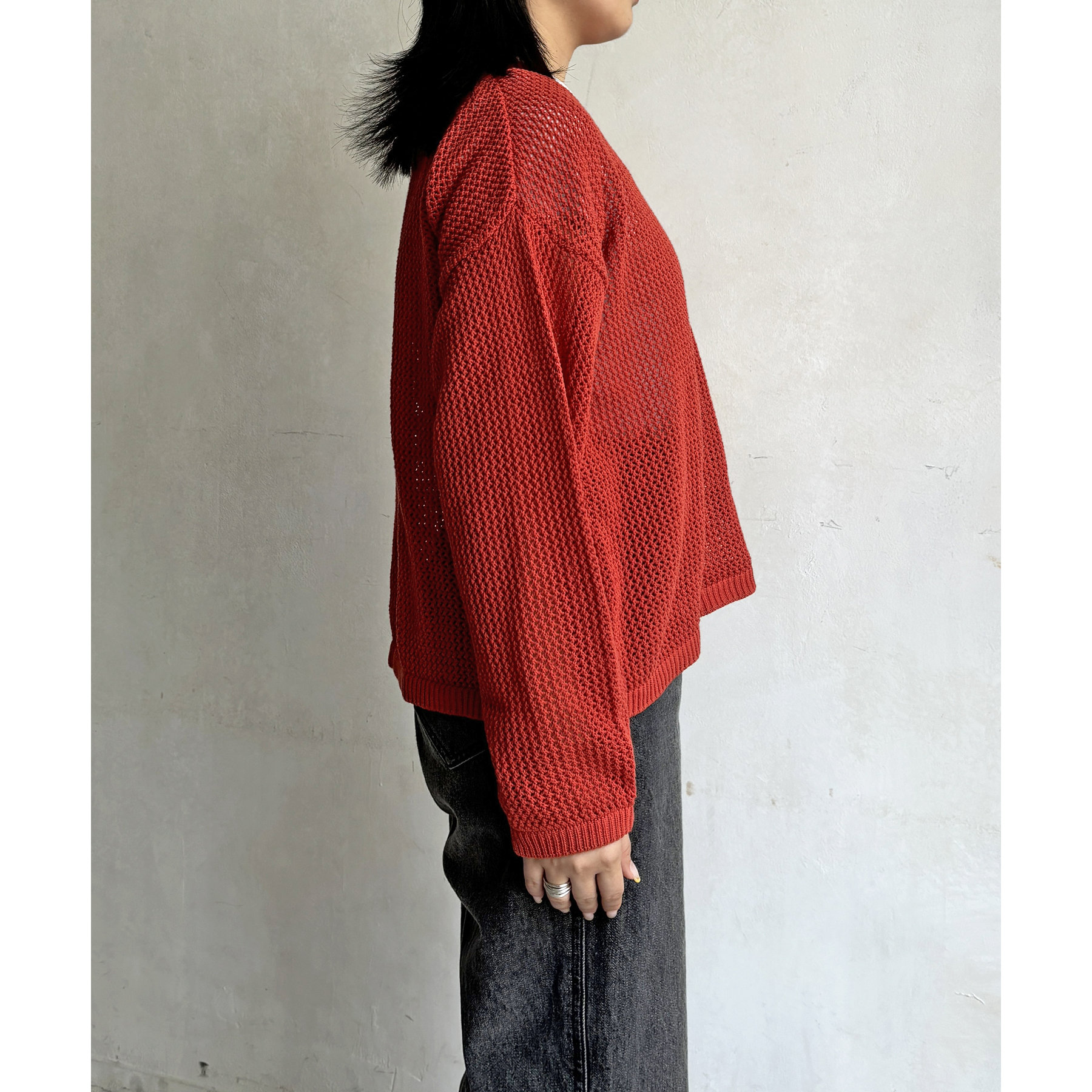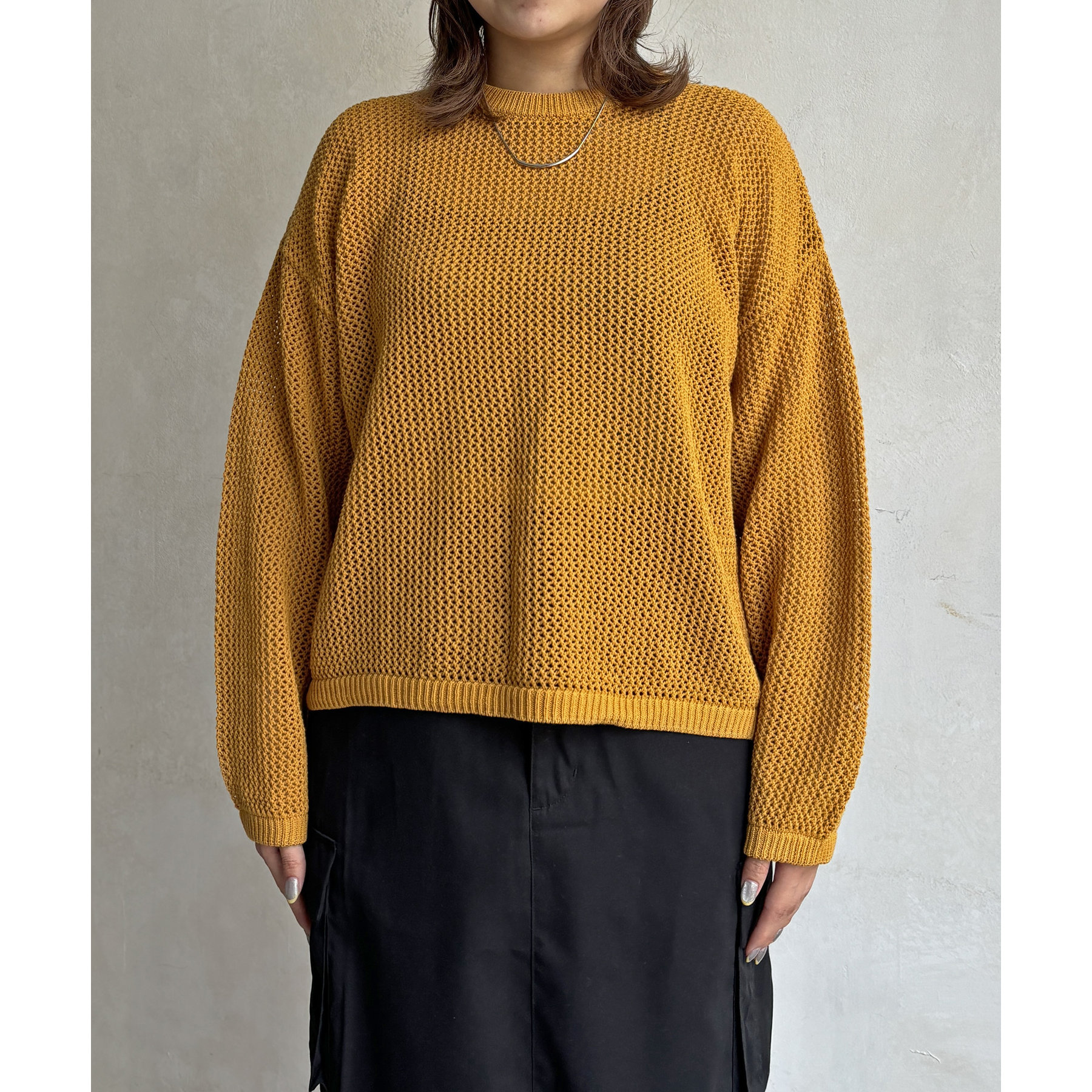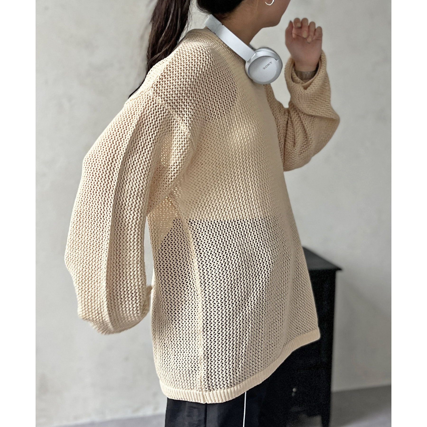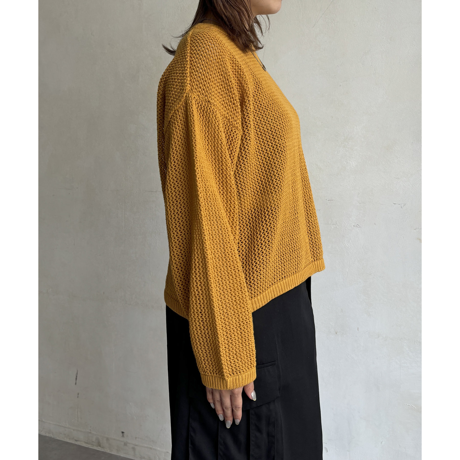 ・メッシュ編みで重たい印象にならず、インナー次第でロングシーズン着用可能