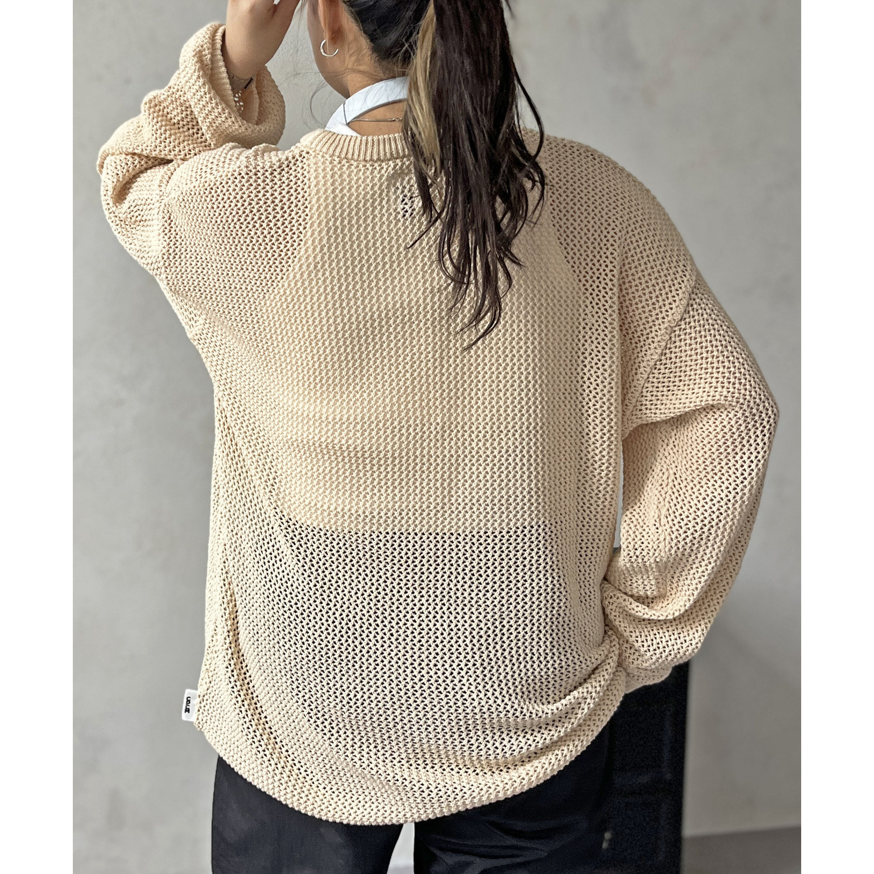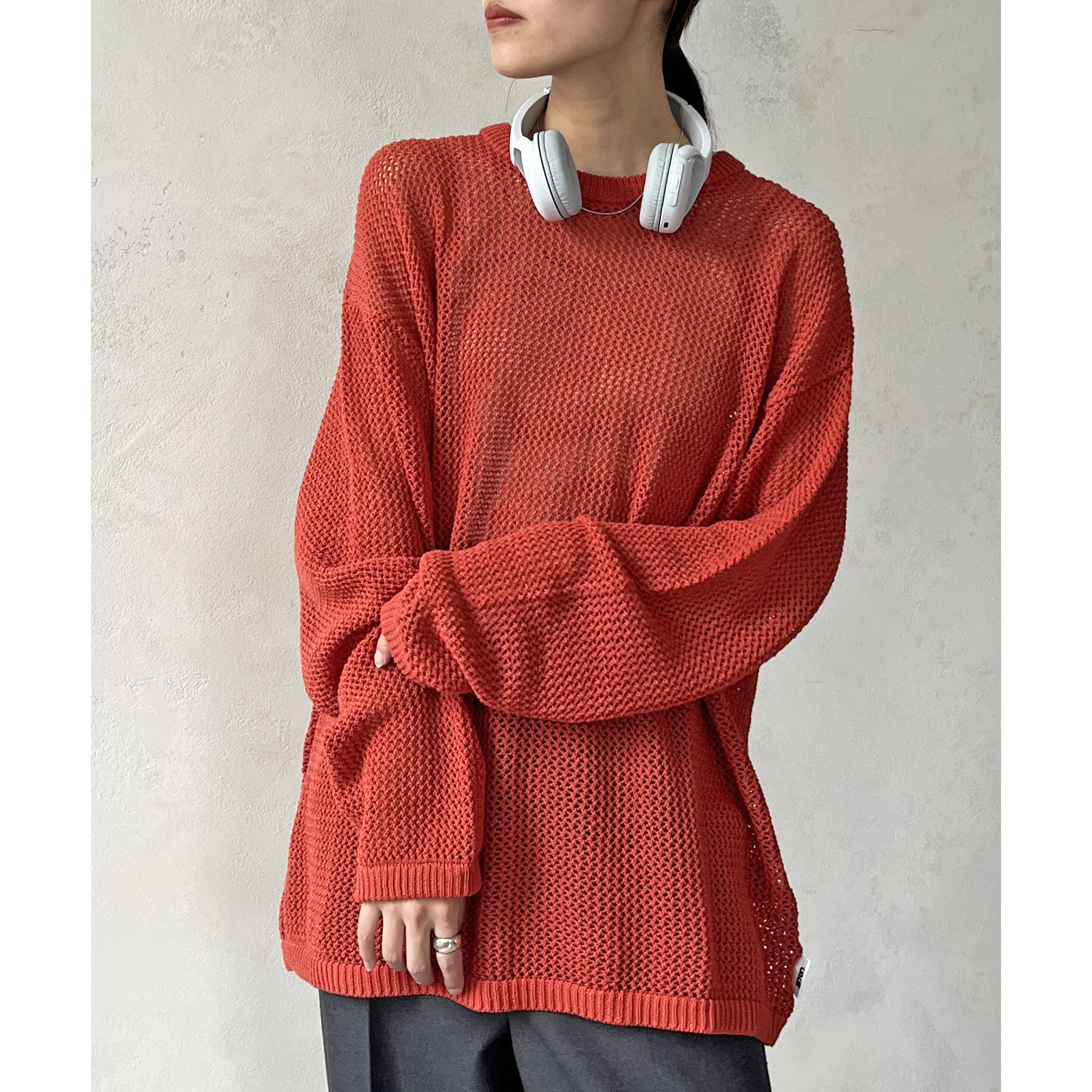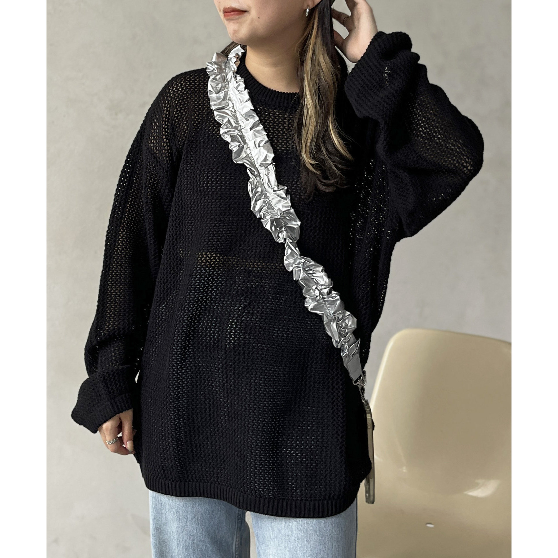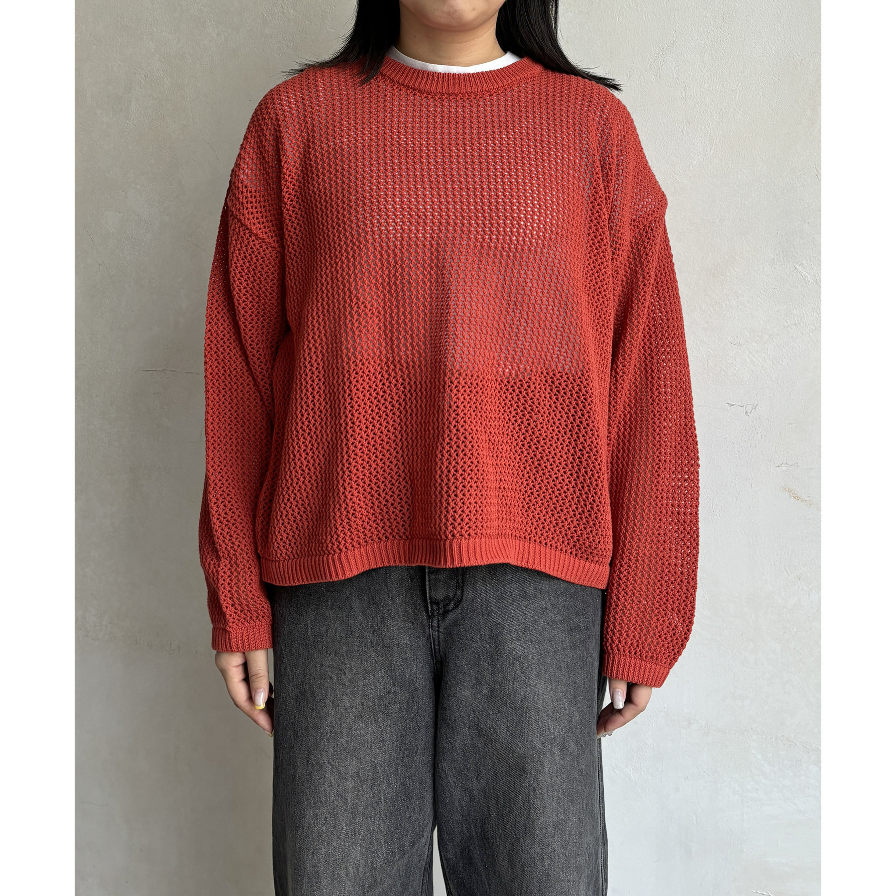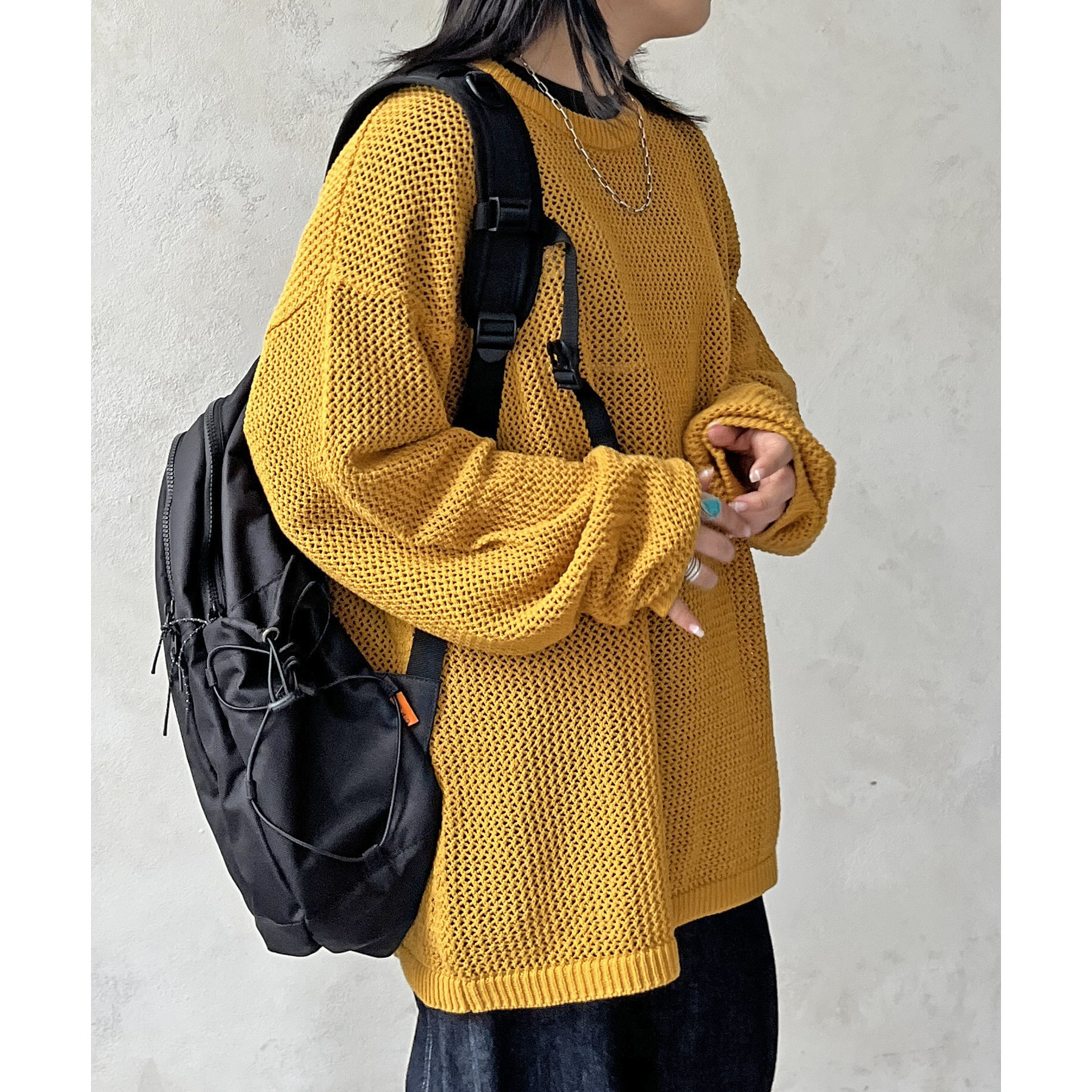 ・メッシュ編みで重たい印象にならず、インナー次第でロングシーズン着用可能