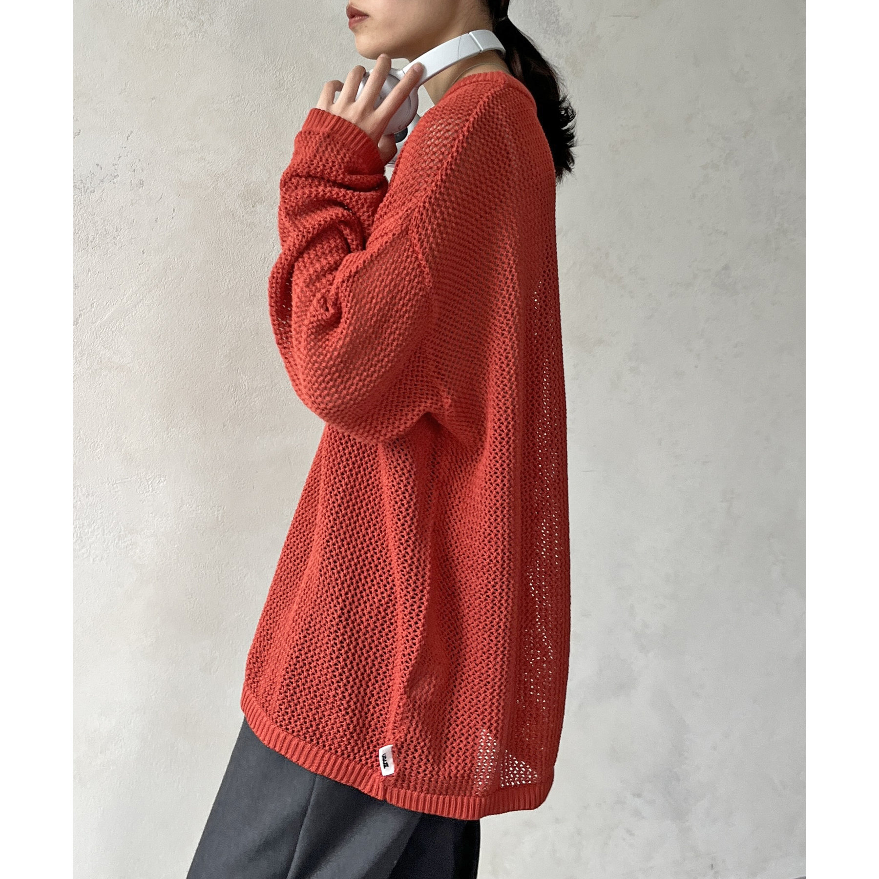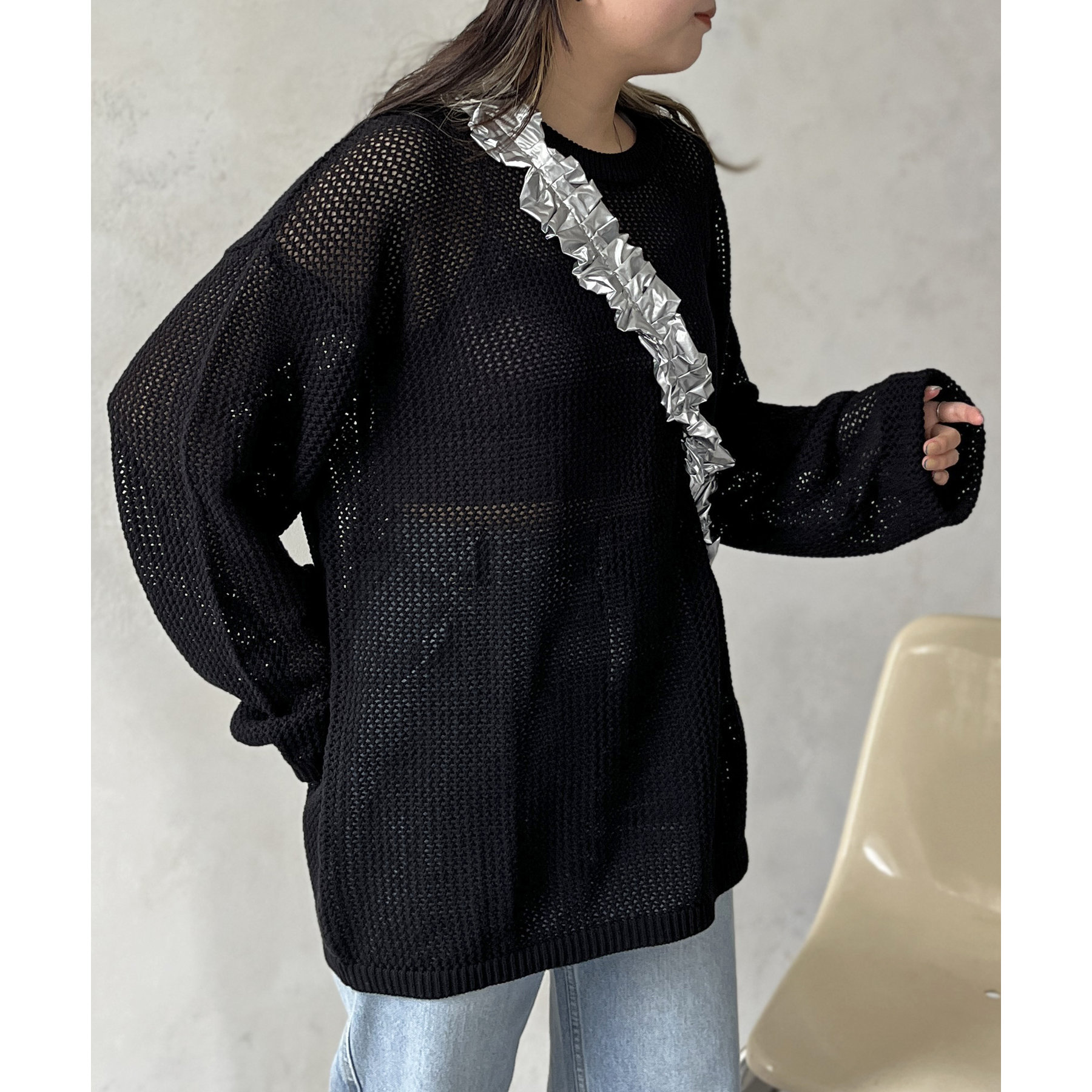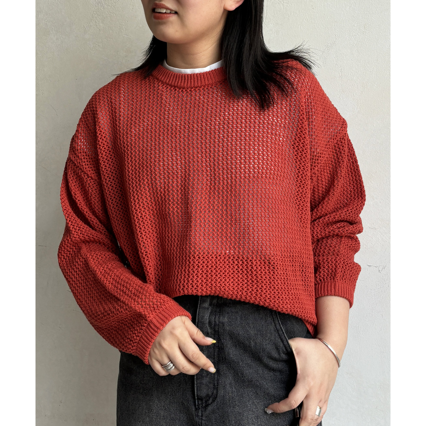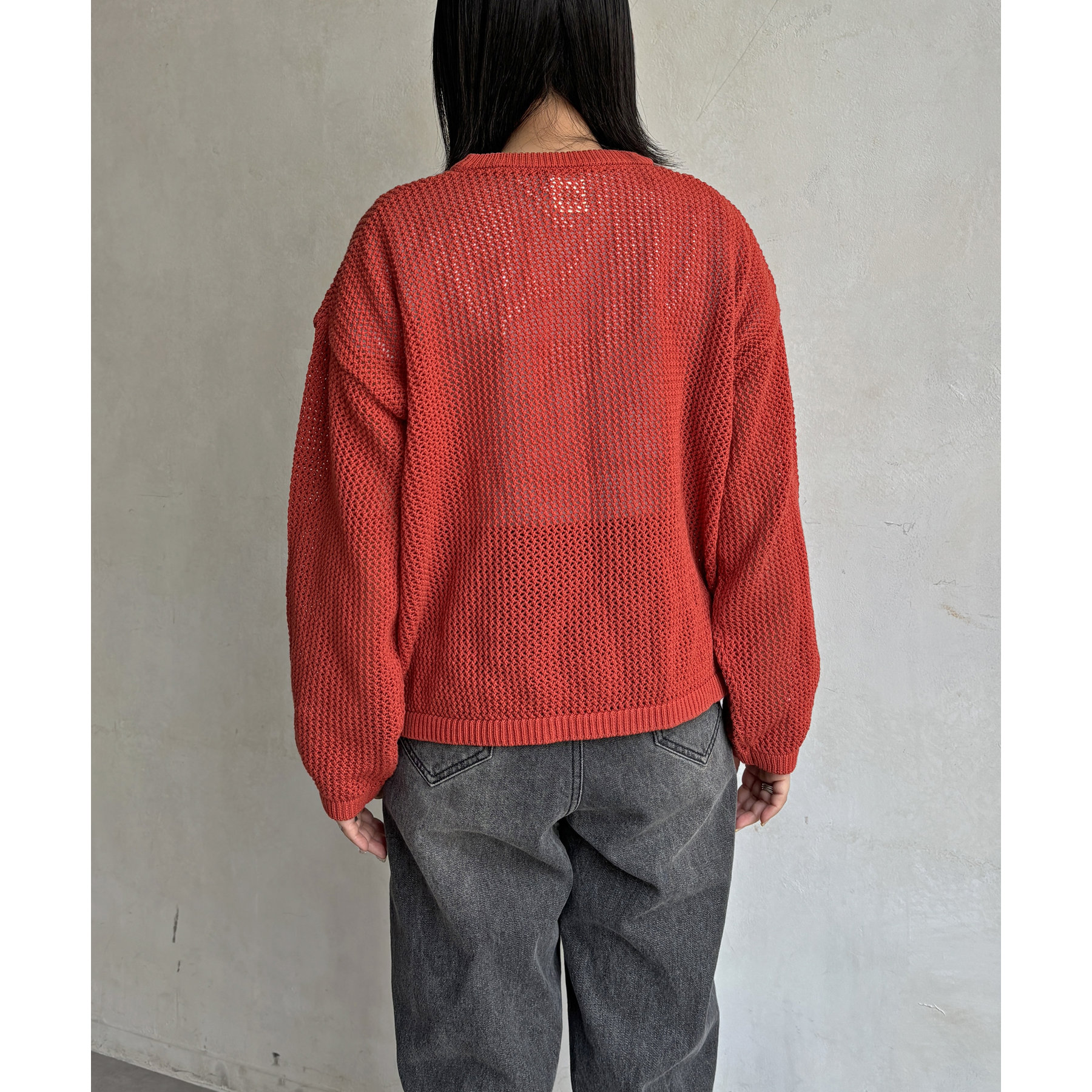 ・メッシュ編みで重たい印象にならず、インナー次第でロングシーズン着用可能