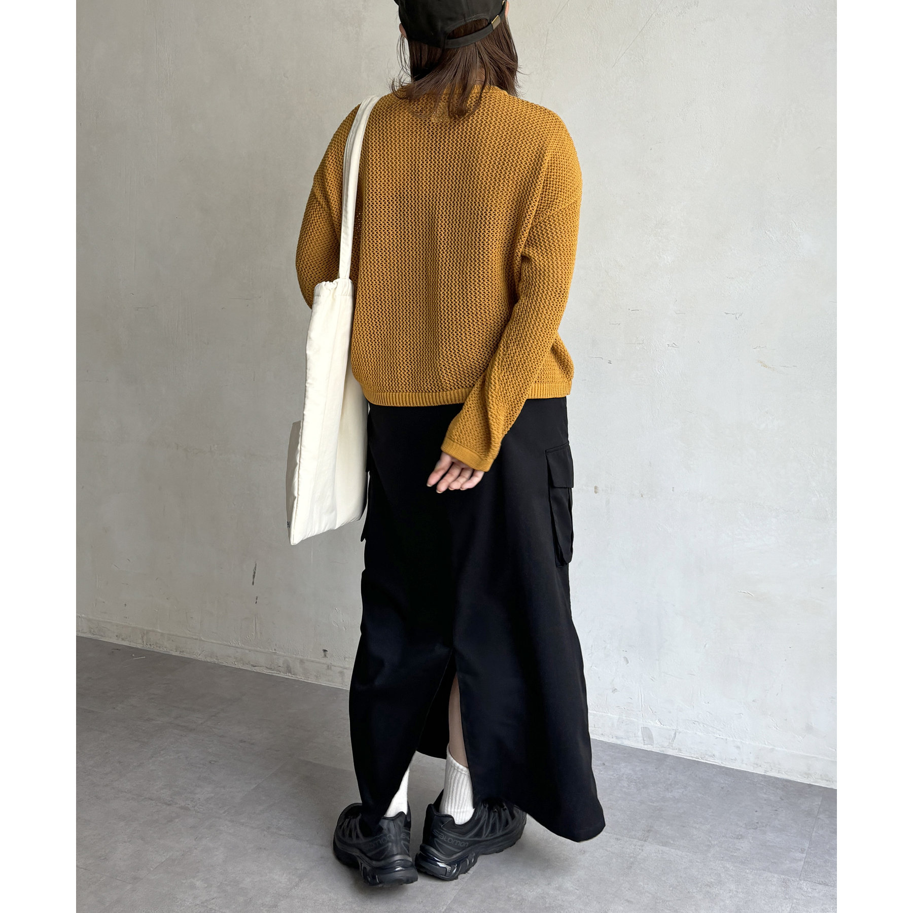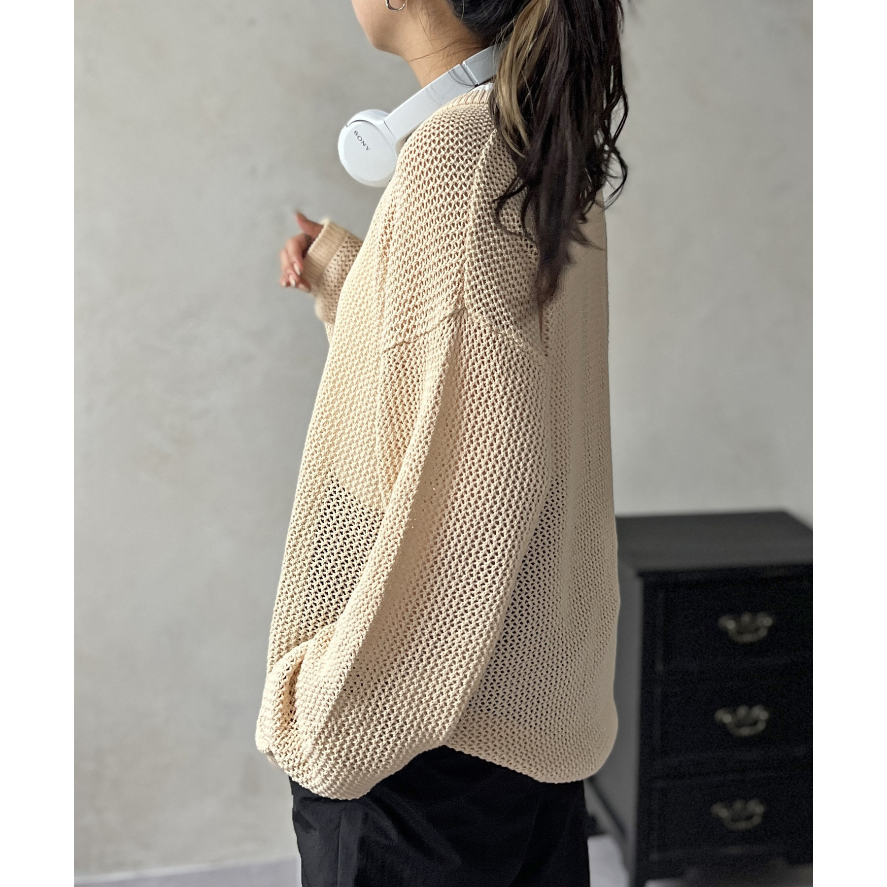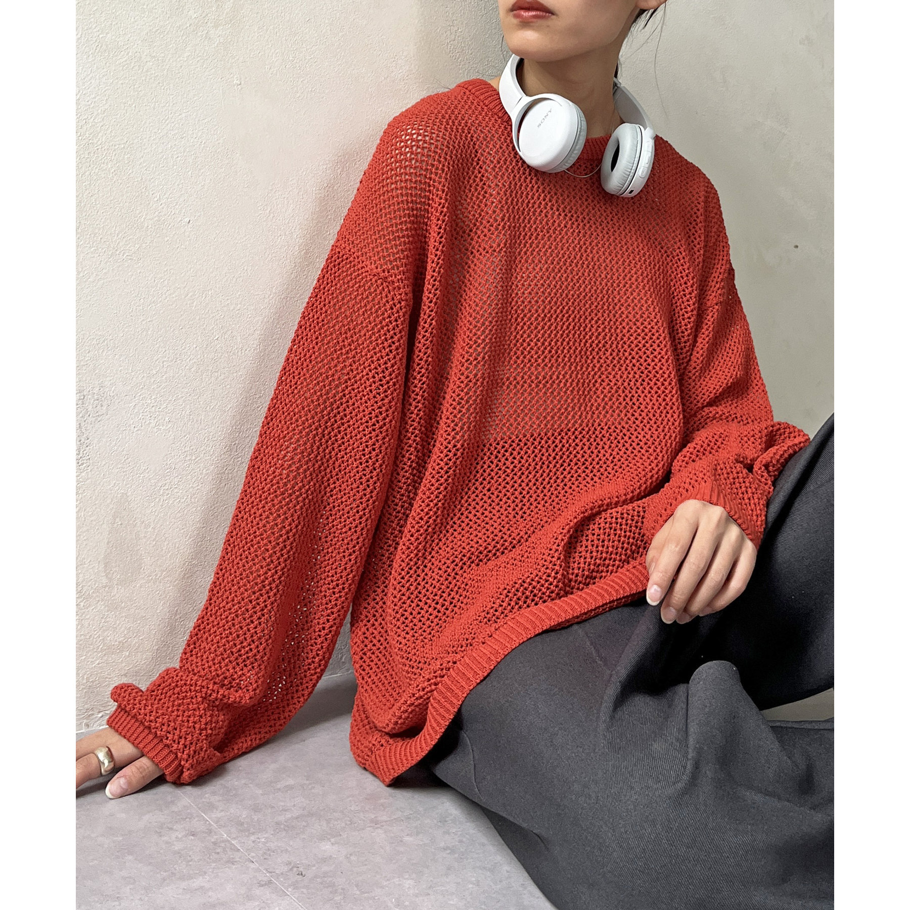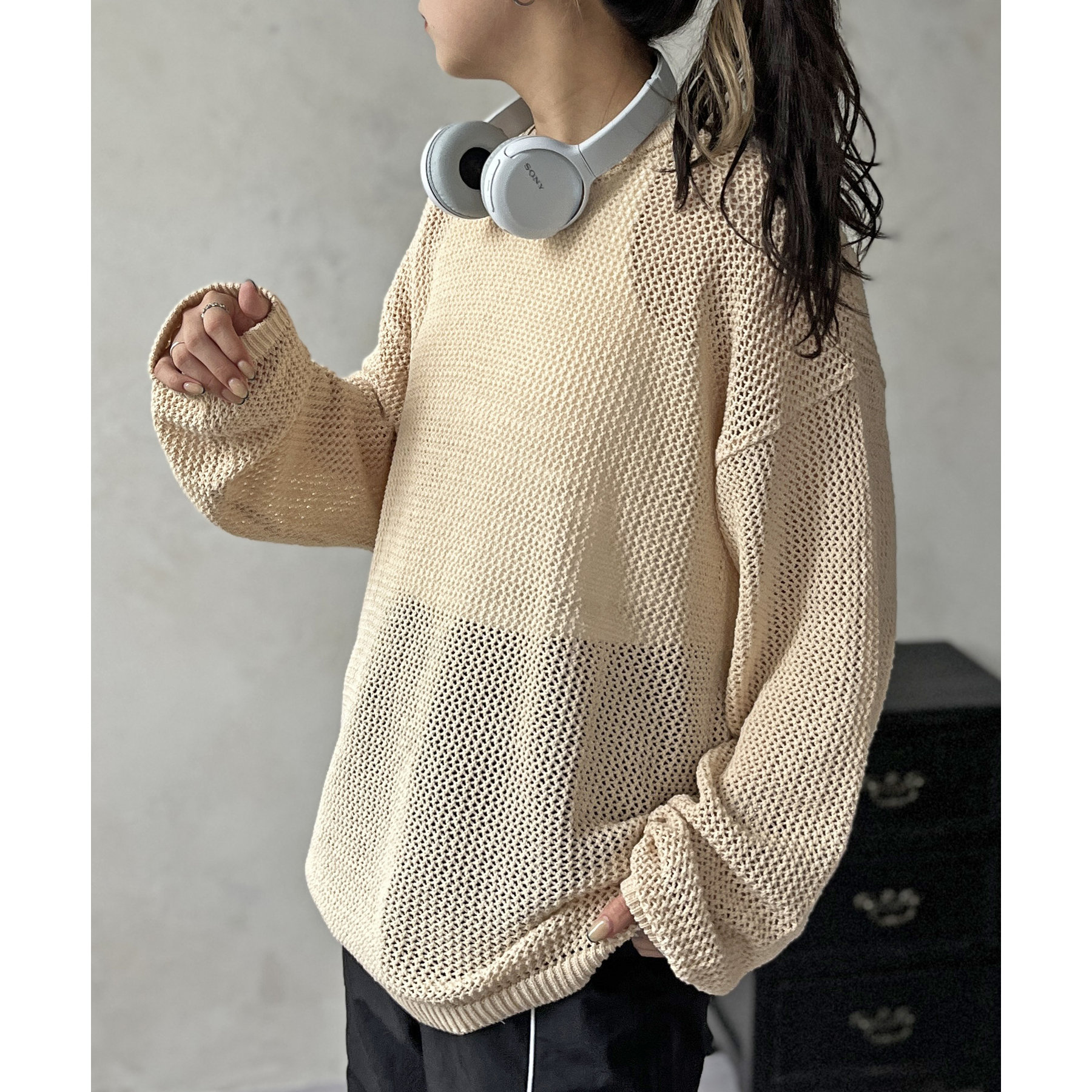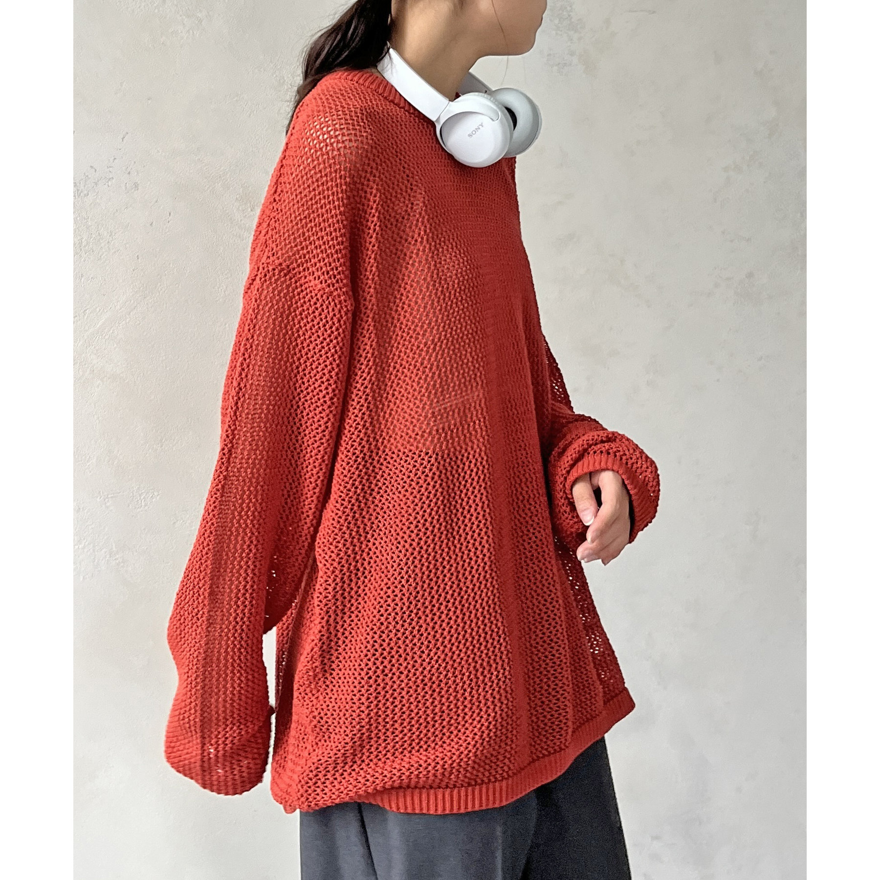 ・メッシュ編みで重たい印象にならず、インナー次第でロングシーズン着用可能