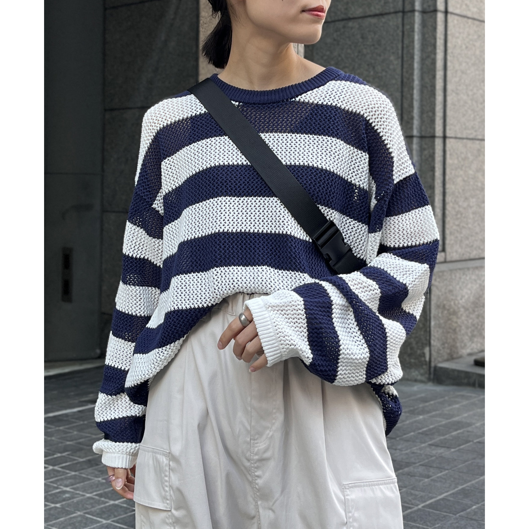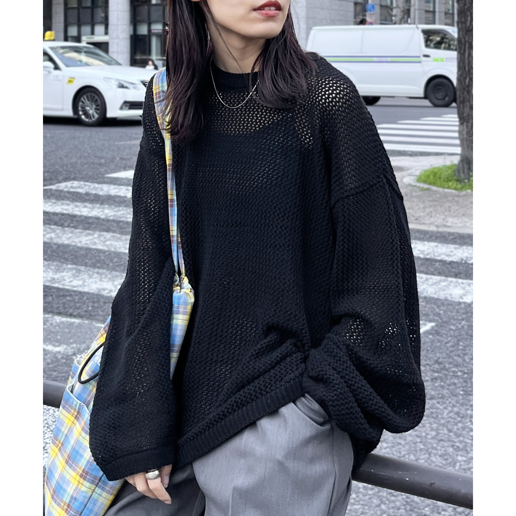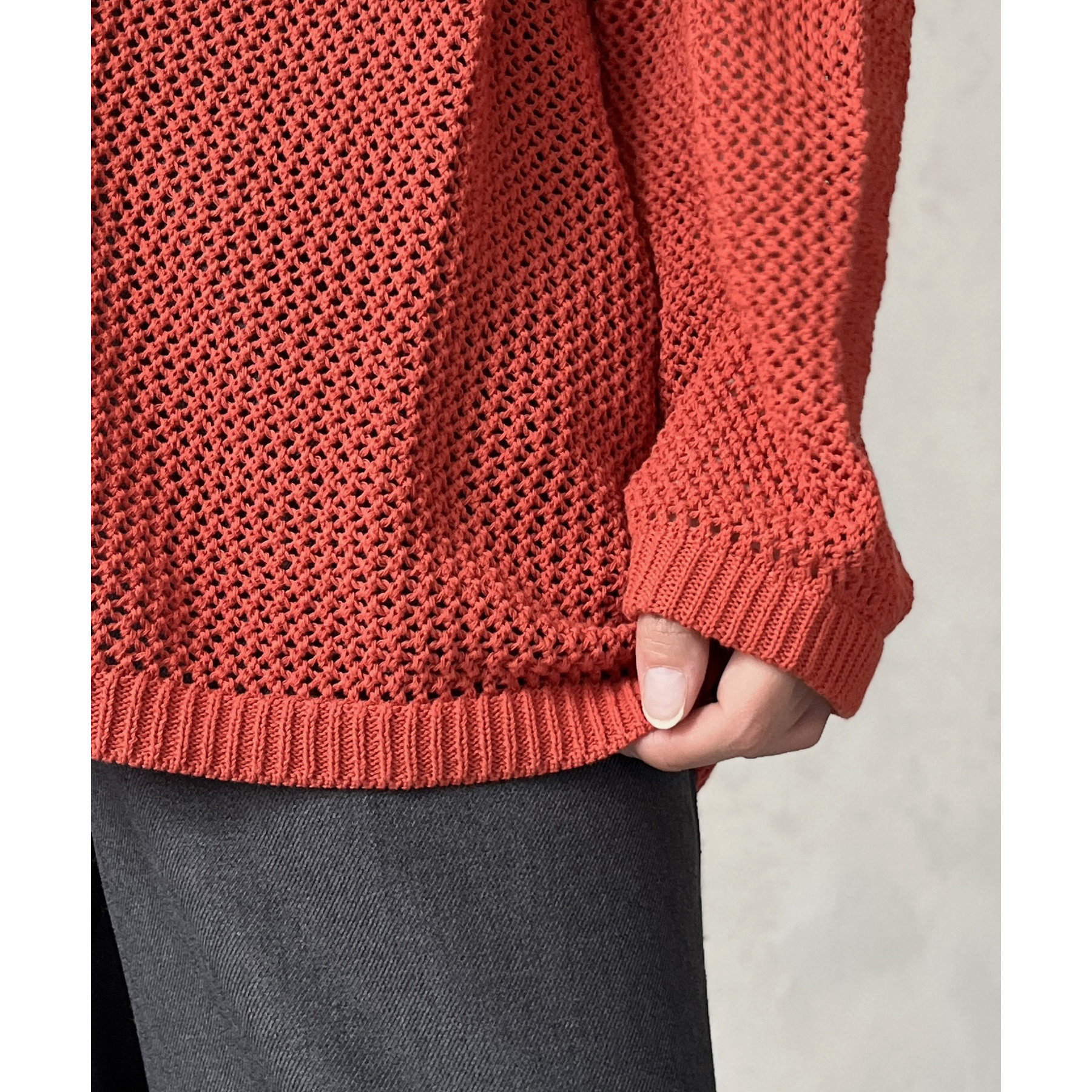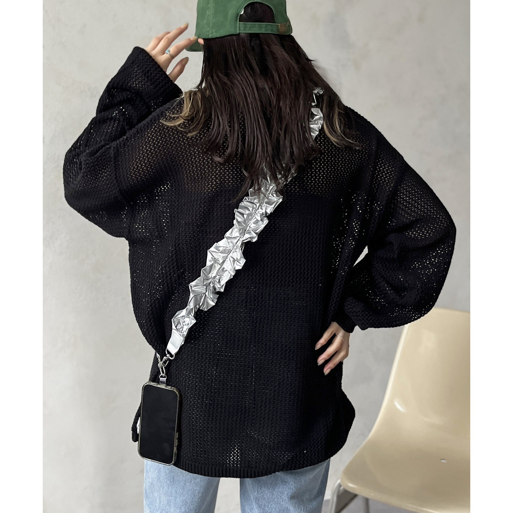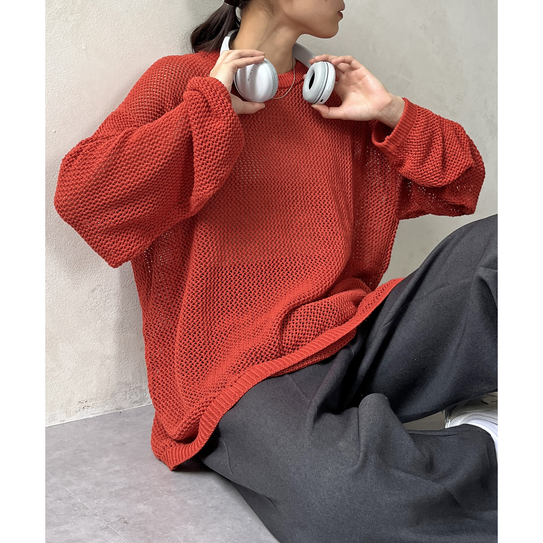 ・メッシュ編みで重たい印象にならず、インナー次第でロングシーズン着用可能