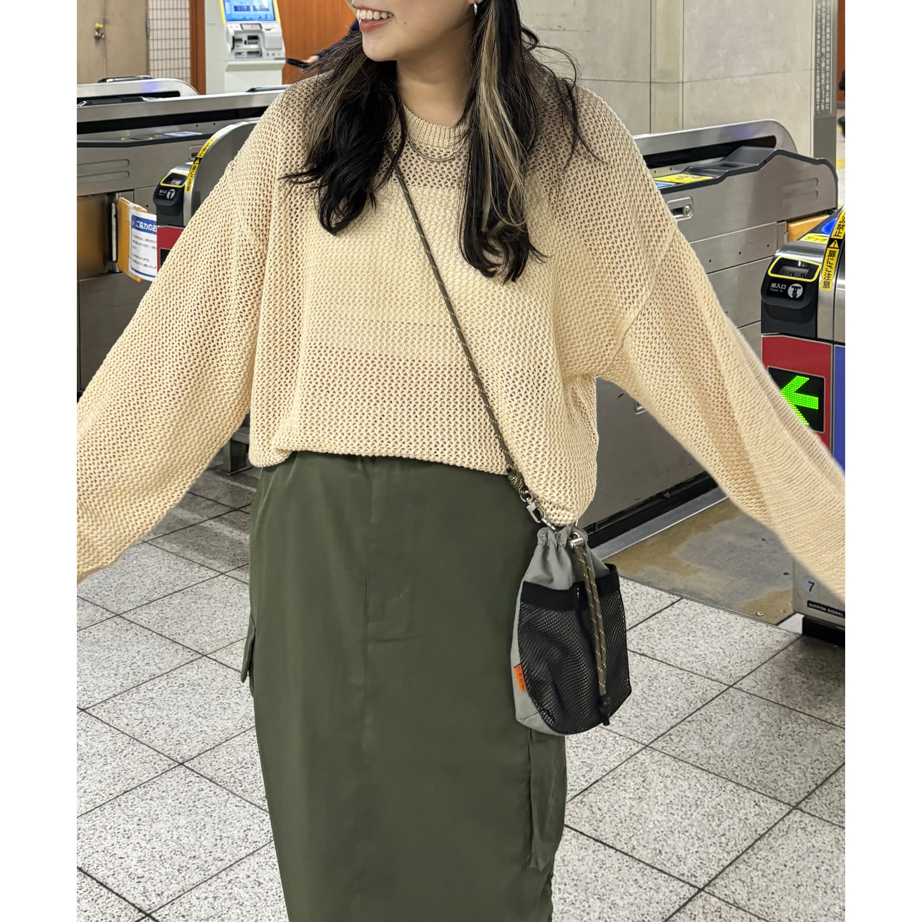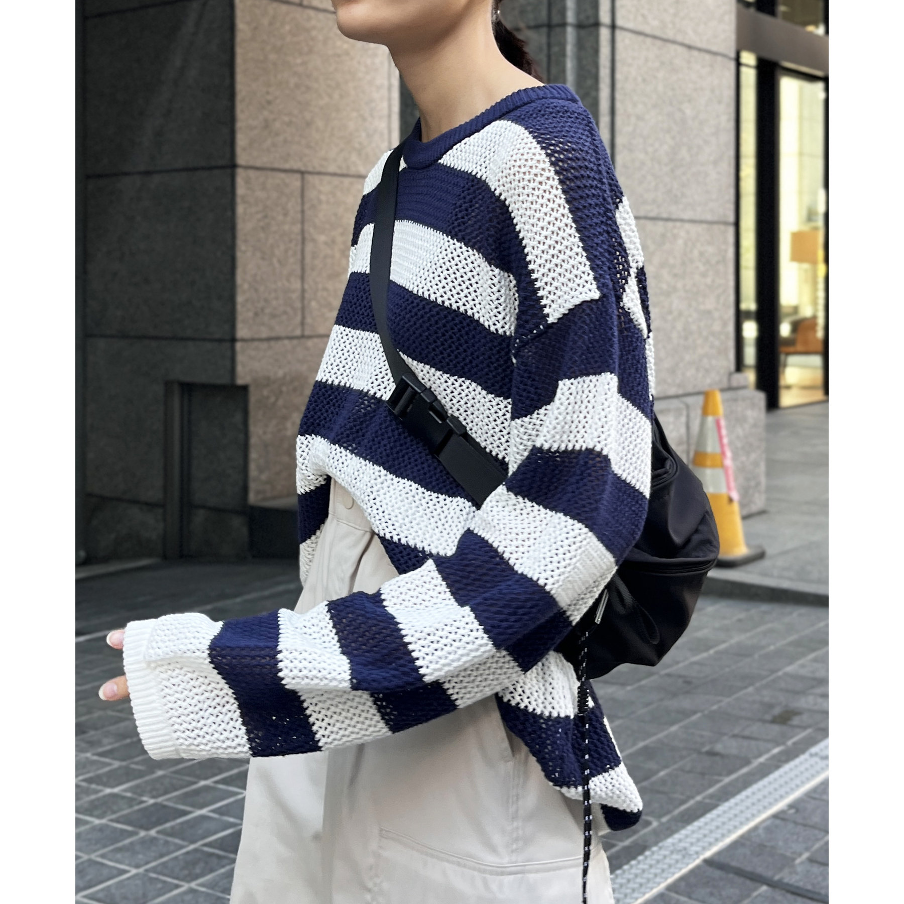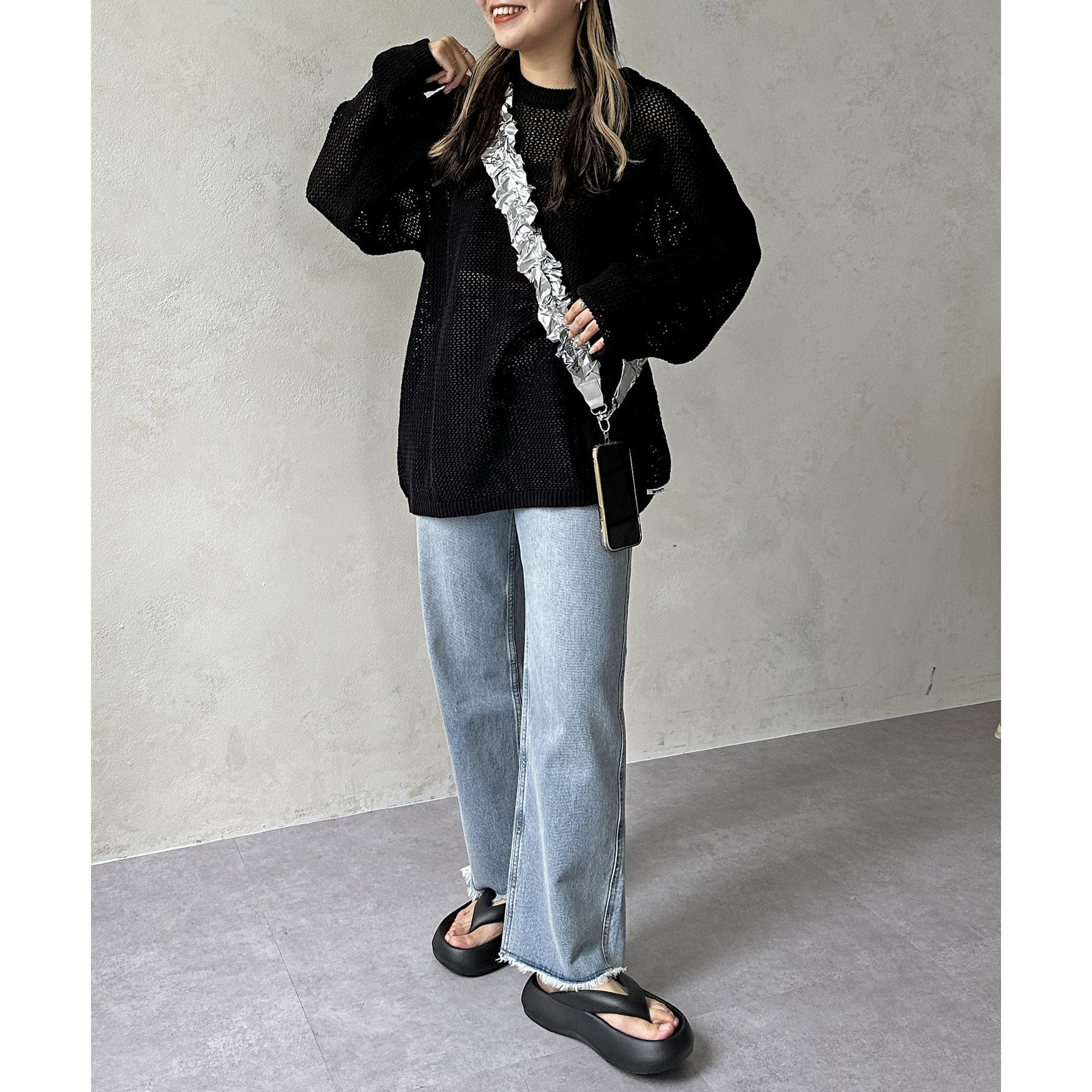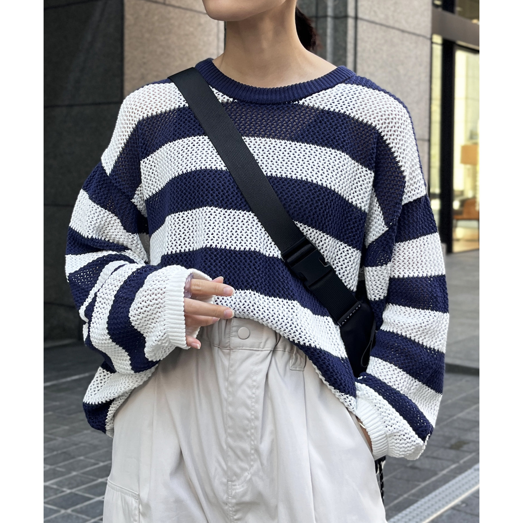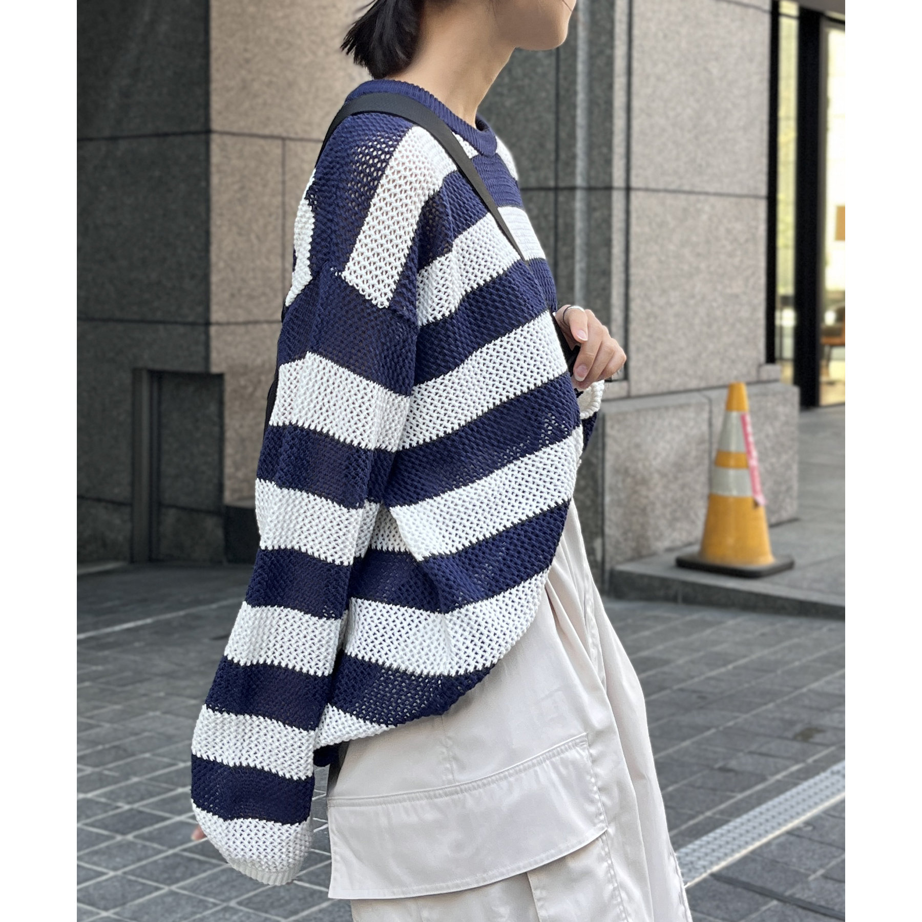 ・メッシュ編みで重たい印象にならず、インナー次第でロングシーズン着用可能
